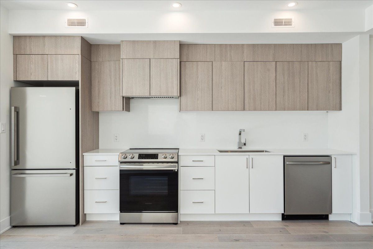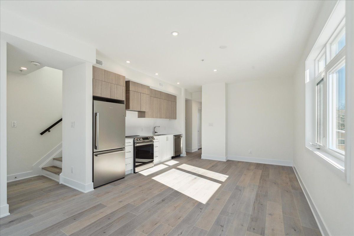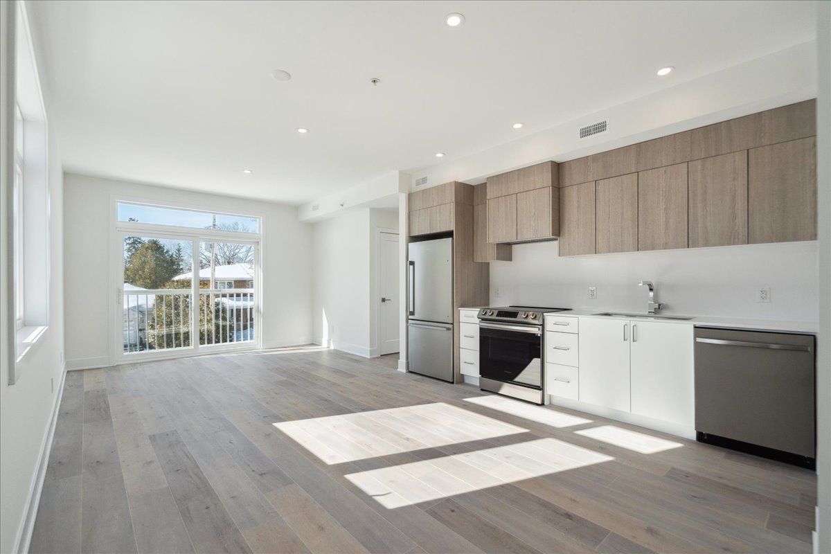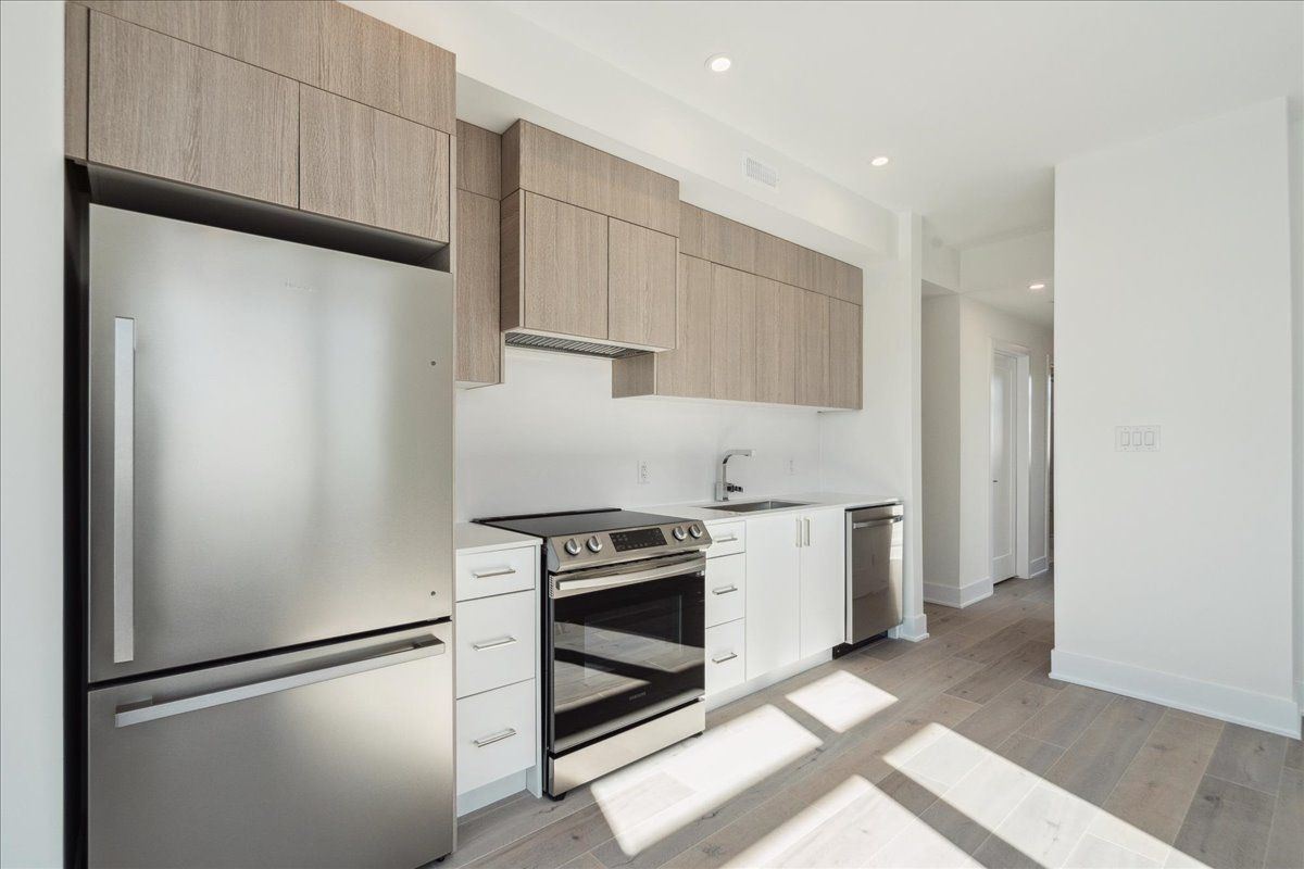 • Modern open-concept design with custom kitchens and stainless steel appliances.