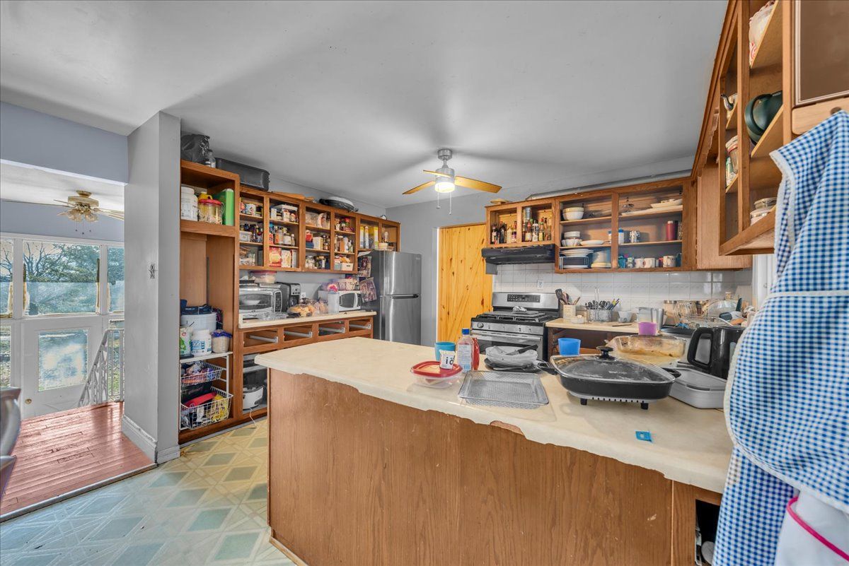 7. 49 acre estate, 1643 sqft raised bungalow features 3 bedrooms on main level, plus 2 bedroom in-law suite with shared kitchen on lower level, 2100 sqft shop could be used for many uses, was licensed as a butcher shop. A foundation has been poured for another 50x80ft shop. Potential second entrance off kossuth rd sfw&d included.