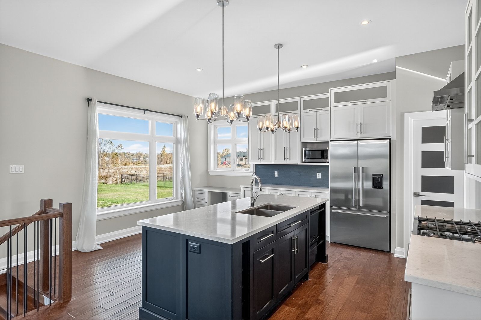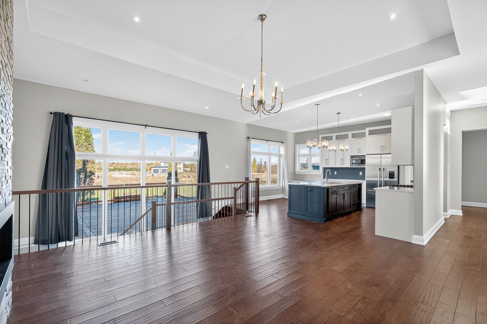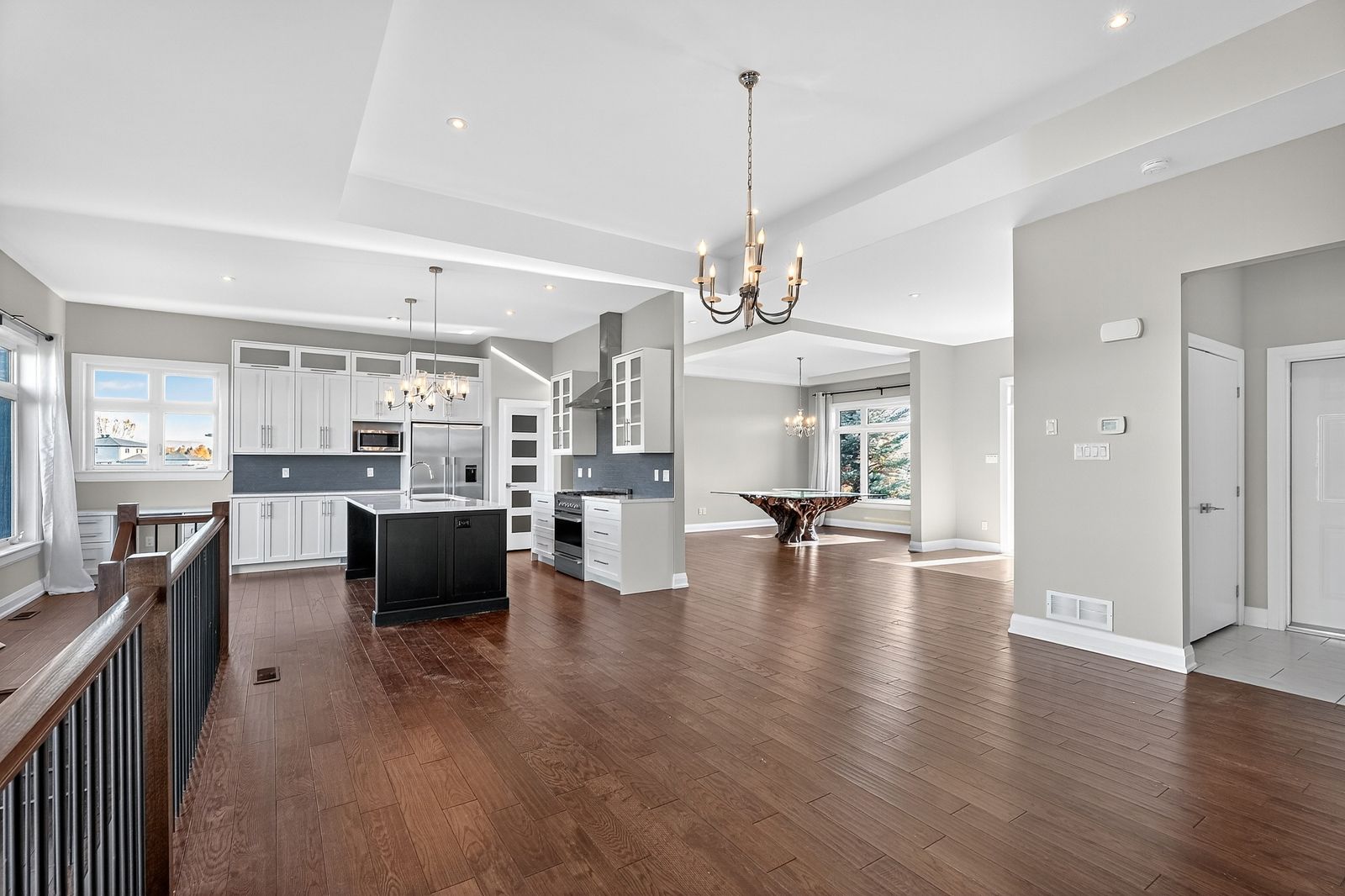 • Open-concept layout with high ceilings and elegant finishes.