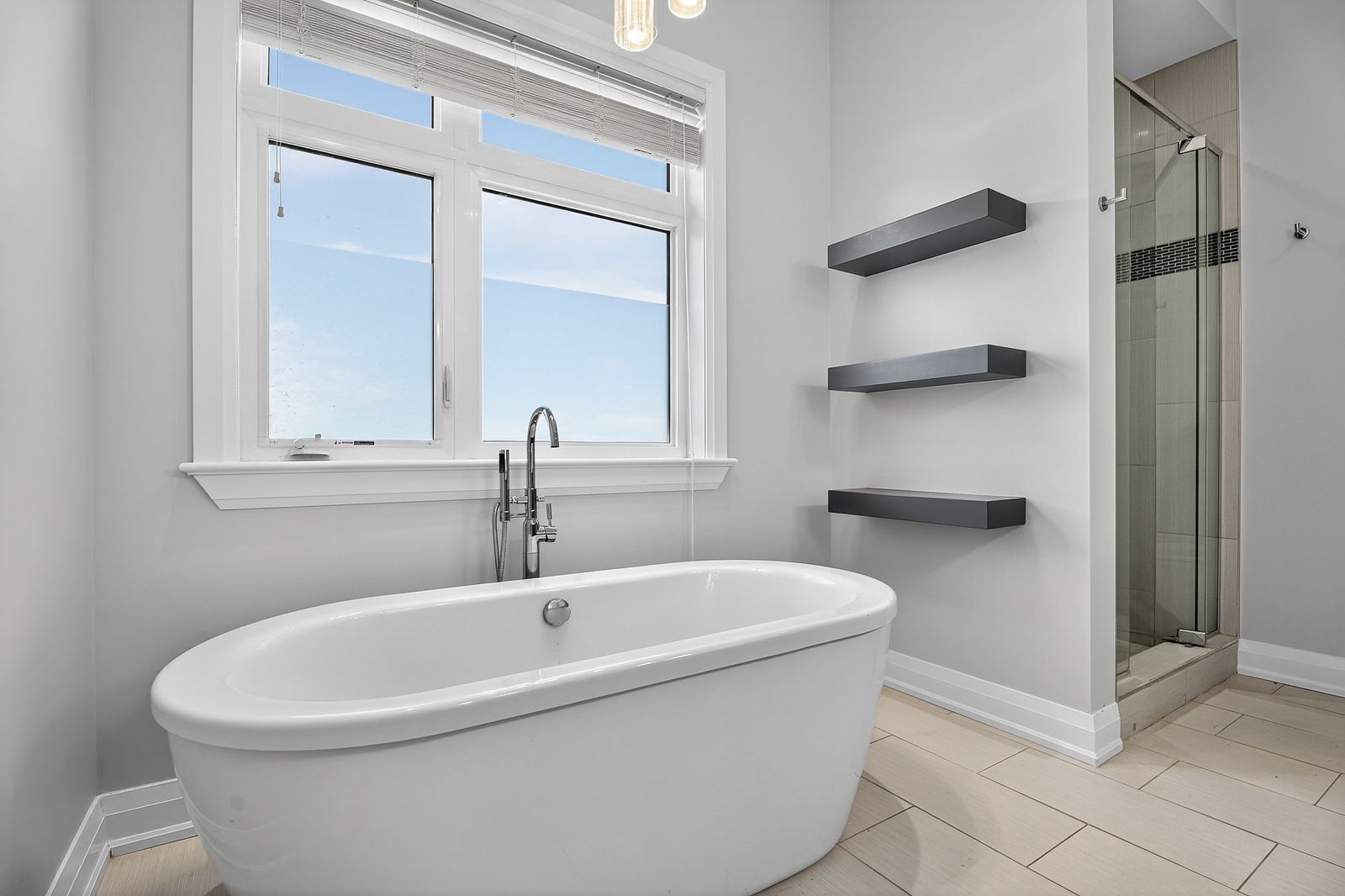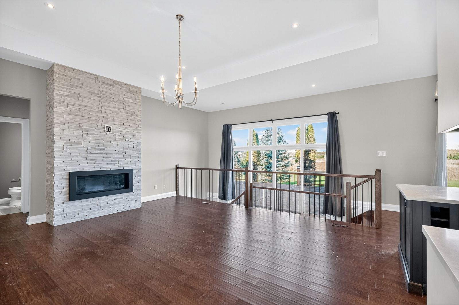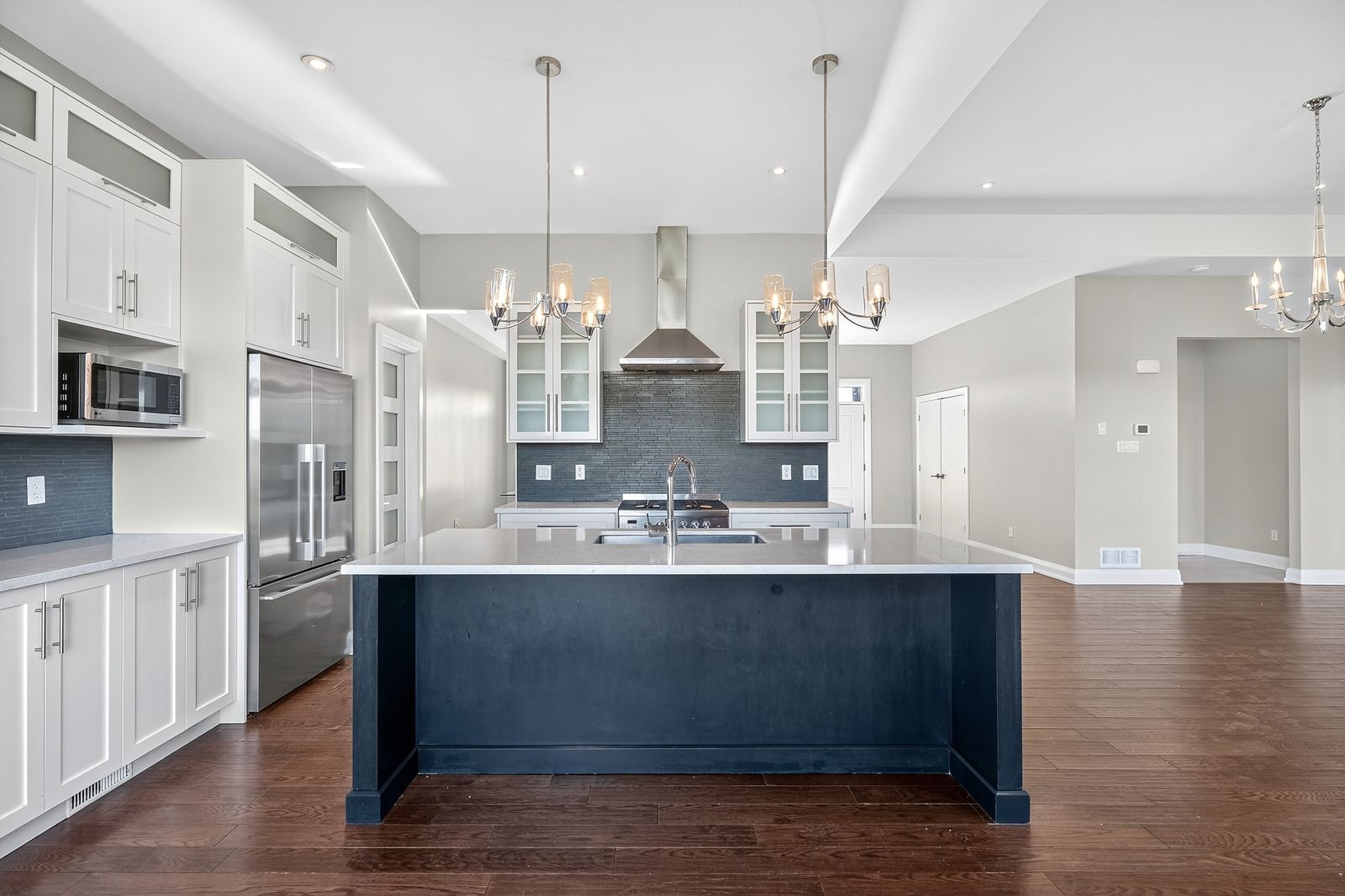 • Open-concept layout with high ceilings and elegant finishes.