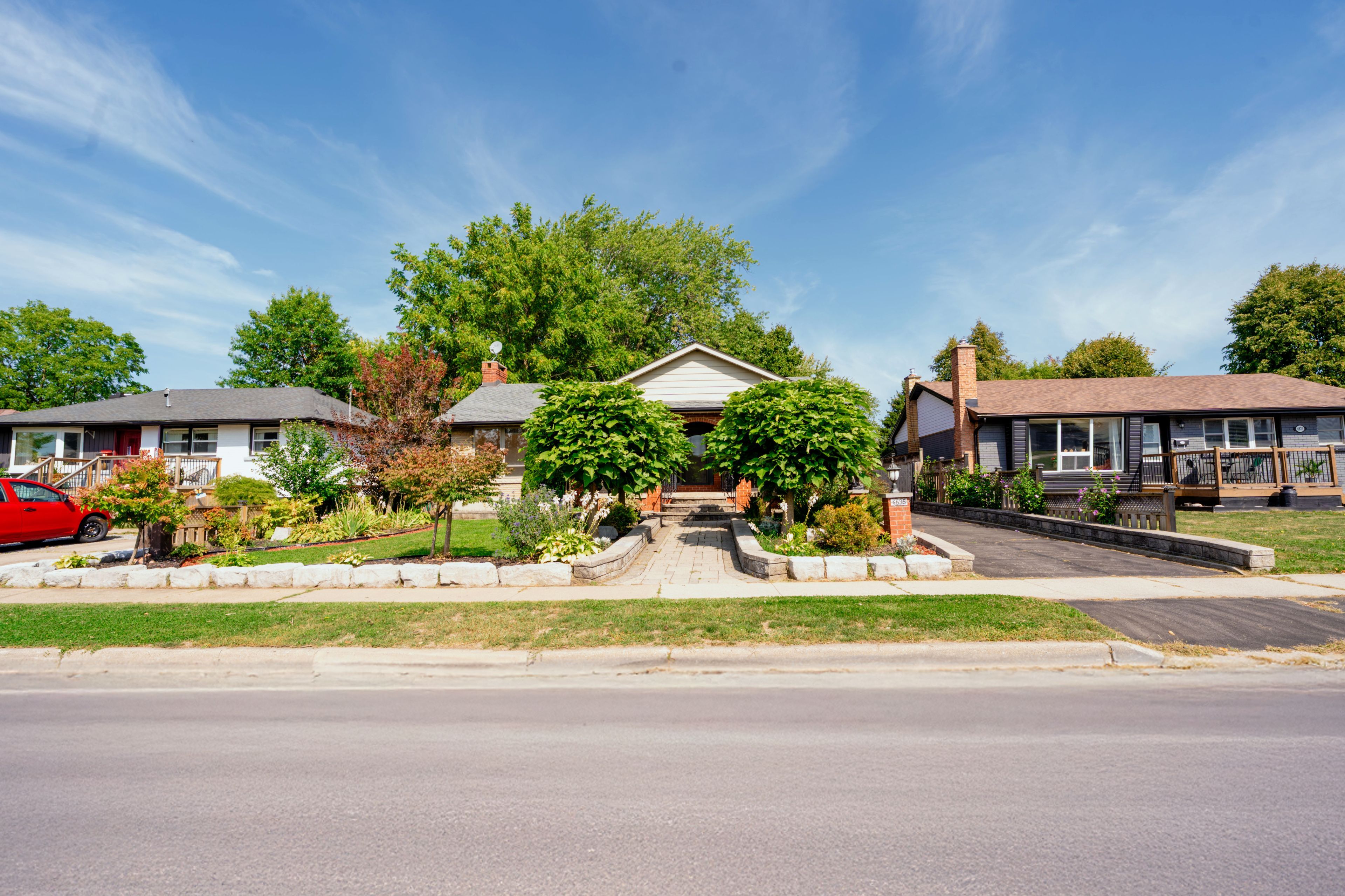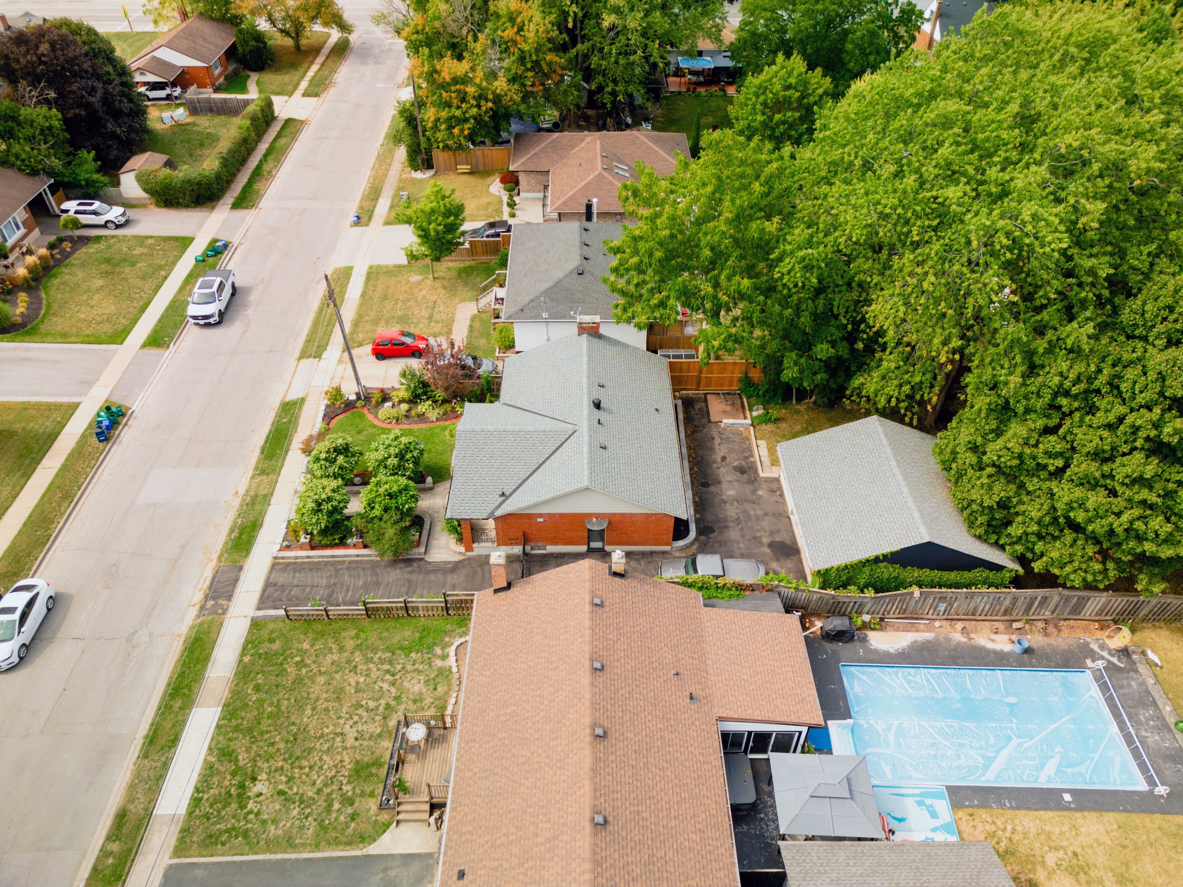 Charming all-brick bungalow in niagara falls desirable stamford neighbourhood! Set on a 56 x 163 ft lot with mature trees and a welcoming covered veranda, this home offers a wrap-around driveway for 8+ cars and a 2. 5-car detached garage with loft. Absolute showstopper front lawn and the main floor features 3 bedrooms, one 4-piece bath, a bright and airy kitchen with sliding doors, and a spacious living room with original hardwood floors. The finished basement, with a separate entrance, includes 1 bedroom, a full kitchen, a full bathroom, laundry, cold storage, mechanical room, and a cozy fireplaceideal for an in-law suite, guests, or rental potential. The backyard boasts a covered sitting area with a wood-burning fireplace, perfect for relaxing or entertaining, massive pool sized backyard waiting for your personal touches and the home is close to parks, schools, shopping, and fireman's park. Renovate-to-suit option available- offering new flooring, kitchen and pot lights through out on the main.