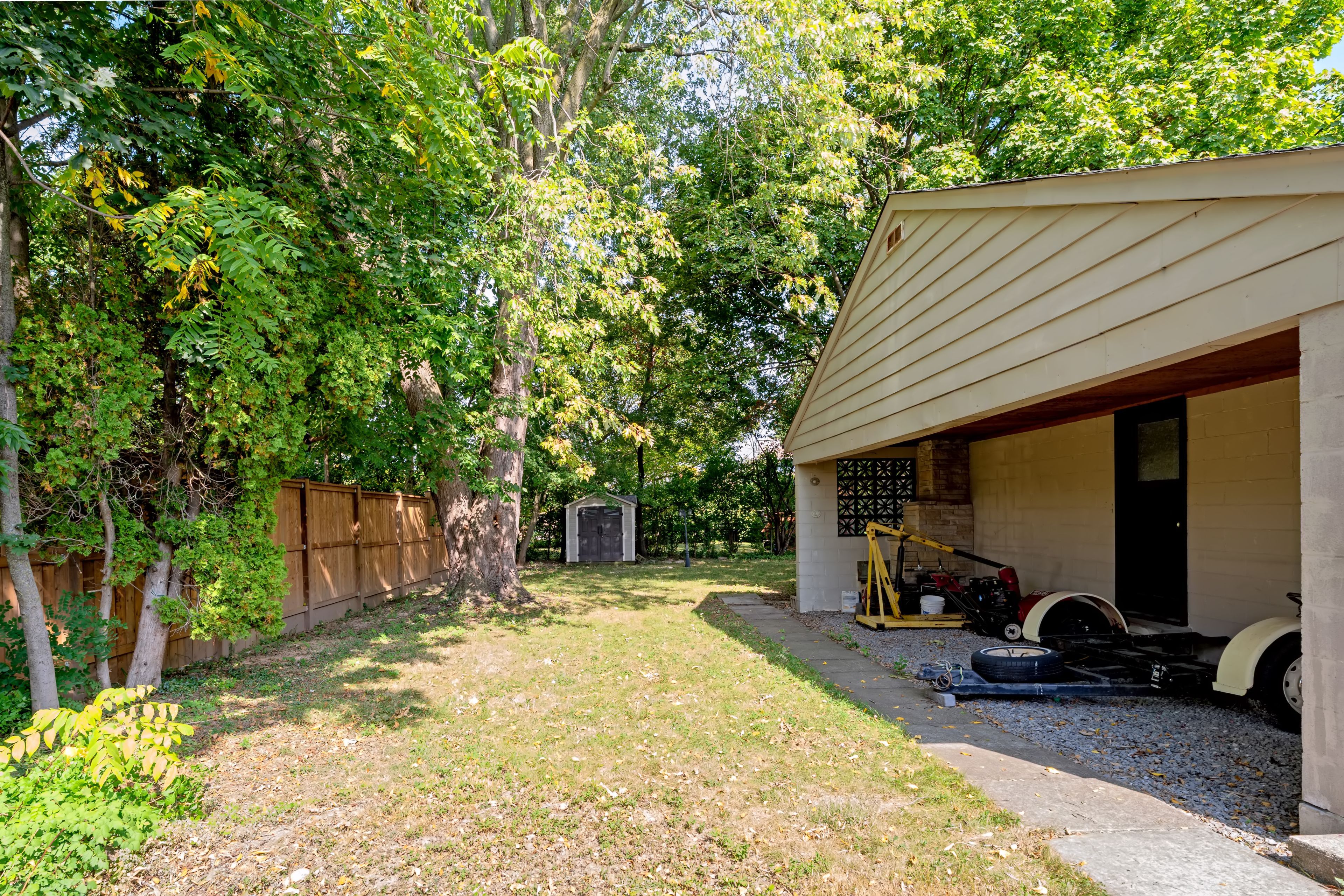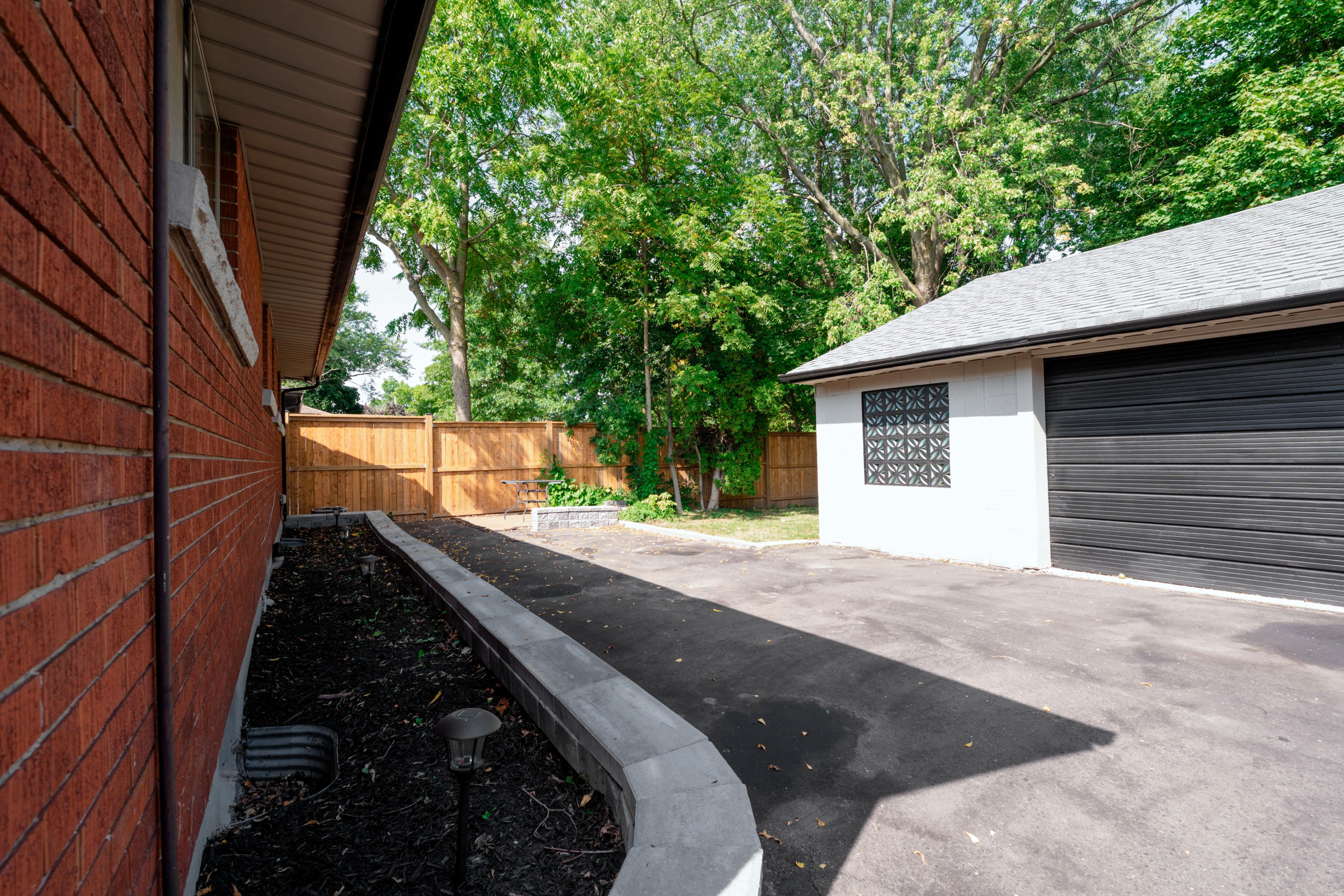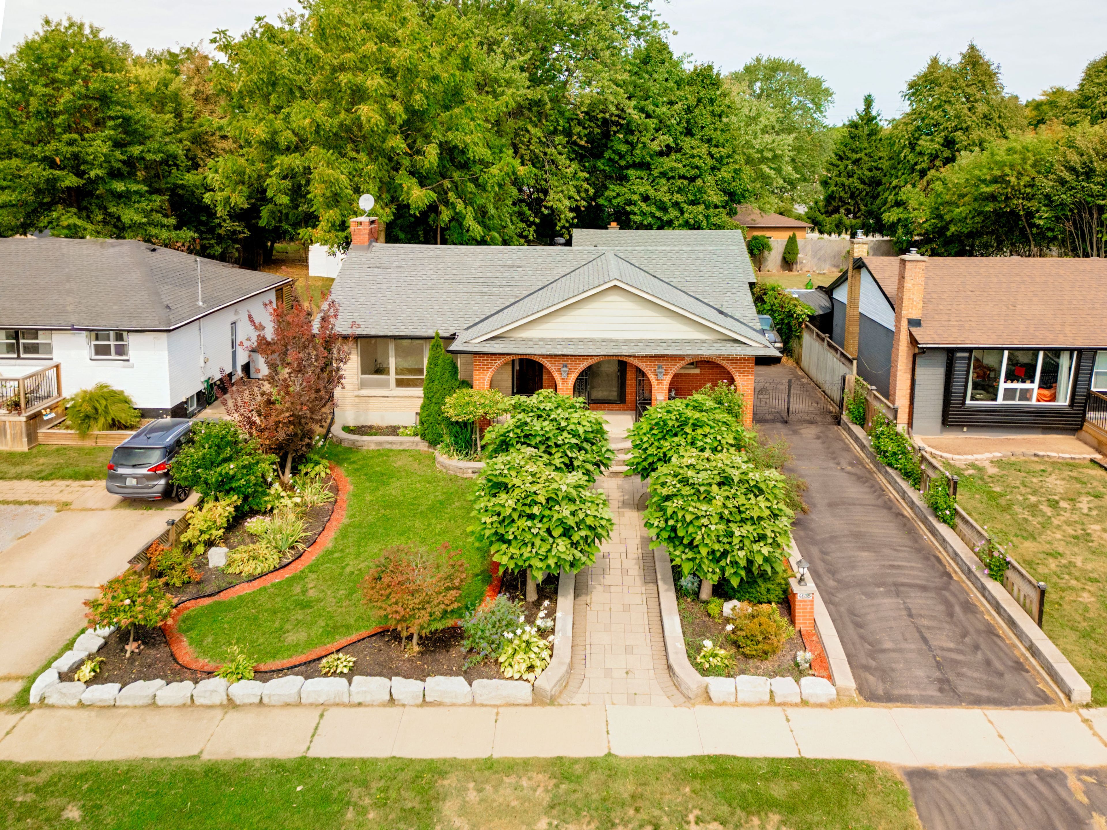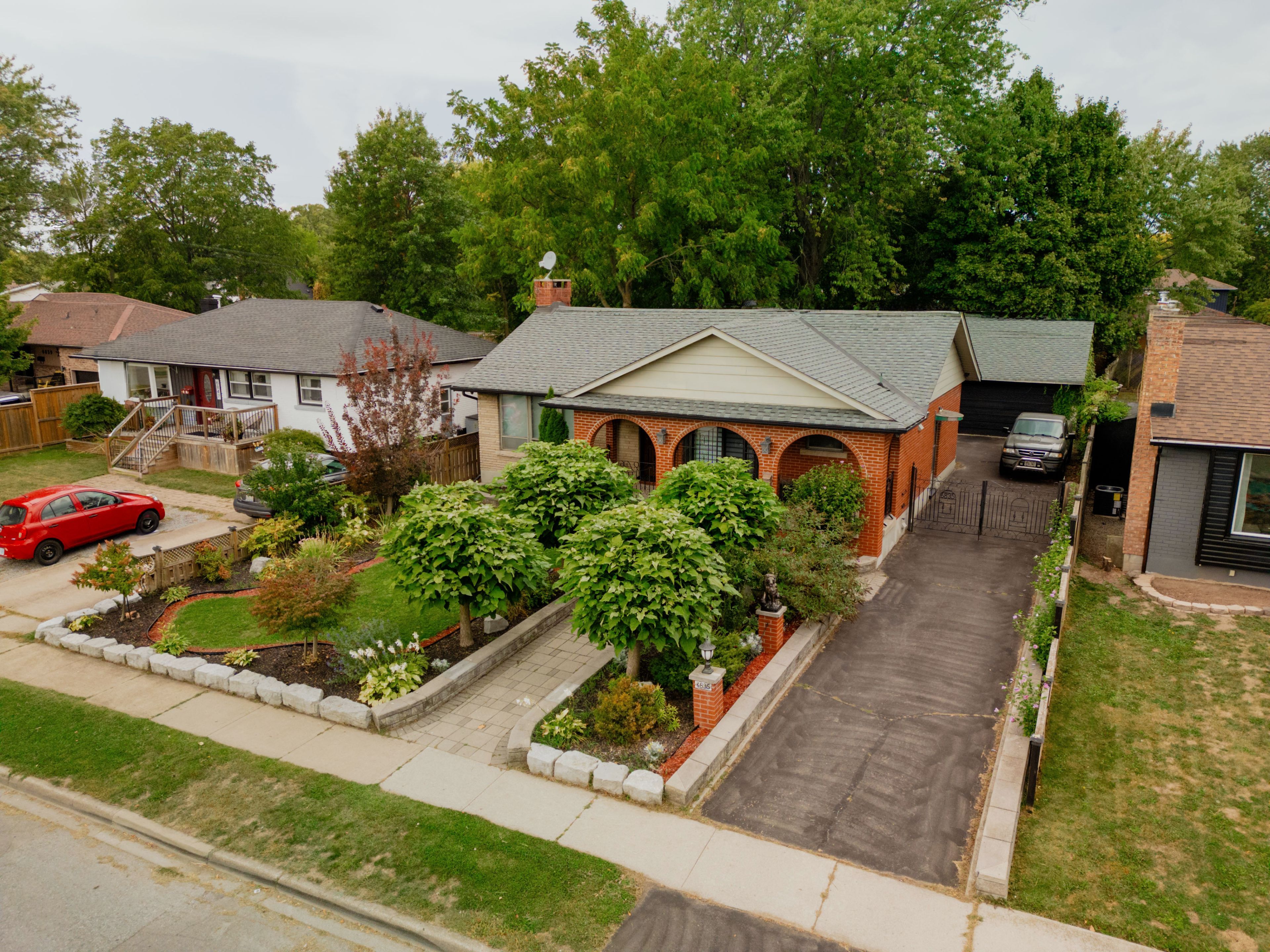 • All-brick bungalow on a spacious 56 x 163 ft lot with mature trees.