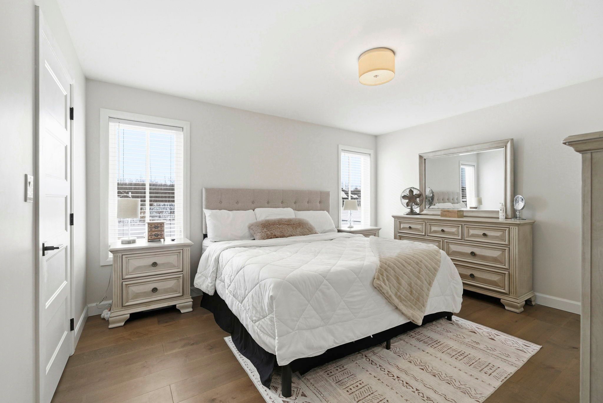 This custom-built emberlee home stands out with its exceptional, striking stone exterior, vaulted interior spaces, and thoughtful design throughout. Located in a highly sought-after neighbourhood in summerstown, this beautifully crafted home offers 3+2 bedrooms and 3 full bathrooms, delivering exceptional flexibility for growing families, guests, or work-from-home needs. The bright, open-concept main living area is enhanced by vaulted ceilings and engineered hardwood flooring, creating a warm and inviting atmosphere. The beautifully appointed kitchen features a large island with quartz countertops, ideal for both entertaining and daily living, and flows seamlessly into the dining area and open living room. A striking feature wall with a fireplace serves as a stunning focal point, adding both character and comfort to the space, while patio doors from the dining area lead to the back deck, complete with a gas hookup for convenient outdoor cooking. The spacious primary suite offers a private retreat, complete with a walk-in closet and a luxurious 4-piece ensuite featuring a relaxing soaker tub. Two additional bedrooms and a full bathroom complete the main level. The partially finished lower level offers excellent potential to customize to your needs, already featuring two additional bedrooms, a full bathroom, and a utility area with modern mechanical systems, including hrv and efficient heating. Additional highlights include an attached two-car garage, quality stone exterior, and the peace of mind that comes with owning a nearly new home. This is an exceptional opportunity to enjoy modern living in a desirable and growing community.
