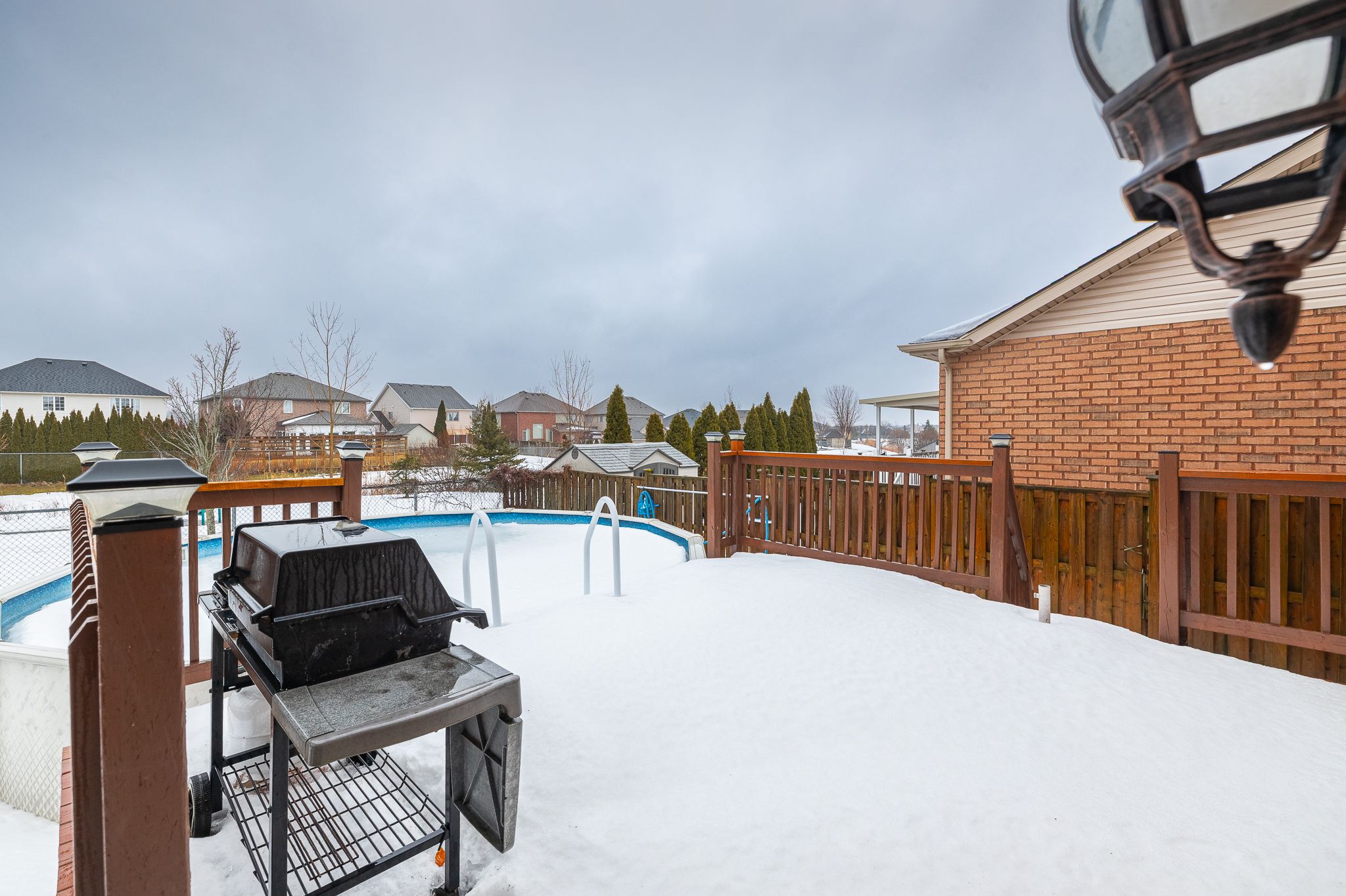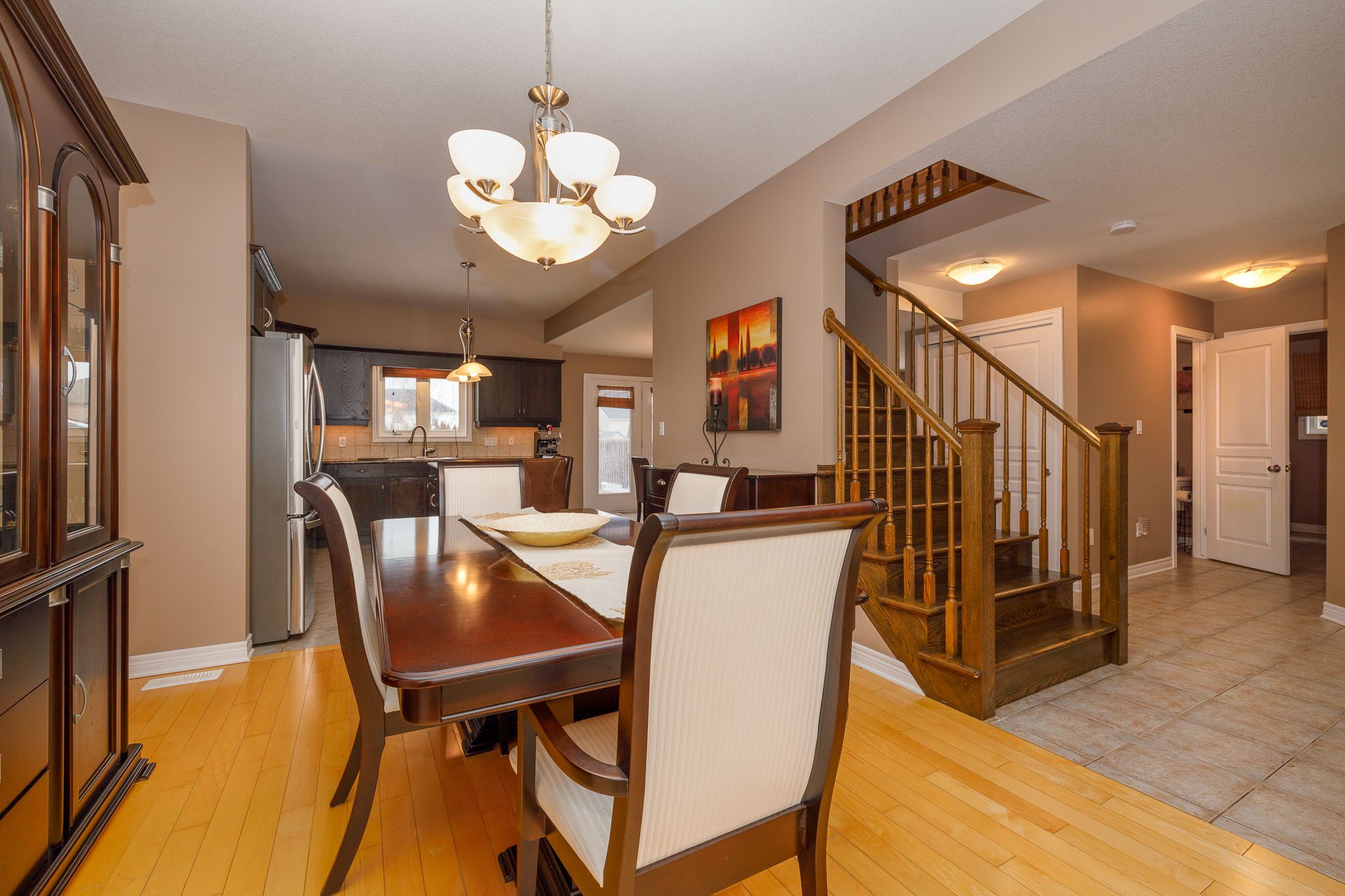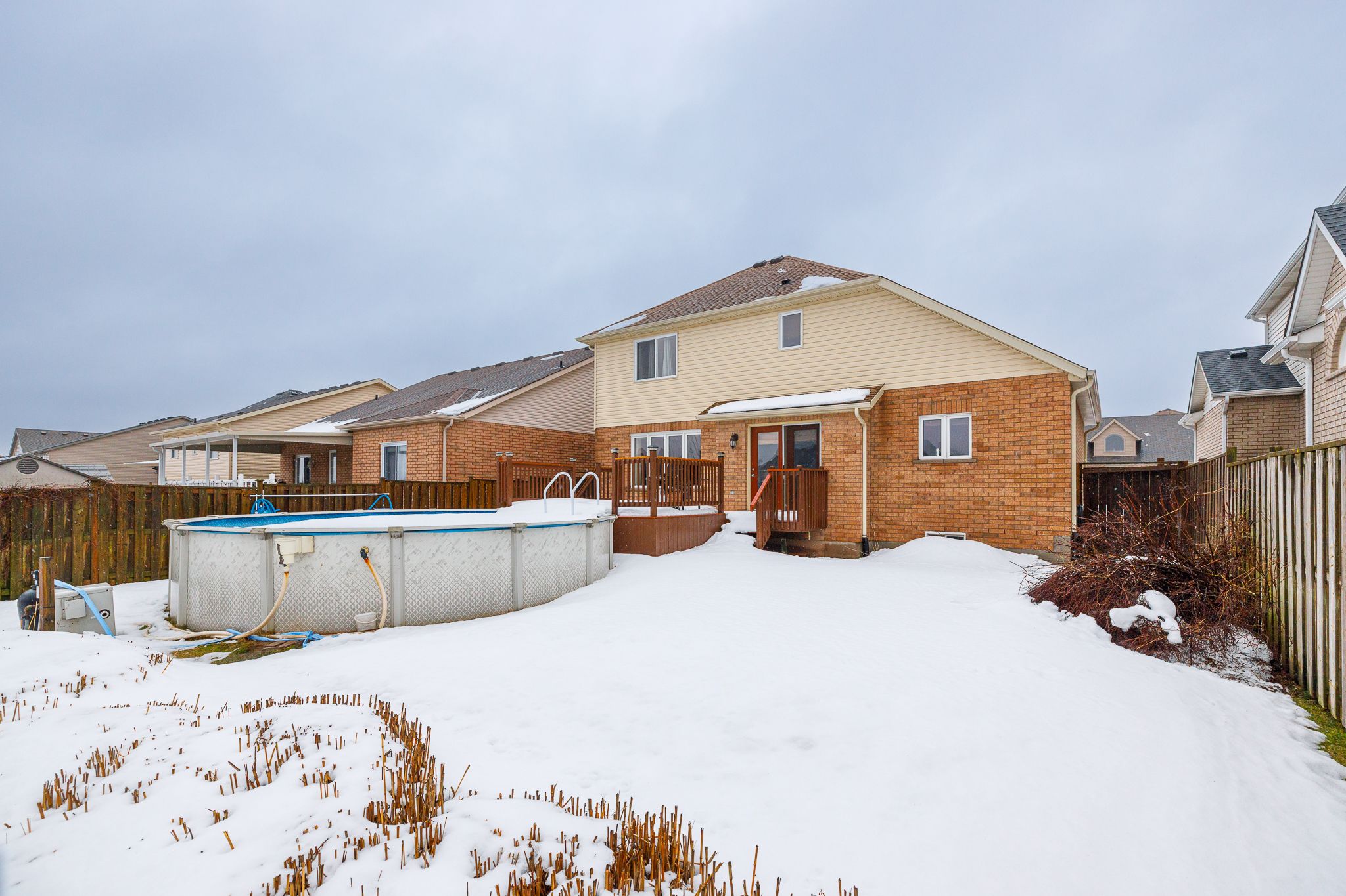 This beautiful well maintained home is situated in a desirable sought after deerfield estates. The open living main floor features a spacious dining room, large kitchen with plenty of storage with a large island, with french doors leading to deck with a 24' above ground pool and private fully fenced back yard with no rear neighbours. The family room offers a large space with large windows and nice view of the yard. The stairway leads to the upper floor which offers three generous sized rooms, an ensuite and another full bath. Quality hardwood floors throughout and no carpets anywhere. Centrally located near all the amenities, grocery store, costco, fitness centre, schools and offers quick highway access.