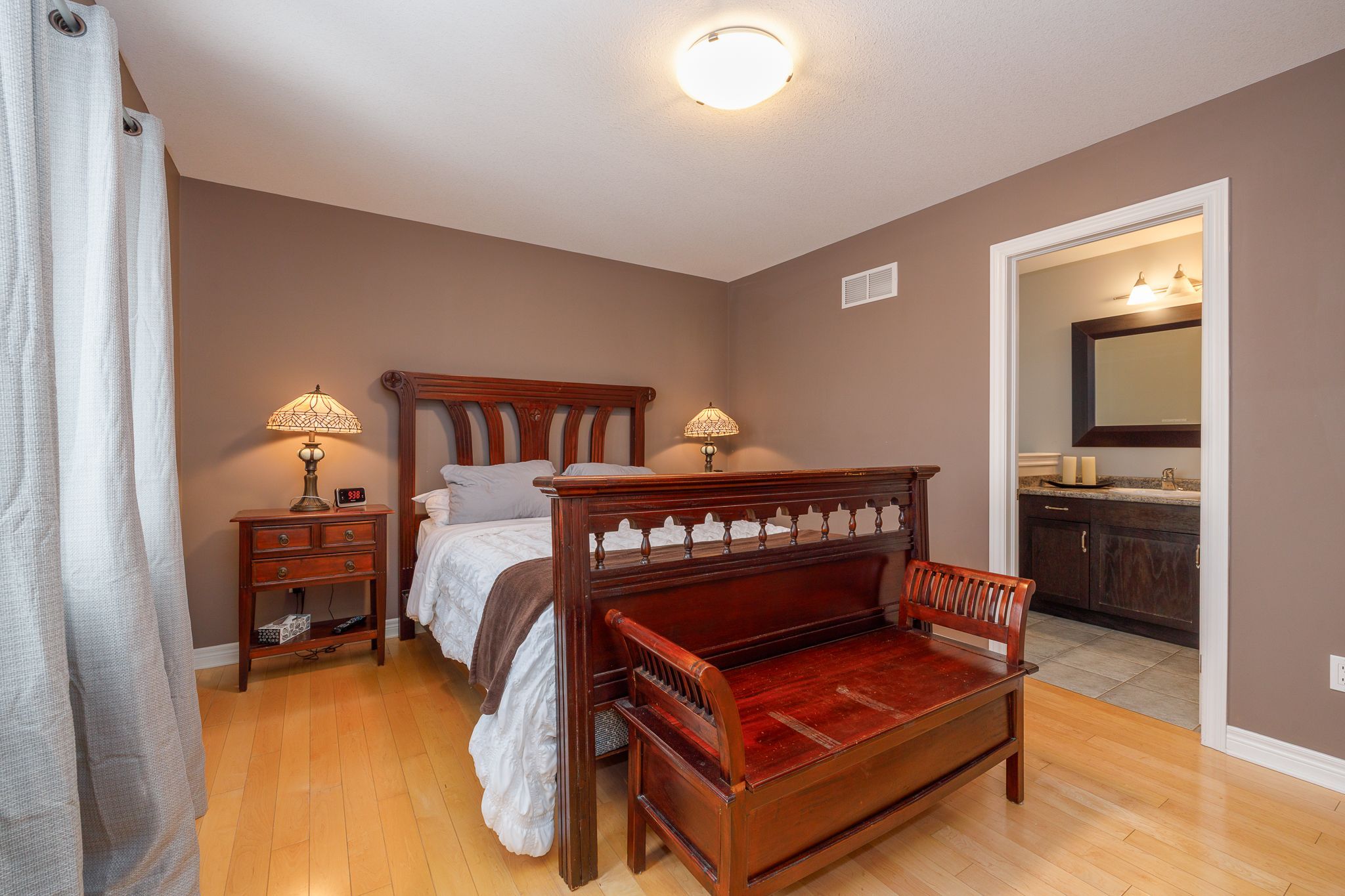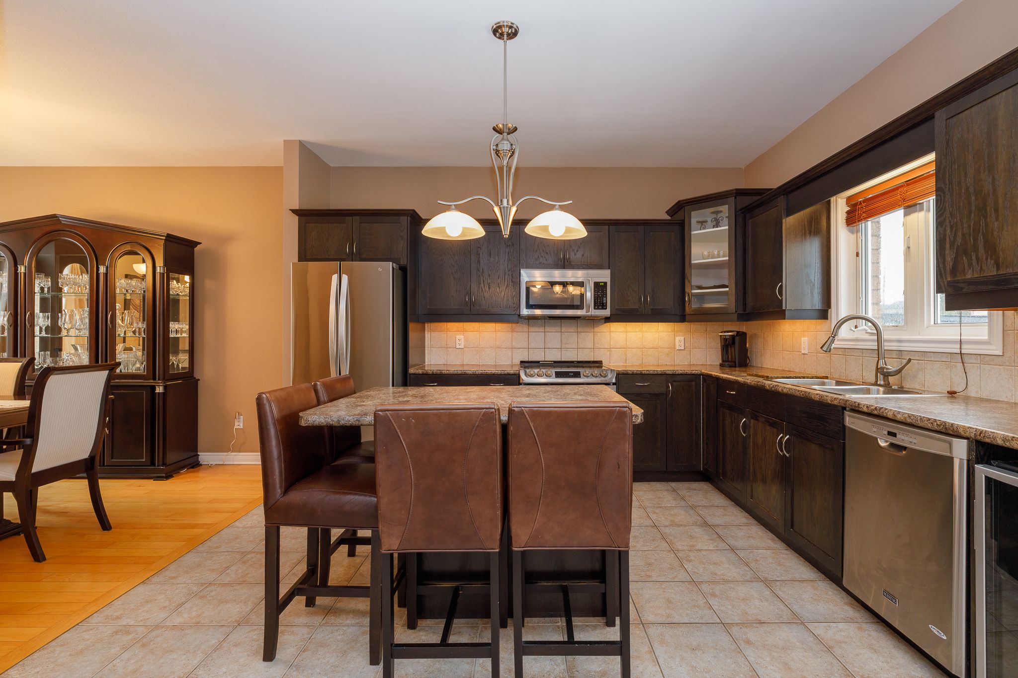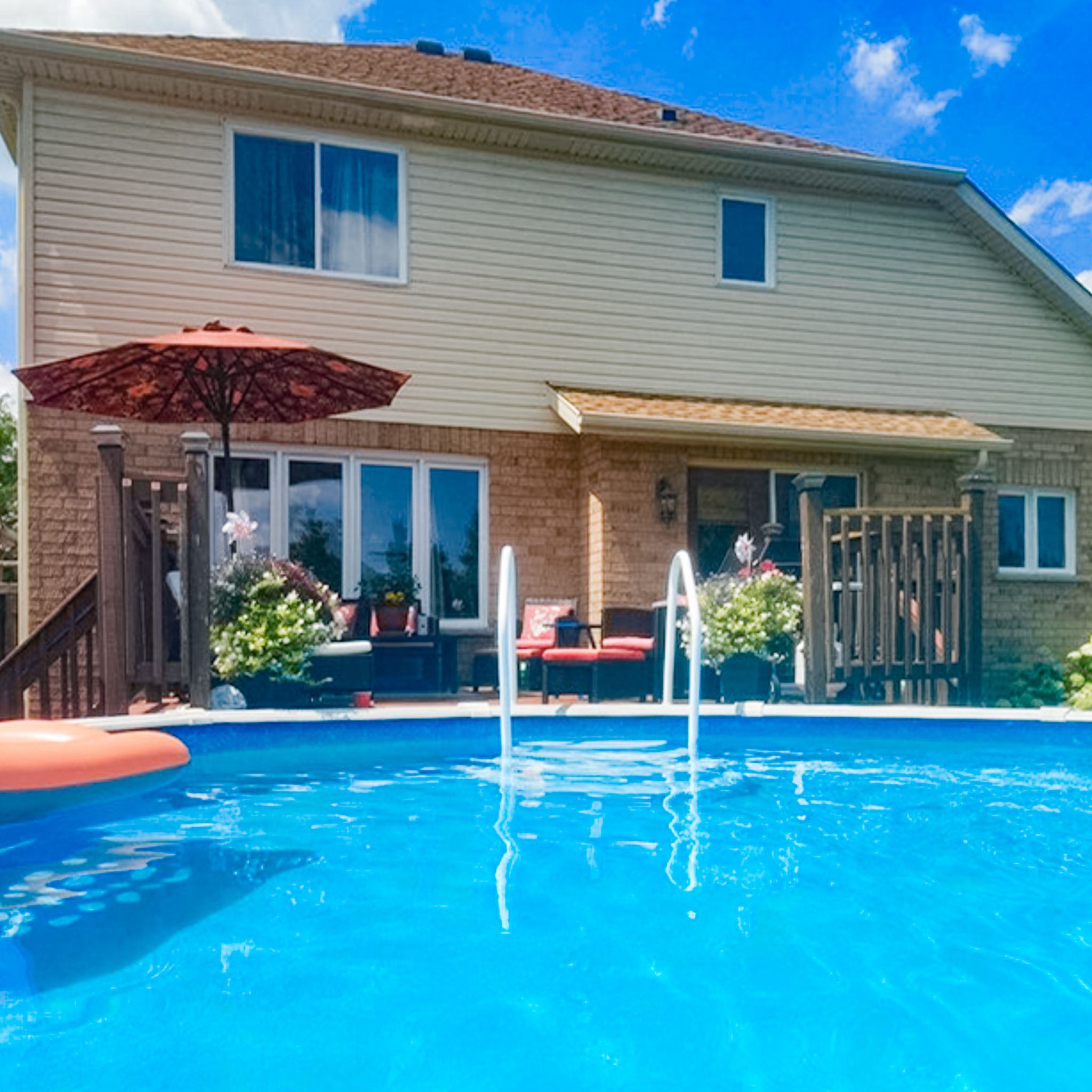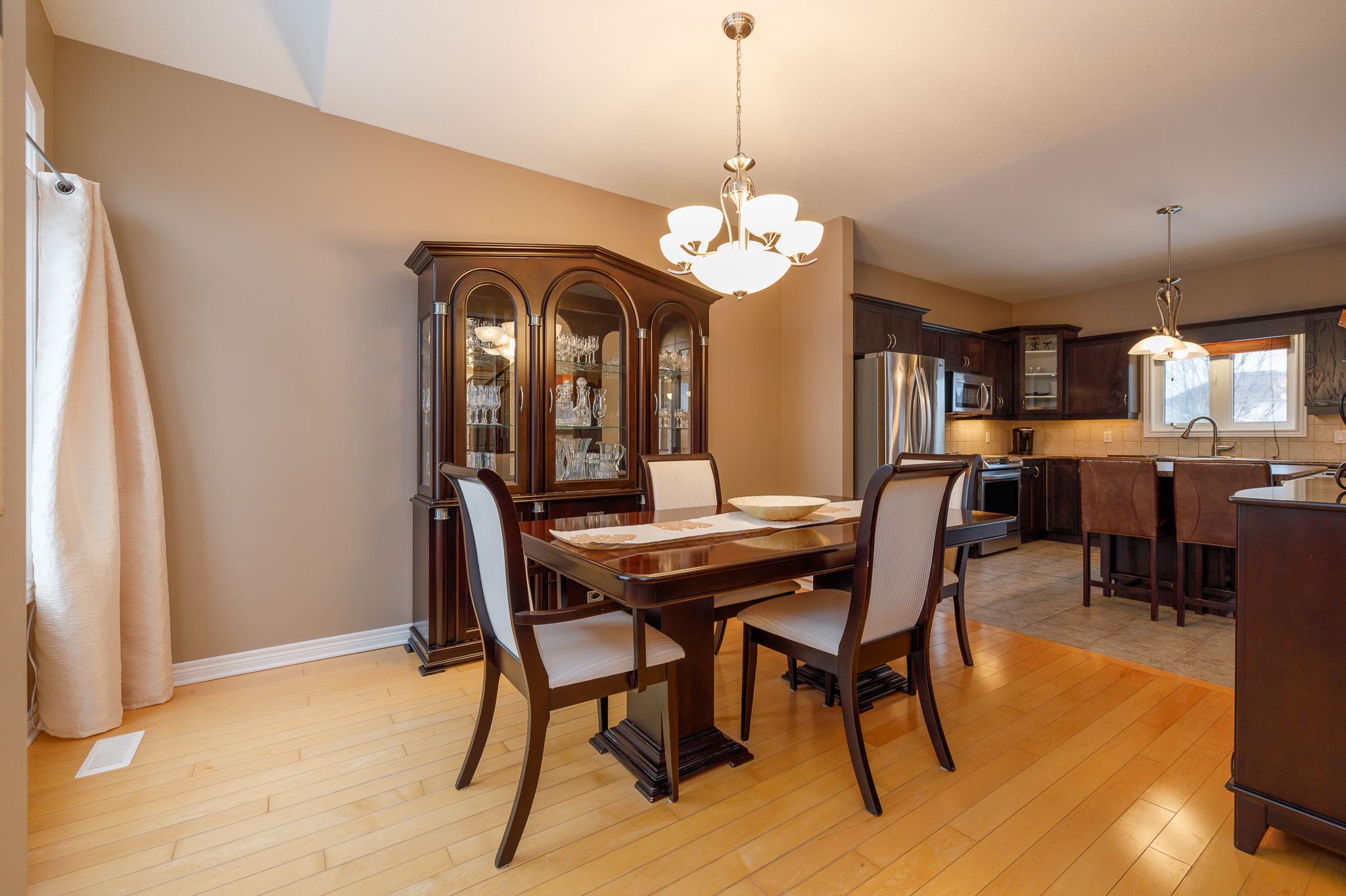 This beautiful well maintained home is situated in a desirable sought after deerfield estates. The open living main floor features a spacious dining room, large kitchen with plenty of storage with a large island, with french doors leading to deck with a 24' above ground pool and private fully fenced back yard with no rear neighbours. The family room offers a large space with large windows and nice view of the yard. The stairway leads to the upper floor which offers three generous sized rooms, an ensuite and another full bath. Quality hardwood floors throughout and no carpets anywhere. Centrally located near all the amenities, grocery store, costco, fitness centre, schools and offers quick highway access.