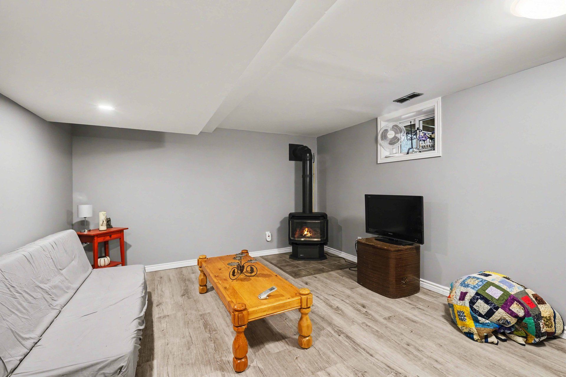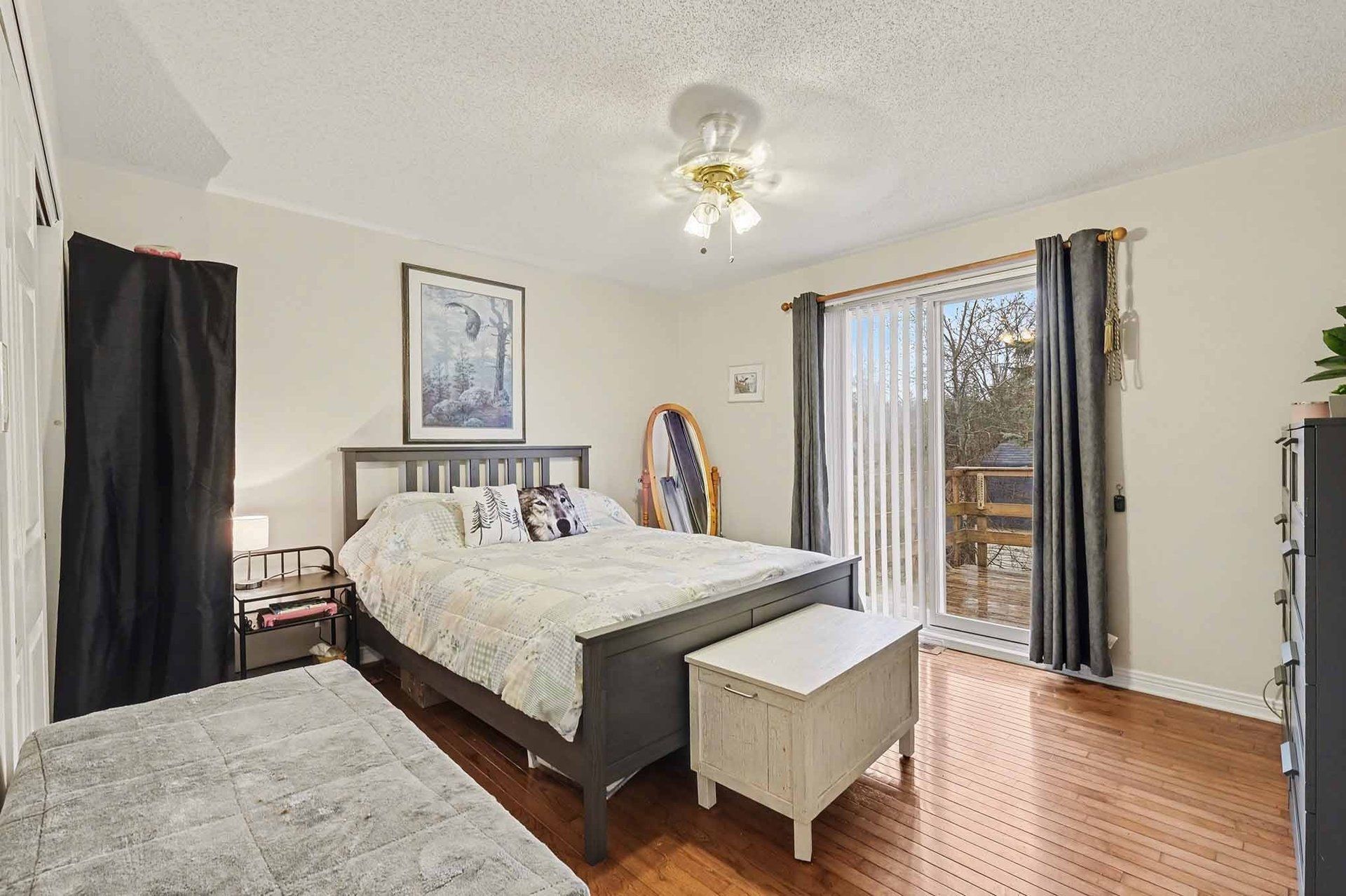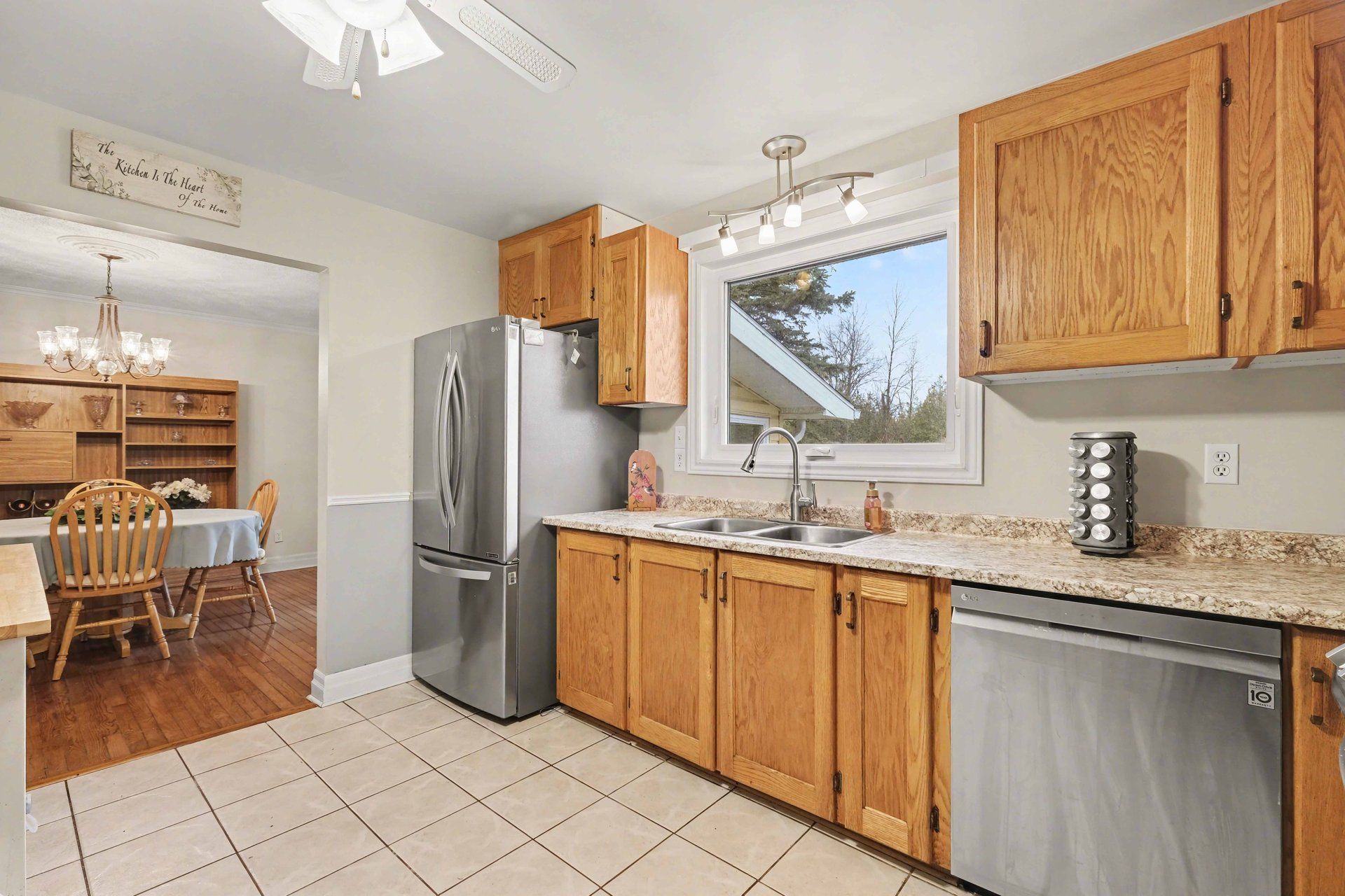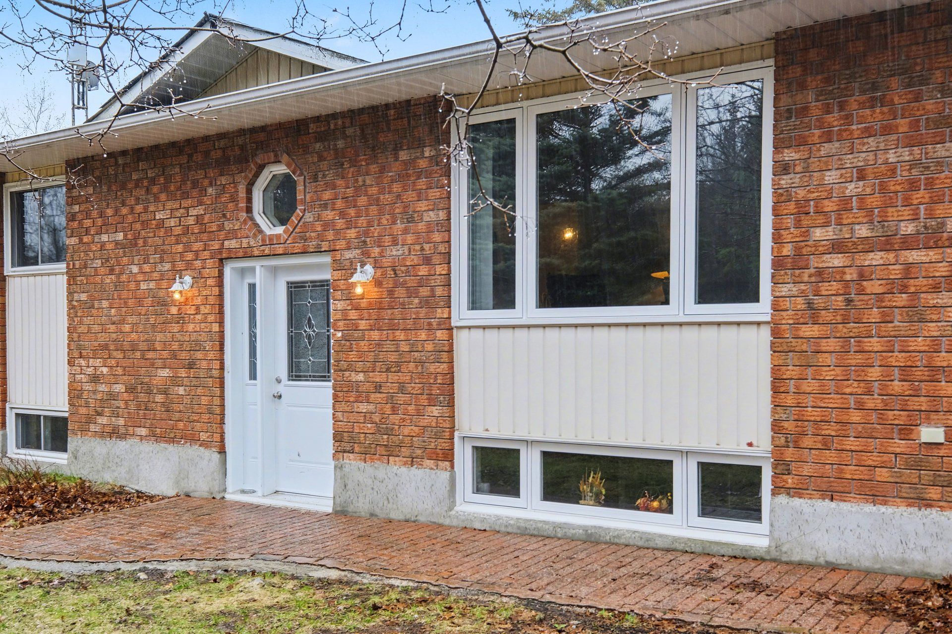 This beautiful high-ranch property sits on approximately 2 acres and offers a unique combination of privacy, functionality, space and versatility. The main floor is spacious and boasts large, bright rooms with hardwood floors. The kitchen features stainless steel appliances (2020-2021), modern countertops (2021) with a convenient entry door into the 2-car garage featuring high ceilings and a workshop, perfect for hobbies or workspace/storage needs. A 3-season, cozy sunroom is located just off the dining room (featuring french doors) allowing for picturesque views of the park-like property. The primary bedroom features a patio door leading out to a deck perfect for your morning coffee! And also has a large closet and includes a 2-piece ensuite with new toilet (2020), sink and faucet (2024). There are two additional well-sized bedrooms with large closets too. The main bathroom has been partially updated/refreshed (2024-2025). The totally renovated lower level (2024-2025) features granny suite capabilities-great for extended family or teenagers wanting to be more self-sufficient. The lower level has premium vinyl floor planking (2024) throughout and includes a recreation room/dining room, kitchen, bedroom, office, 4-piece bathroom and laundry room complete with storage. The recreational rooms new propane fireplace with remote fills the space with warmth and ambiance. The ll kitchen is open and features genuine maple countertops, new stainless steel sink and faucet. The bathroom features a large soaking tub for a spa-like experience. This home has received too many updates to list and incudes all new windows (2022), updated plumbing, electrical and electrical panel (2024), new furnace (2023), new hwt (2023), eavestroughing (2022), new front door (2023), 3hp sump pump with backup battery (2023) and much more. Outside, there is a new front walkway (2022) complete with tile drainage/piping, a large paved driveway with turn-around and plenty of greenspace and woodland.