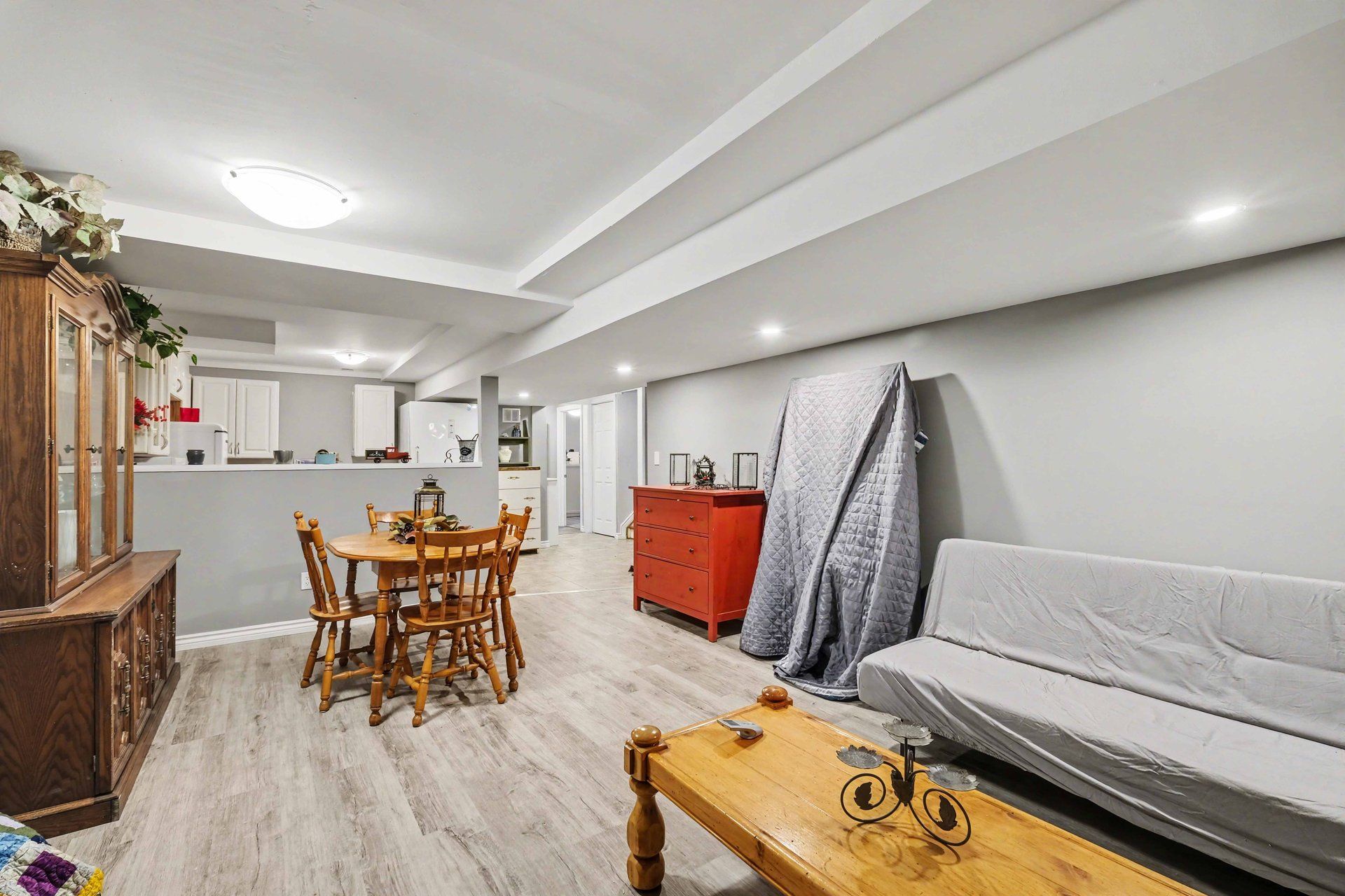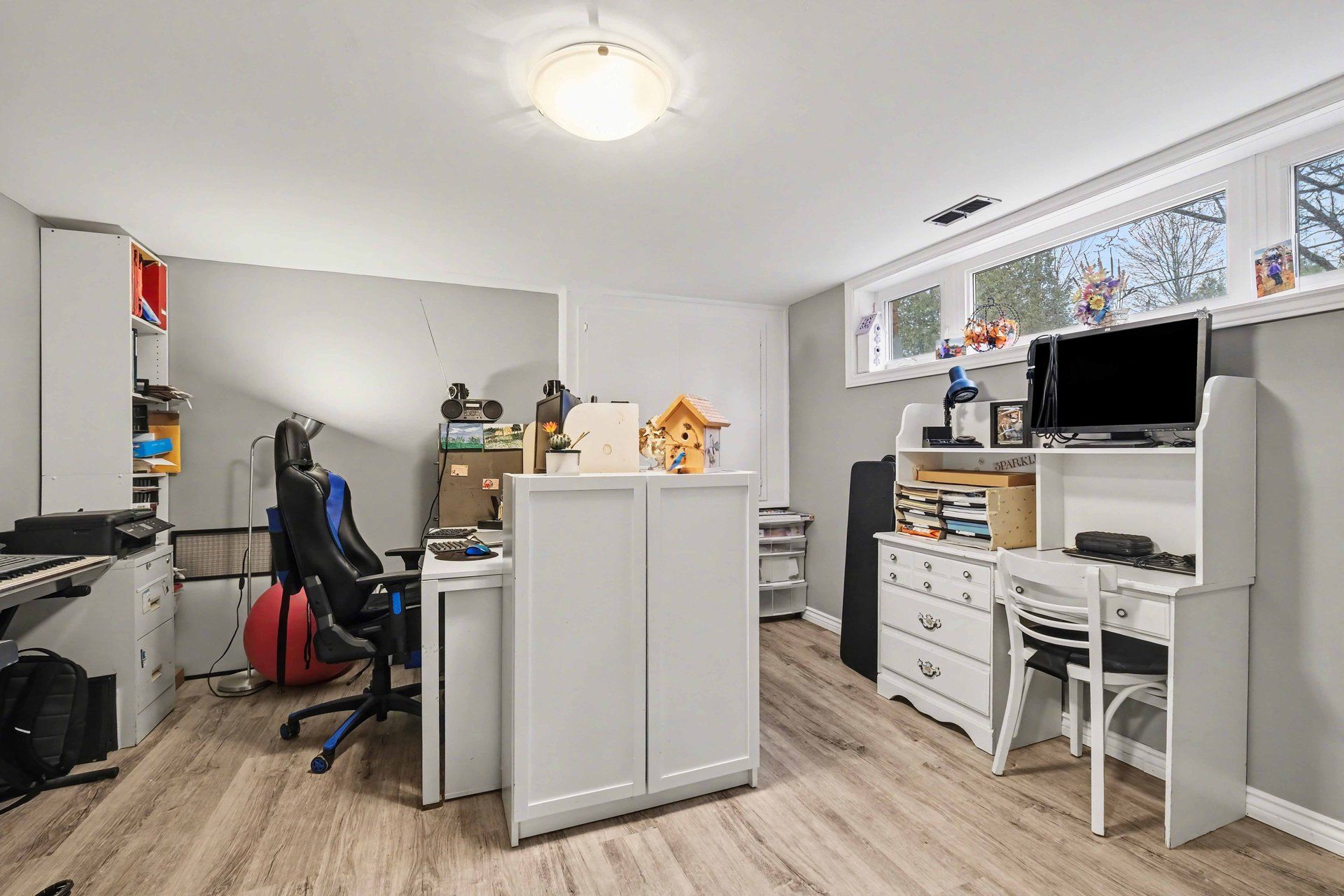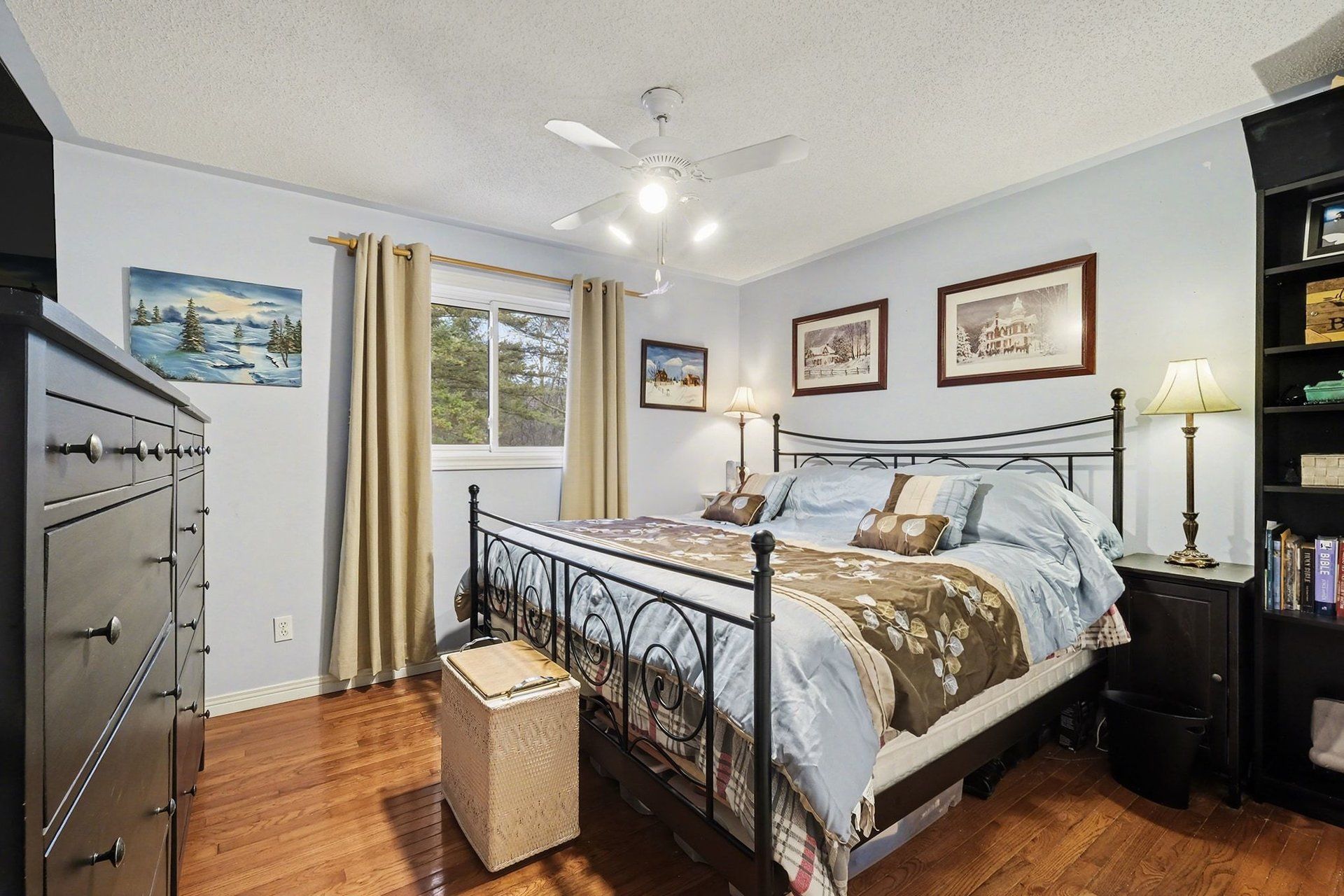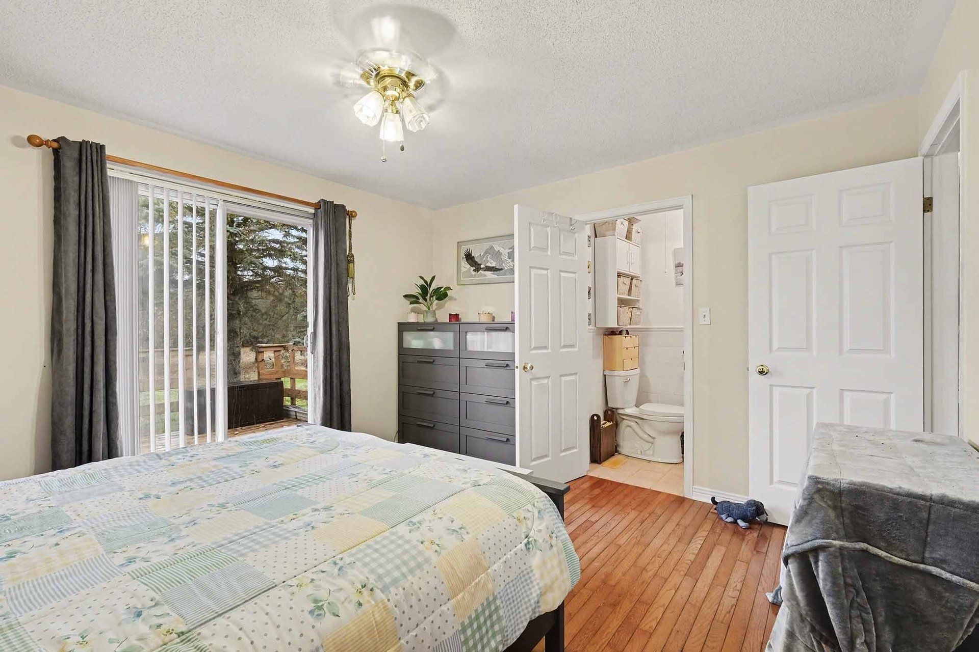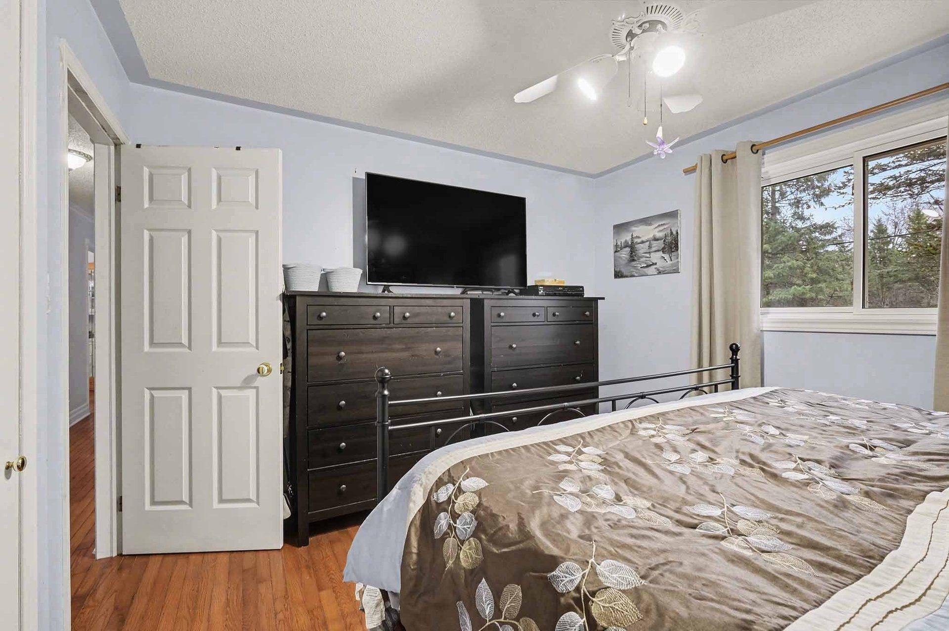 This beautiful high-ranch property sits on approximately 2 acres and offers a unique combination of privacy, functionality, space and versatility. The main floor is spacious and boasts large, bright rooms with hardwood floors. The kitchen features stainless steel appliances (2020-2021), modern countertops (2021) with a convenient entry door into the 2-car garage featuring high ceilings and a workshop, perfect for hobbies or workspace/storage needs. A 3-season, cozy sunroom is located just off the dining room (featuring french doors) allowing for picturesque views of the park-like property. The primary bedroom features a patio door leading out to a deck perfect for your morning coffee! And also has a large closet and includes a 2-piece ensuite with new toilet (2020), sink and faucet (2024). There are two additional well-sized bedrooms with large closets too. The main bathroom has been partially updated/refreshed (2024-2025). The totally renovated lower level (2024-2025) features granny suite capabilities-great for extended family or teenagers wanting to be more self-sufficient. The lower level has premium vinyl floor planking (2024) throughout and includes a recreation room/dining room, kitchen, bedroom, office, 4-piece bathroom and laundry room complete with storage. The recreational rooms new propane fireplace with remote fills the space with warmth and ambiance. The ll kitchen is open and features genuine maple countertops, new stainless steel sink and faucet. The bathroom features a large soaking tub for a spa-like experience. This home has received too many updates to list and incudes all new windows (2022), updated plumbing, electrical and electrical panel (2024), new furnace (2023), new hwt (2023), eavestroughing (2022), new front door (2023), 3hp sump pump with backup battery (2023) and much more. Outside, there is a new front walkway (2022) complete with tile drainage/piping, a large paved driveway with turn-around and plenty of greenspace and woodland.