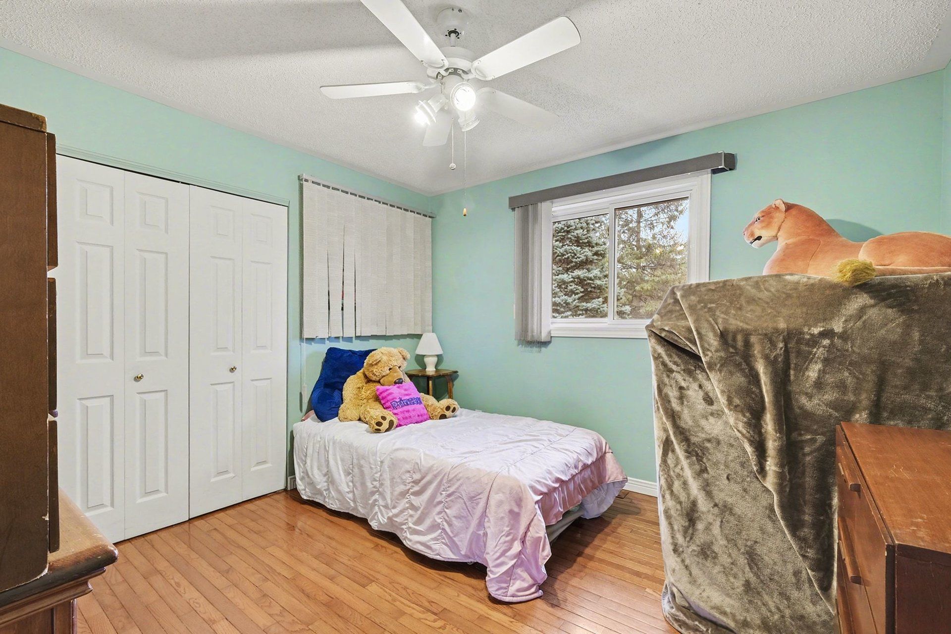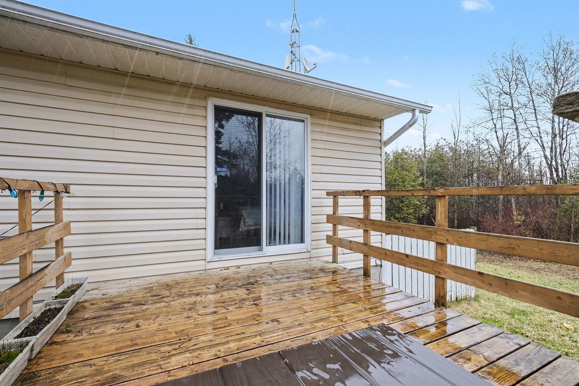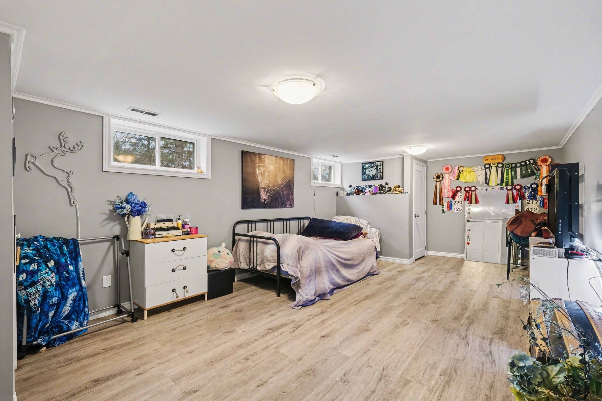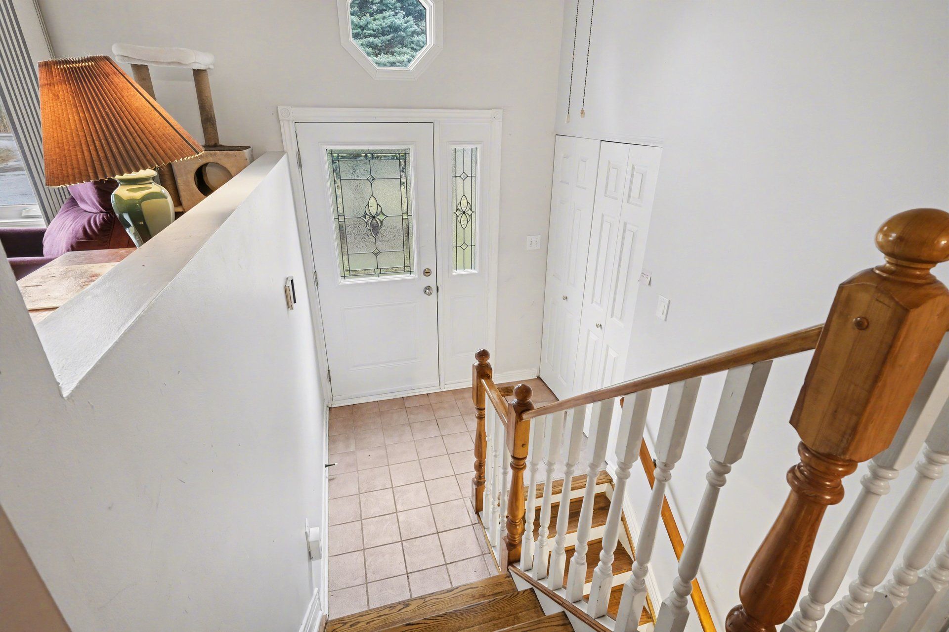 This beautiful high-ranch property sits on approximately 2 acres and offers a unique combination of privacy, functionality, space and versatility. The main floor is spacious and boasts large, bright rooms with hardwood floors. The kitchen features stainless steel appliances (2020-2021), modern countertops (2021) with a convenient entry door into the 2-car garage featuring high ceilings and a workshop, perfect for hobbies or workspace/storage needs. A 3-season, cozy sunroom is located just off the dining room (featuring french doors) allowing for picturesque views of the park-like property. The primary bedroom features a patio door leading out to a deck perfect for your morning coffee! And also has a large closet and includes a 2-piece ensuite with new toilet (2020), sink and faucet (2024). There are two additional well-sized bedrooms with large closets too. The main bathroom has been partially updated/refreshed (2024-2025). The totally renovated lower level (2024-2025) features granny suite capabilities-great for extended family or teenagers wanting to be more self-sufficient. The lower level has premium vinyl floor planking (2024) throughout and includes a recreation room/dining room, kitchen, bedroom, office, 4-piece bathroom and laundry room complete with storage. The recreational rooms new propane fireplace with remote fills the space with warmth and ambiance. The ll kitchen is open and features genuine maple countertops, new stainless steel sink and faucet. The bathroom features a large soaking tub for a spa-like experience. This home has received too many updates to list and incudes all new windows (2022), updated plumbing, electrical and electrical panel (2024), new furnace (2023), new hwt (2023), eavestroughing (2022), new front door (2023), 3hp sump pump with backup battery (2023) and much more. Outside, there is a new front walkway (2022) complete with tile drainage/piping, a large paved driveway with turn-around and plenty of greenspace and woodland.