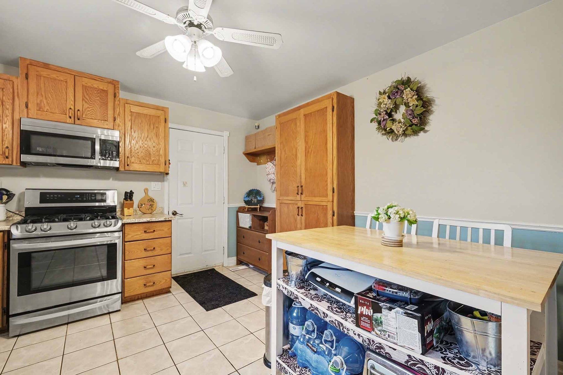 • Updated kitchen features stainless steel appliances and modern countertops for convenience.