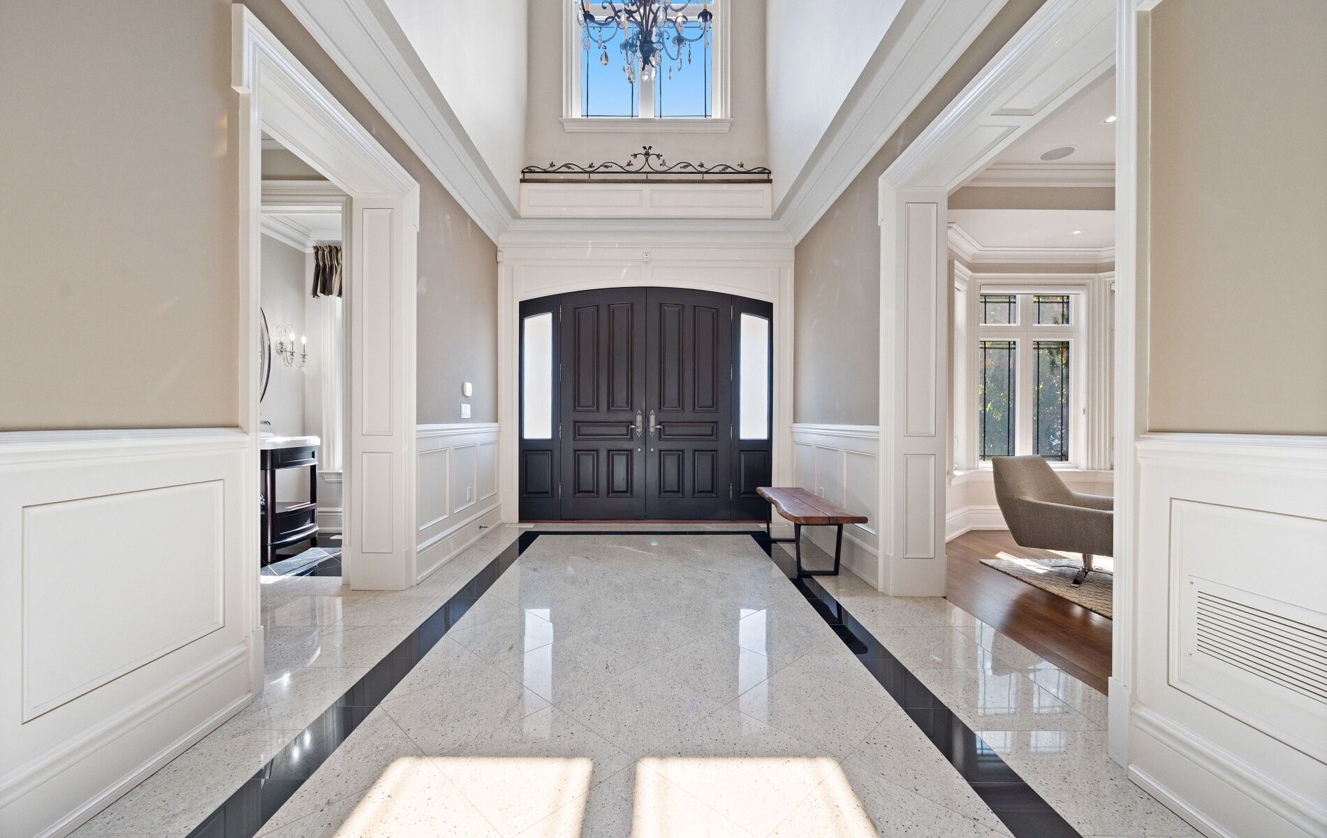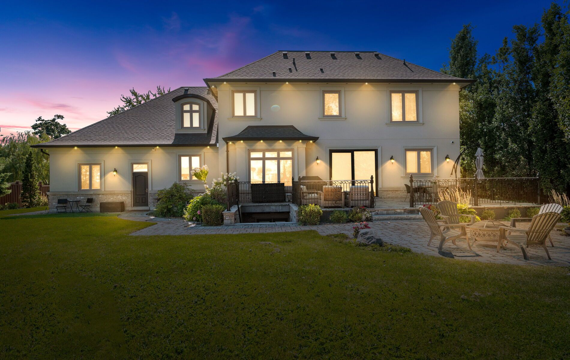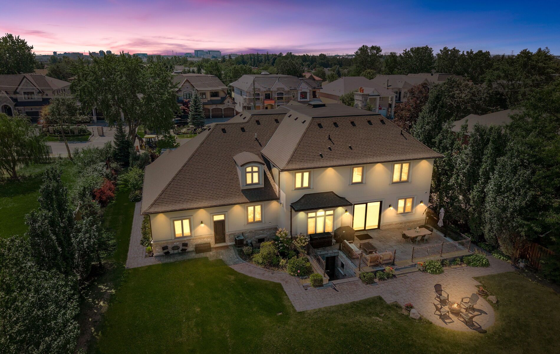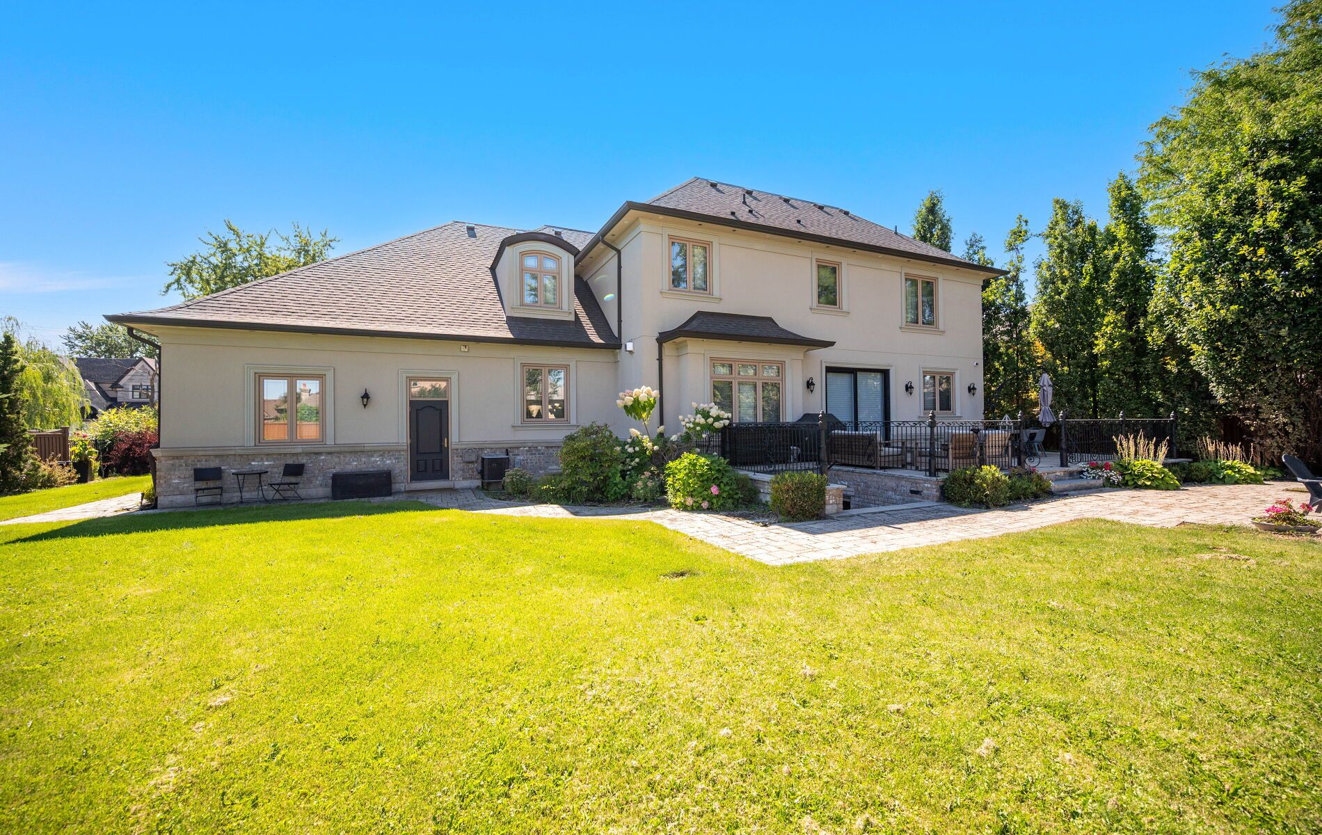 An extraordinary elegant 2-storey custom residence offering over 7,000 sq. Ft. Of impeccably finished living space plus a fully developed lower level. Nestled in a prestigious neighborhood surrounded by other estate homes, this home has been thoughtfully designed to combine timeless architecture with modern sophistication, highlighted by superb craftsmanship, soaring ceiling heights and luxurious details throughout. From the moment you arrive, the exterior sets the tone with its striking stone and stucco façade, copper roof accents, expansive windows, and an elegant double-door entrance. Step inside to a dramatic foyer with sweeping staircases and sightlines that draw you into spacious, light-filled principal rooms. The open-concept main floor showcases custom millwork, rich hardwood flooring, and oversized windows, creating a seamless flow ideal for both grand entertaining & everyday living. The gourmet chefs kitchen is a true centerpiece, featuring custom cabinetry, granite countertops, professional-grade built-in appliances, and a generous island w/ seating. A butlers pantry connects directly to the formal dining room, while the adjoining family room offers a custom fireplace and wall-to-wall windows overlooking the private rear yard and patio. Upstairs, four well-appointed bedrooms each enjoy walk-in closets and ensuite access. The primary suite is a luxurious retreat with a spa-like bath, complete with a freestanding tub, oversized glass shower, dual vanities, and custom dressing room. A convenient second-level laundry adds to the homes thoughtful design. The lower level extends the living space with radiant heated floors, a recreation area, fitness zone, custom wine cellar, soundproofed theatre room, additional bedrooms, and direct walkout access to the backyard. Designed with both comfort and elegance in mind, this home truly offers the ultimate lifestyle. A custom tailored triple garage w/ 2 tandem spaces & dual hoists, perfect for car enthusiasts!