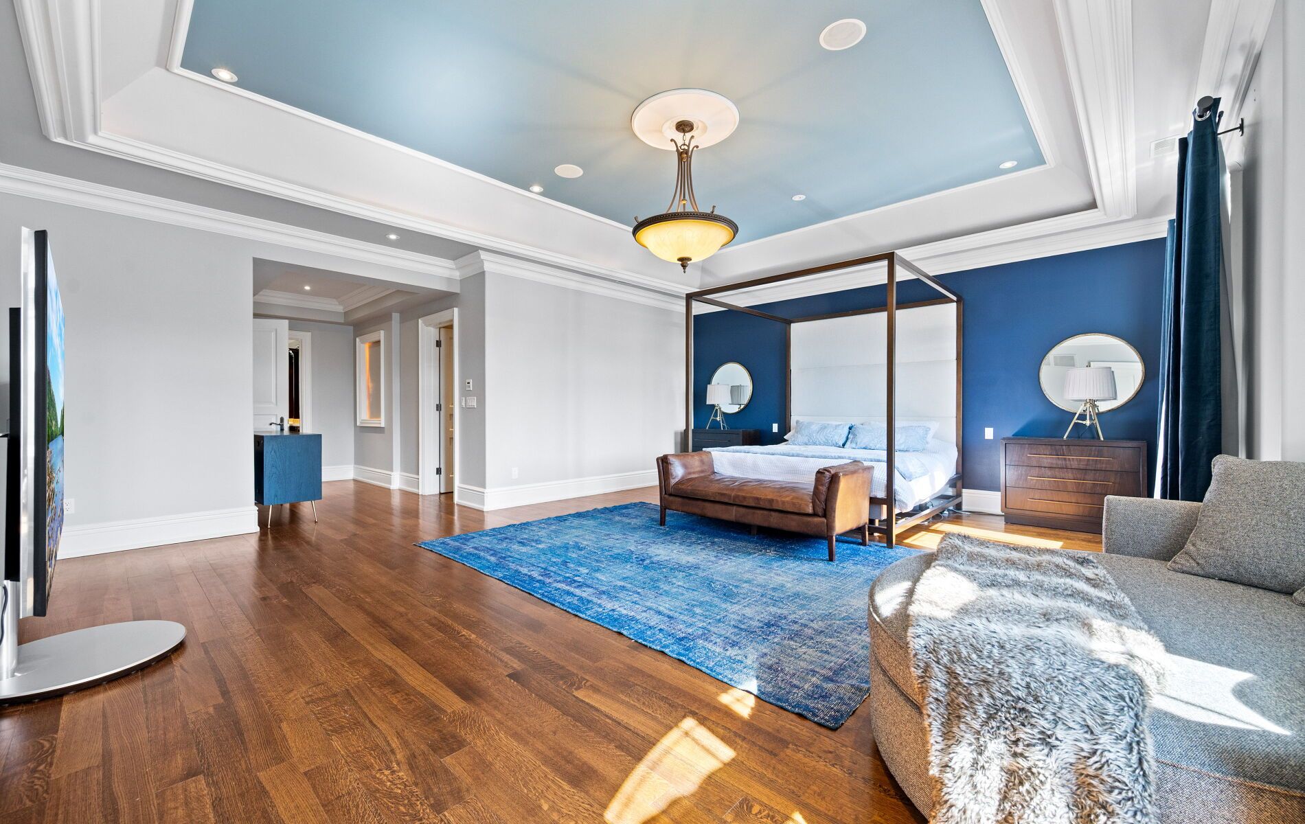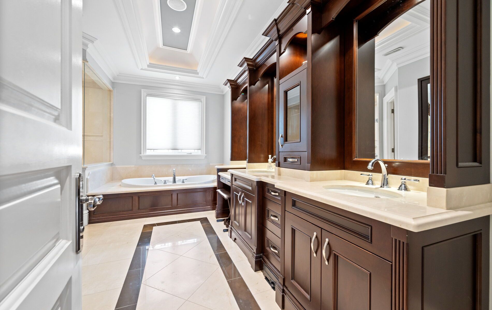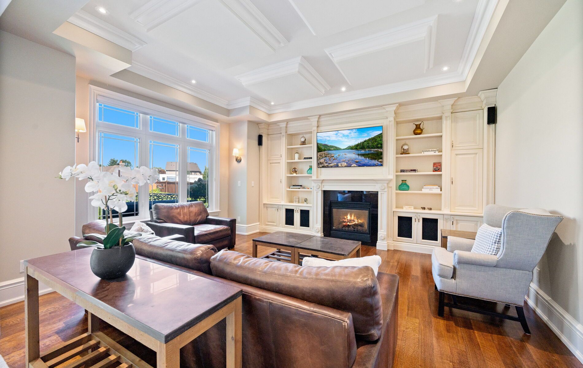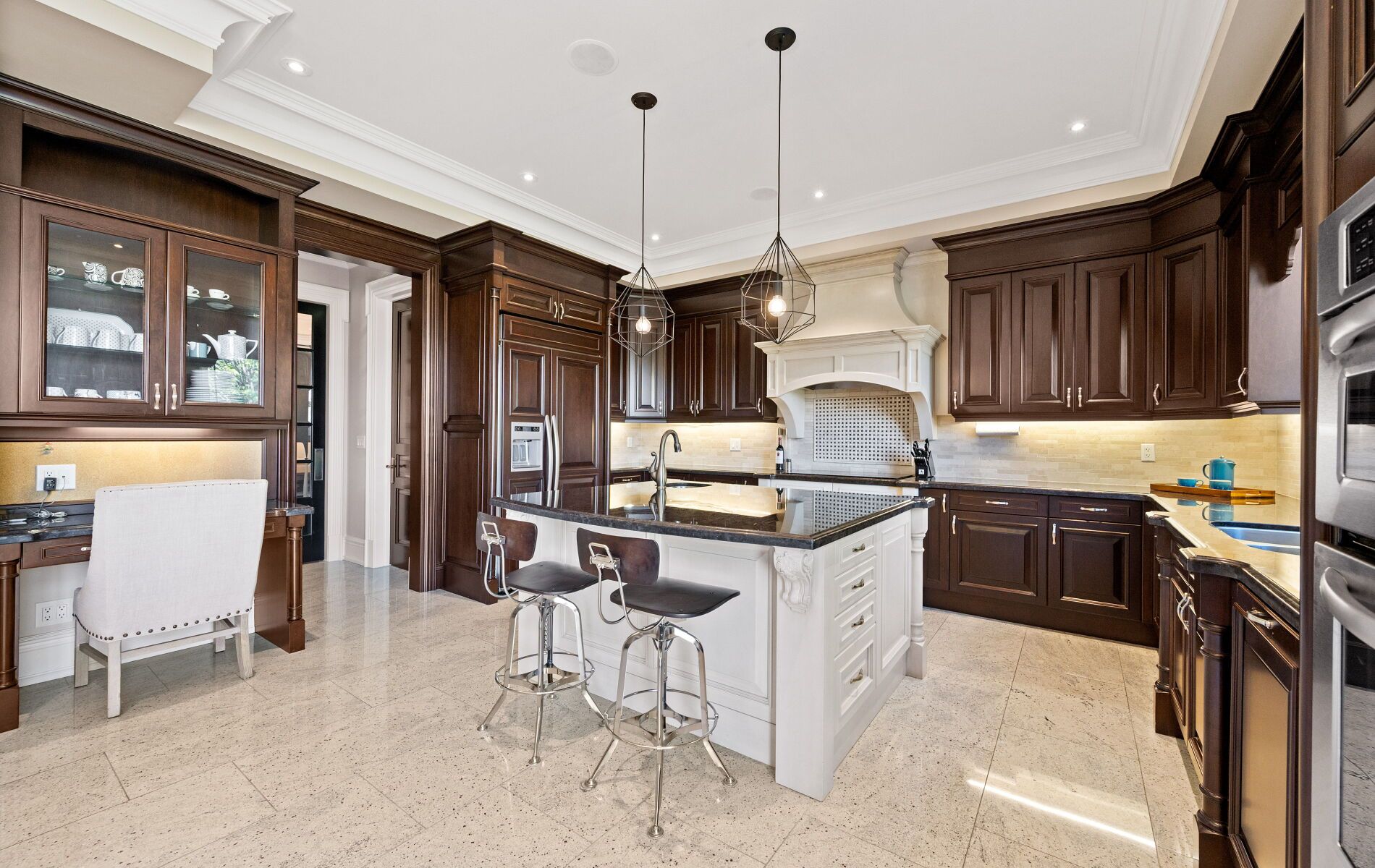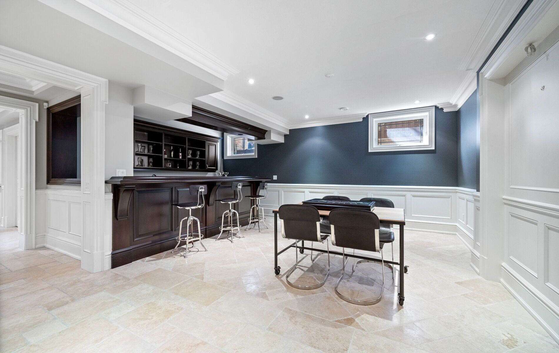 An extraordinary elegant 2-storey custom residence offering over 7,000 sq. Ft. Of impeccably finished living space plus a fully developed lower level. Nestled in a prestigious neighborhood surrounded by other estate homes, this home has been thoughtfully designed to combine timeless architecture with modern sophistication, highlighted by superb craftsmanship, soaring ceiling heights and luxurious details throughout. From the moment you arrive, the exterior sets the tone with its striking stone and stucco façade, copper roof accents, expansive windows, and an elegant double-door entrance. Step inside to a dramatic foyer with sweeping staircases and sightlines that draw you into spacious, light-filled principal rooms. The open-concept main floor showcases custom millwork, rich hardwood flooring, and oversized windows, creating a seamless flow ideal for both grand entertaining & everyday living. The gourmet chefs kitchen is a true centerpiece, featuring custom cabinetry, granite countertops, professional-grade built-in appliances, and a generous island w/ seating. A butlers pantry connects directly to the formal dining room, while the adjoining family room offers a custom fireplace and wall-to-wall windows overlooking the private rear yard and patio. Upstairs, four well-appointed bedrooms each enjoy walk-in closets and ensuite access. The primary suite is a luxurious retreat with a spa-like bath, complete with a freestanding tub, oversized glass shower, dual vanities, and custom dressing room. A convenient second-level laundry adds to the homes thoughtful design. The lower level extends the living space with radiant heated floors, a recreation area, fitness zone, custom wine cellar, soundproofed theatre room, additional bedrooms, and direct walkout access to the backyard. Designed with both comfort and elegance in mind, this home truly offers the ultimate lifestyle. A custom tailored triple garage w/ 2 tandem spaces & dual hoists, perfect for car enthusiasts!