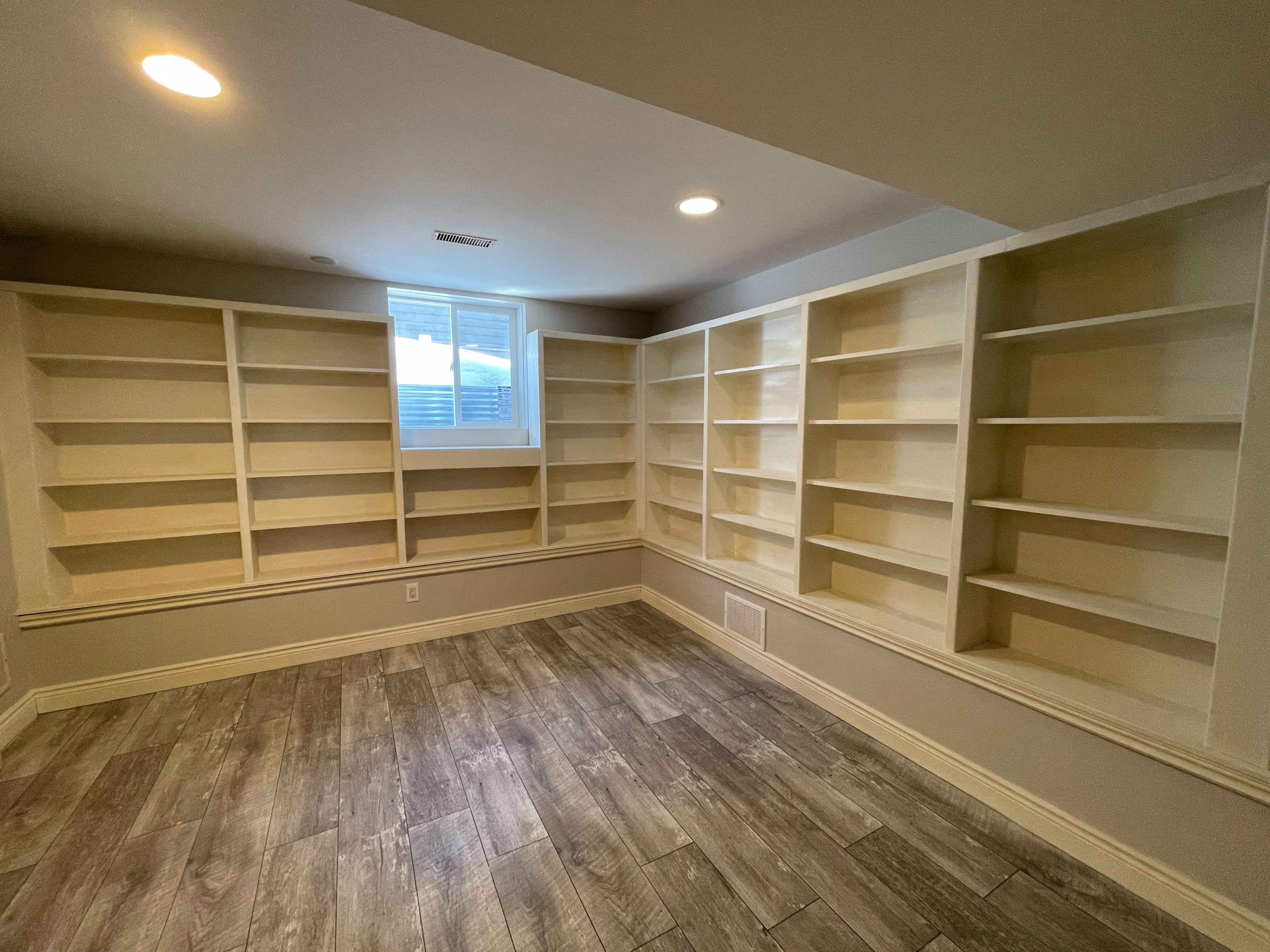 • Cozy den with built-in bookshelves for office or storage.