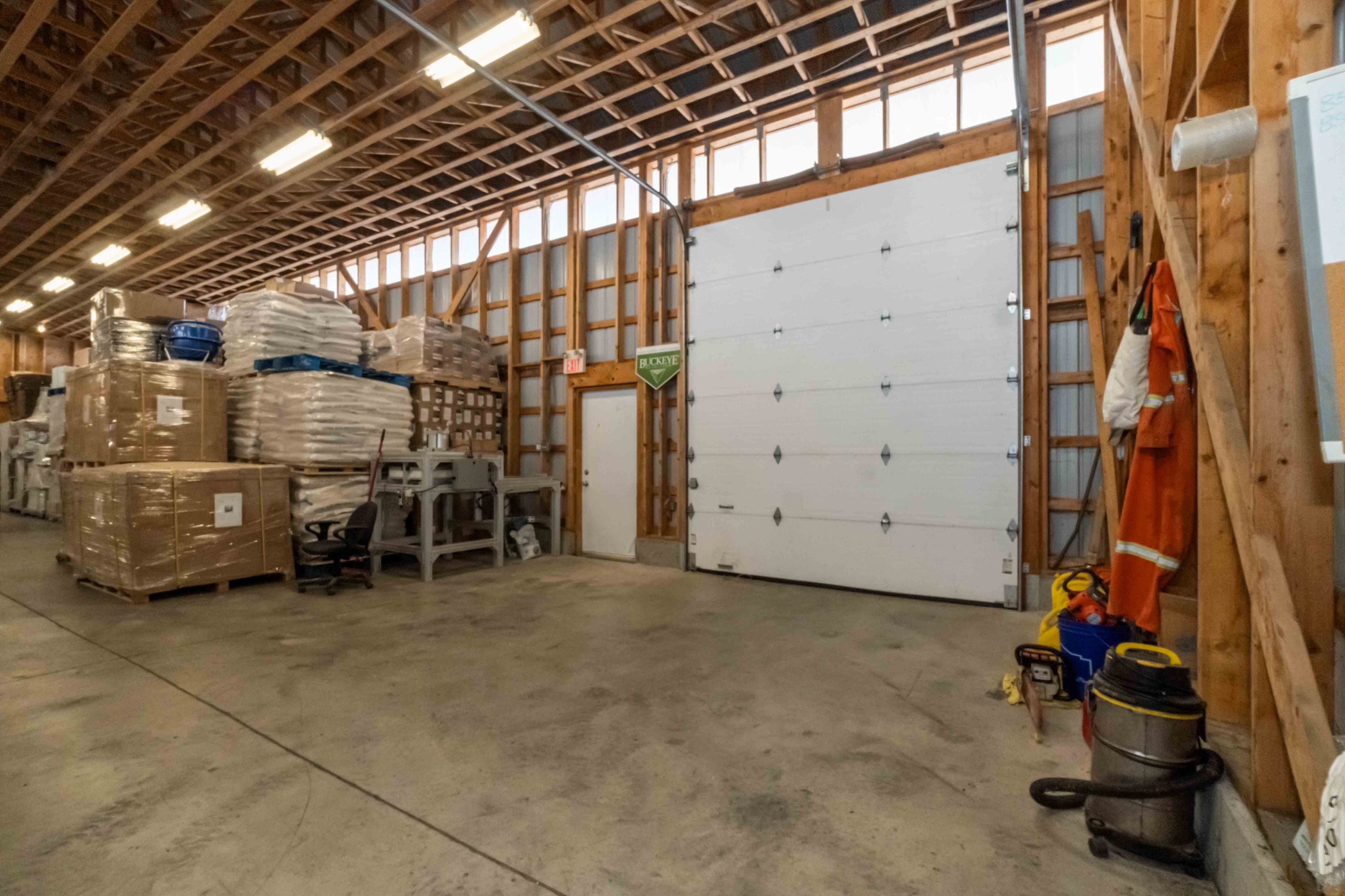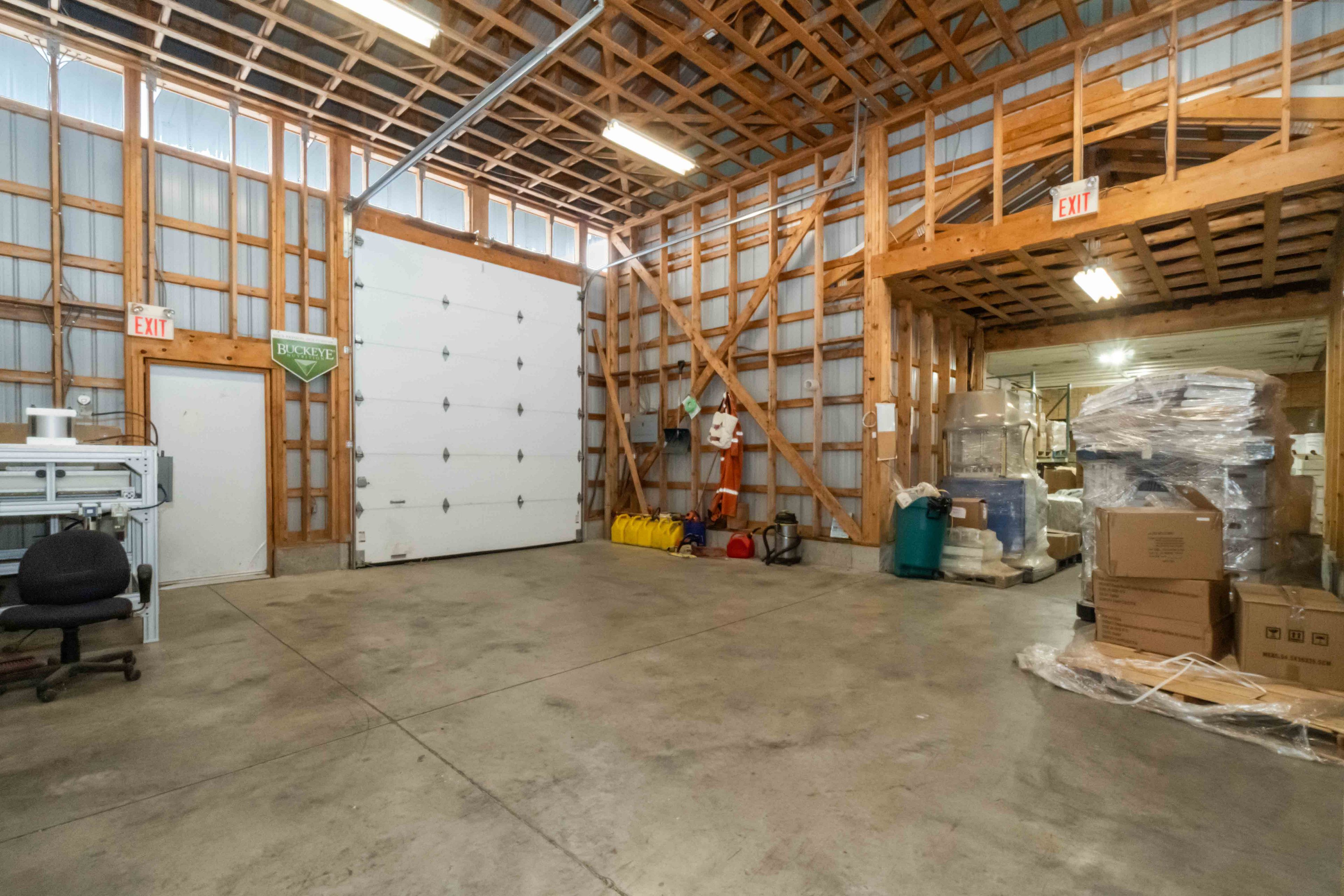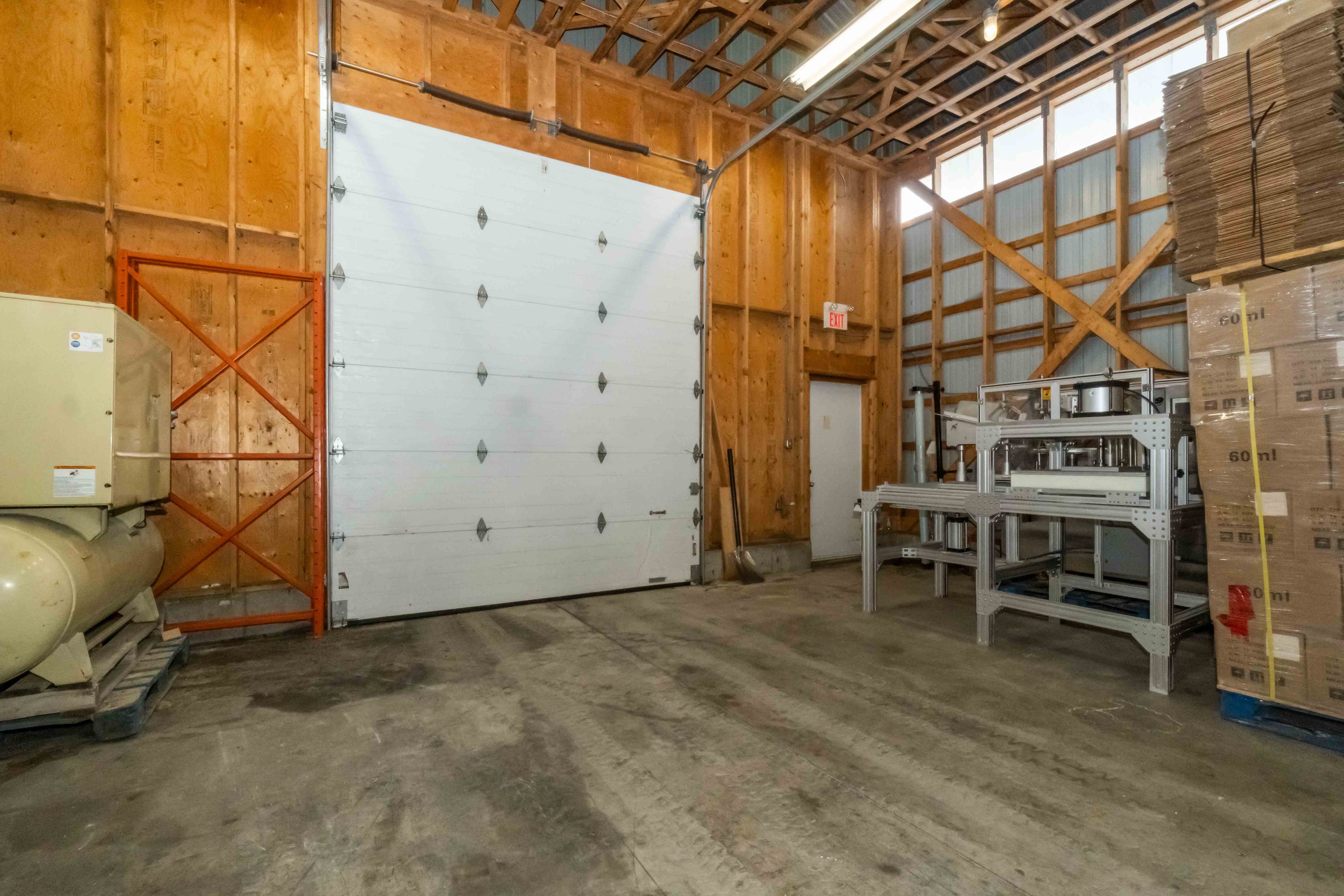 • Large storage area with high ceilings and multiple garage doors for easy access.
