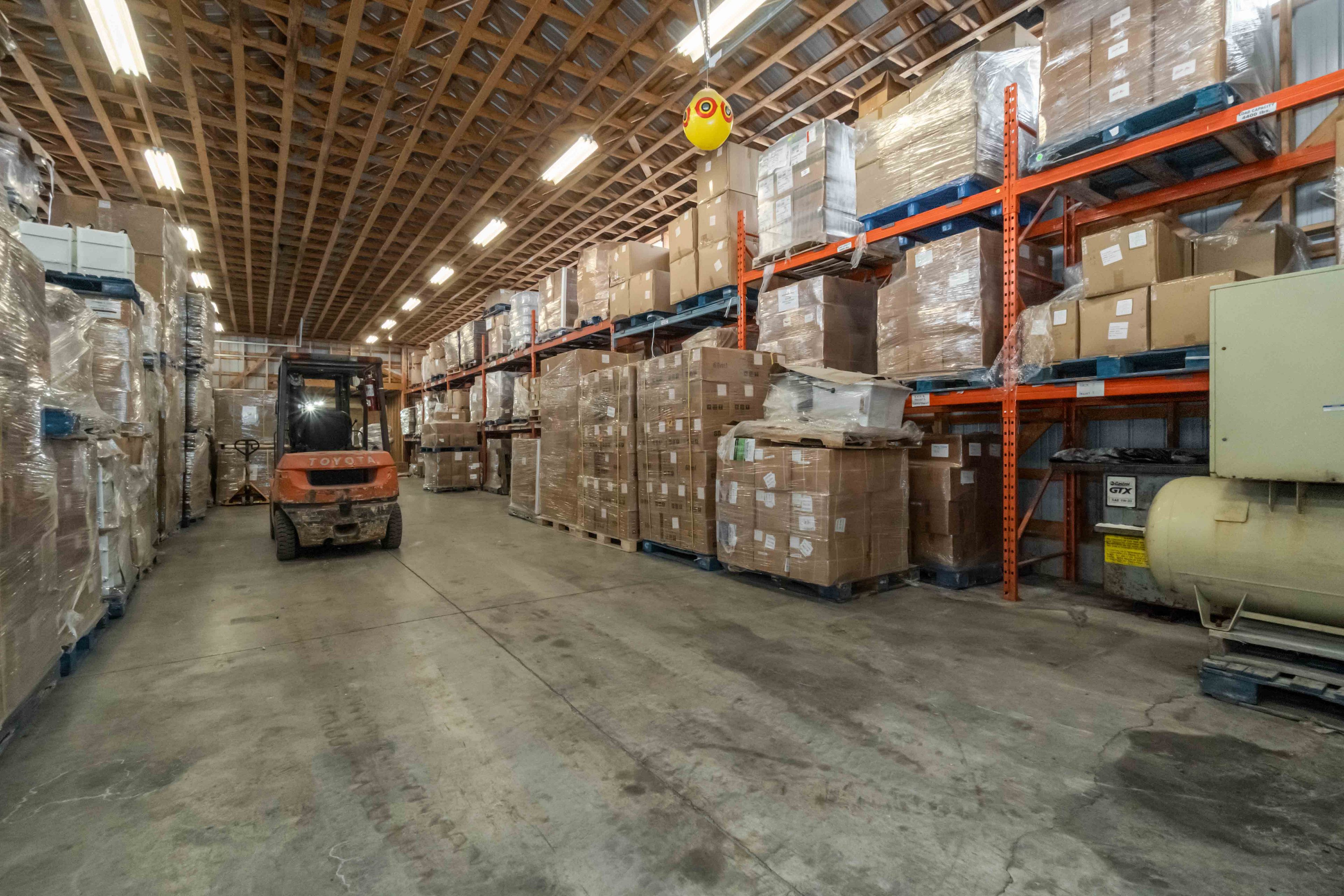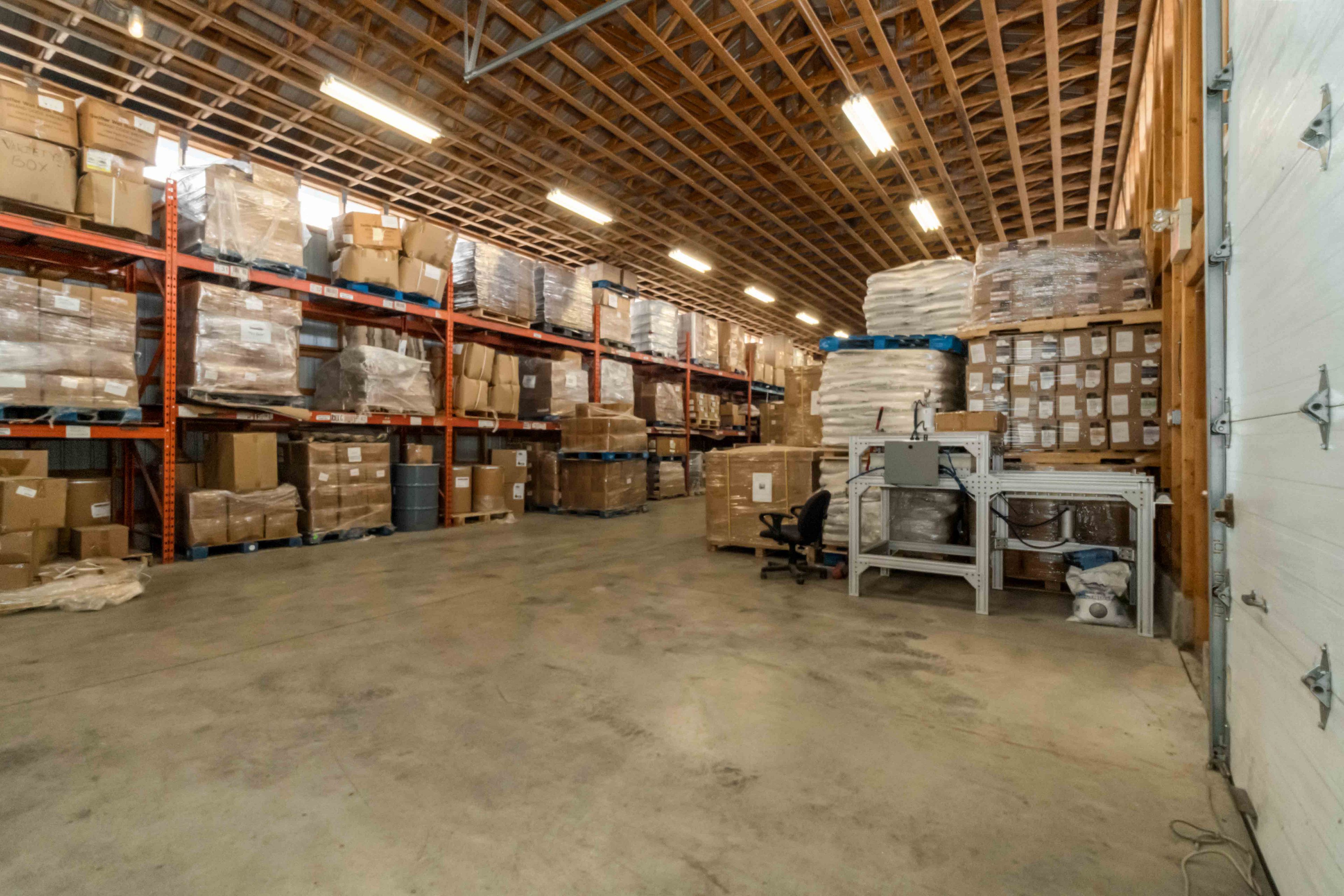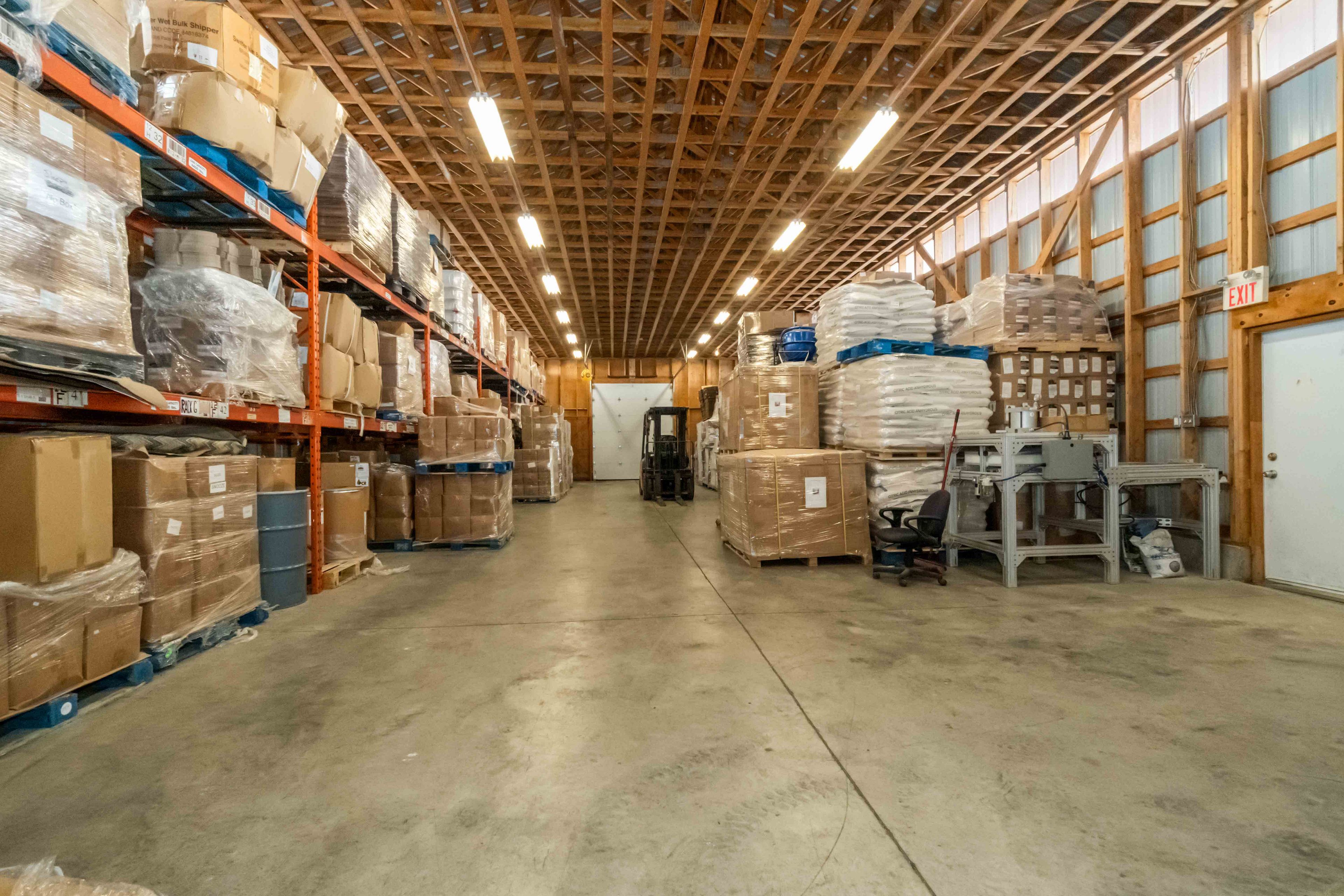• Large storage area with high ceilings and multiple garage doors for easy access.