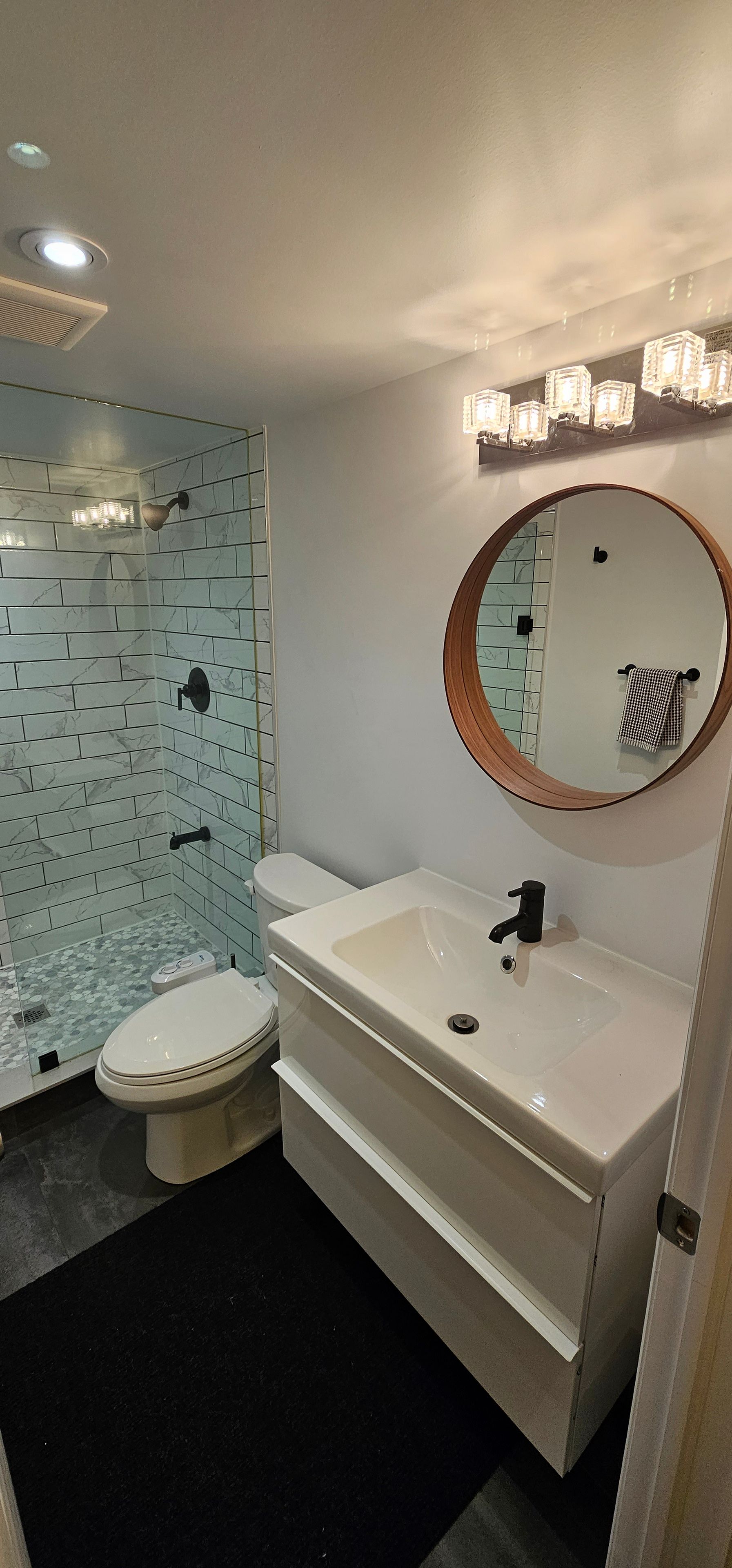 • Modern kitchen and bathrooms outfitted with elegant quartz countertops.