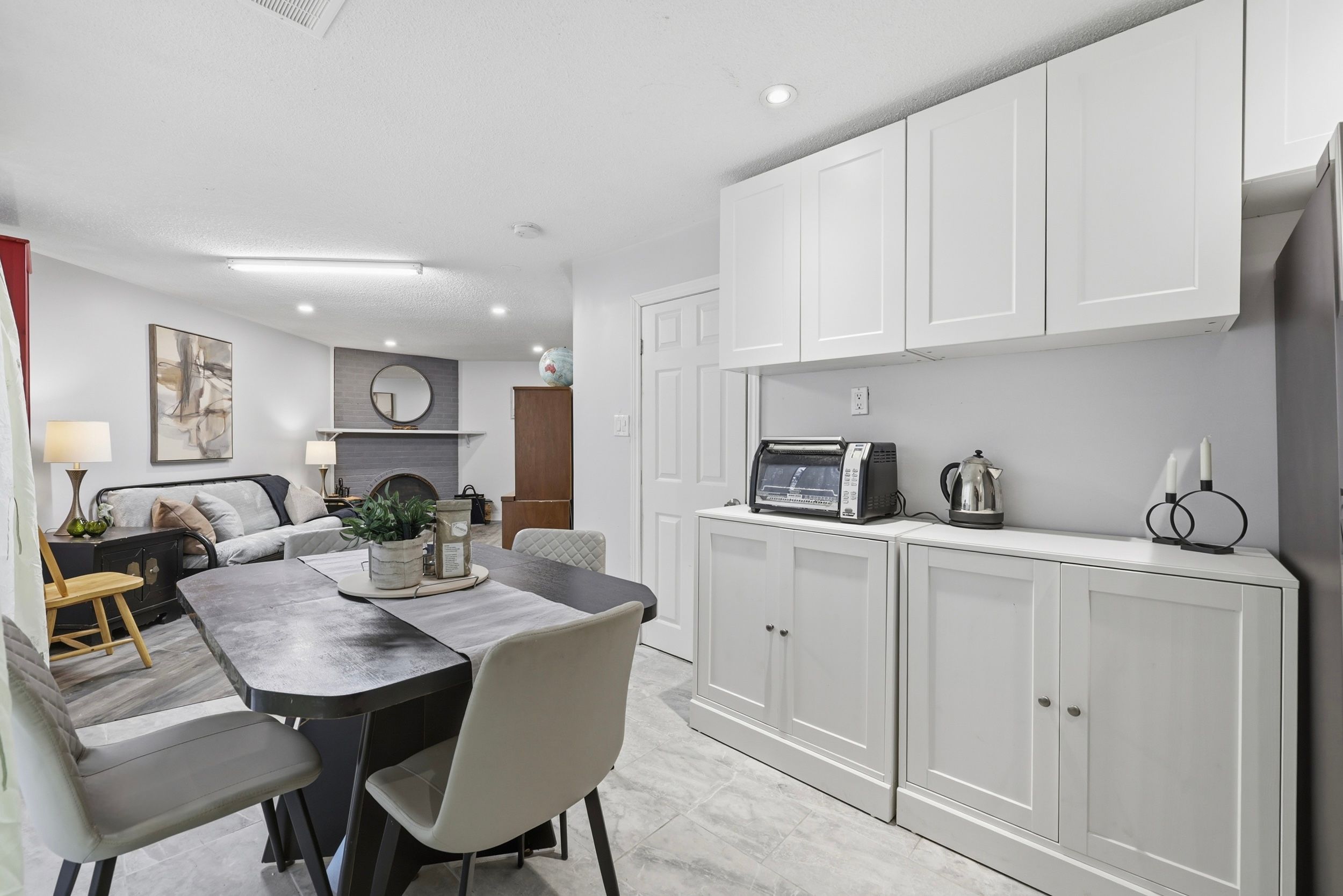 Welcome to this well-maintained three-bedroom, three-bathroom condo townhome offering exceptional flexibility for today's buyers. With multiple living areas and laundry conveniently located on both the upper and lower levels, this home is ideal for first-time buyers, growing families, or buyers seeking space to offset monthly costs with extended living potential. The main level features a welcoming front foyer, a well-equipped kitchen with breakfast bar, and an open-concept living and dining area centered around a cozy wood-burning fireplace-perfect for everyday living and entertaining. Upstairs, you'll find three generously sized bedrooms, including a comfortable primary retreat, along with a full bathroom and convenient upper-level laundry. The finished lower level adds valuable versatility with a separate walkout entrance, a large living area with kitchenette (no stove), a full bathroom, and additional laundry. This space is well-suited for extended family, a private home office, or future reconfiguration to include an additional bedroom, offering excellent flexibility as needs evolve. Located in a family-friendly mississauga community close to parks, schools, shopping, grocery stores, transit, and major highways. A smart opportunity for buyers looking for space, functionality, and long-term value in a well-connected location.