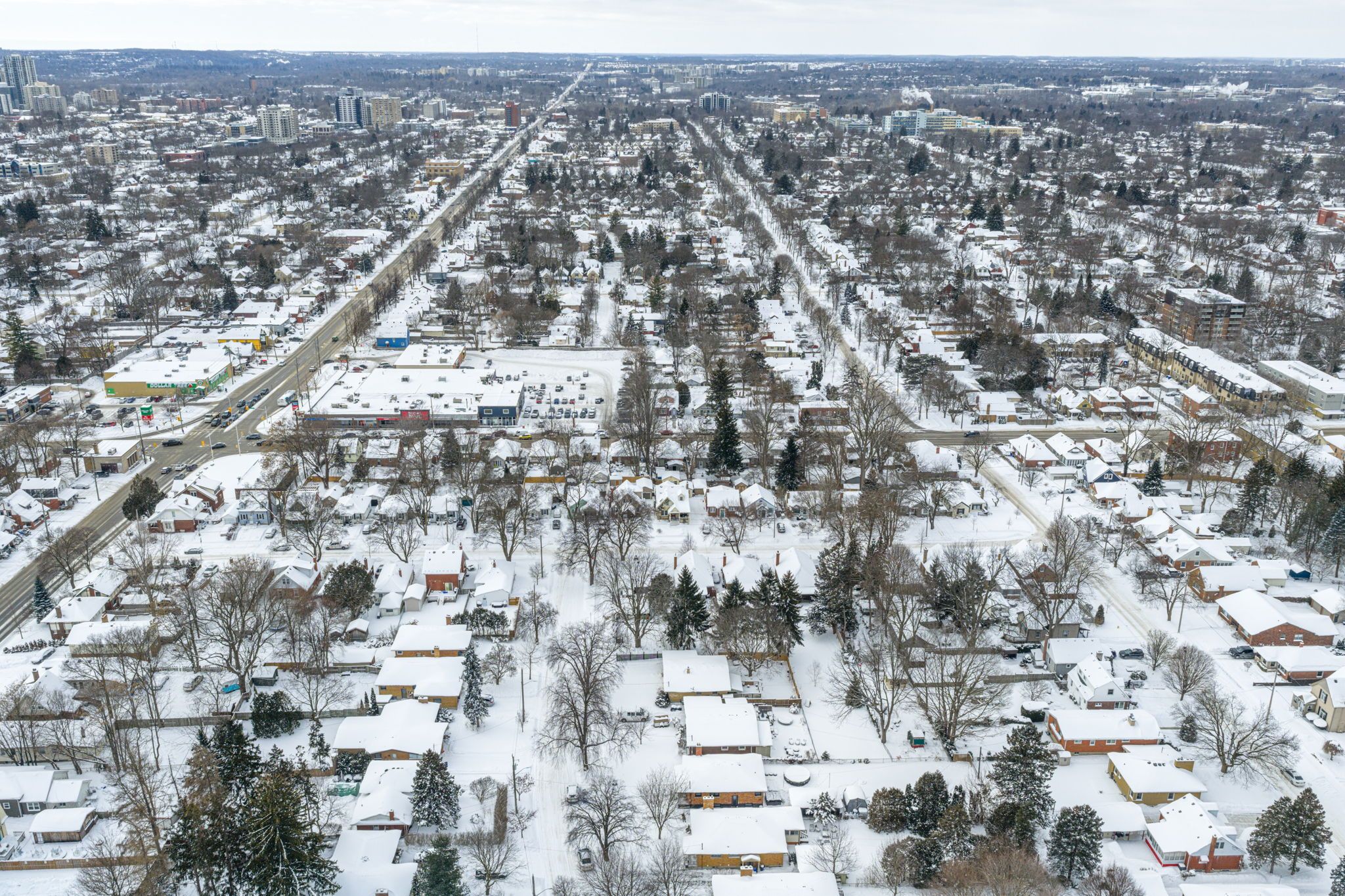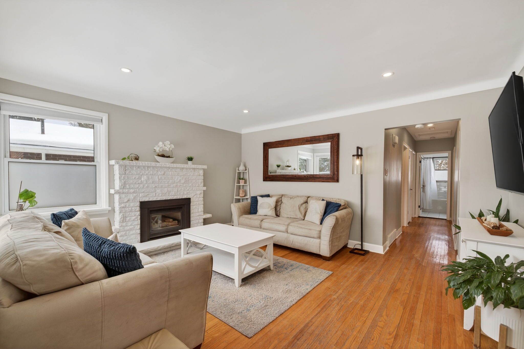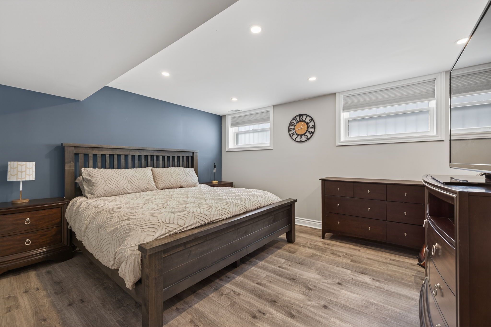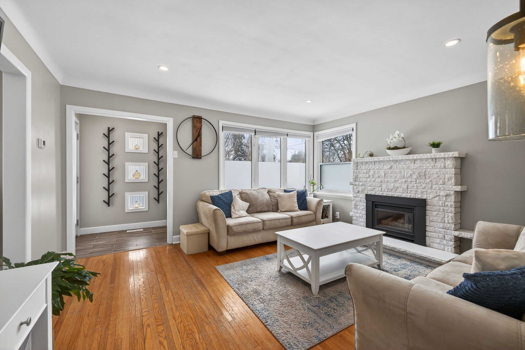 Welcome to this beautifully renovated all brick 3 bed, 2 full bath bungalow in a premium central london location close to downtown, major amenities, transit and easy access to western university and fanshawe college. This stylish mid century modern inspired home offers outstanding curb appeal with black accented windows, soffits and doors, plus a covered front porch that welcomes you inside. The spacious lot measures approximately 47 feet by 188 feet, offering exceptional outdoor space for kids, pets, gardening, future expansion or potential additional residential unit opportunities. Parking is abundant with a three car driveway and a detached single garage, ideal for storage, hobbies or a workshop. The backyard is also equipped with electrical already pre run for a future hot tub, adding extra comfort and lifestyle appeal. Inside, the main level features a functional front mudroom with bench seating and coat hooks that opens into a bright living room highlighted by a gas fireplace with brick surround. Original hardwood flooring flows through the living room and all three main floor bedrooms. The open concept kitchen has been fully renovated with white cabinetry, generous pantry and storage space, stainless steel appliances and a comfortable dining area. Three generously sized bedrooms are complemented by a beautifully updated four piece bathroom featuring subway tile surround and modern black fixtures. The finished lower level offers excellent flexibility with a separate side entrance, high end laminate flooring, oversized windows, a large recreation room with defined bedroom area, an additional four piece bathroom and plenty of storage with laundry facilities. This move in ready bungalow combines timeless character, thoughtful updates and a highly desirable location, making it ideal for families, professionals, investors or those seeking long term value in the heart of the city.