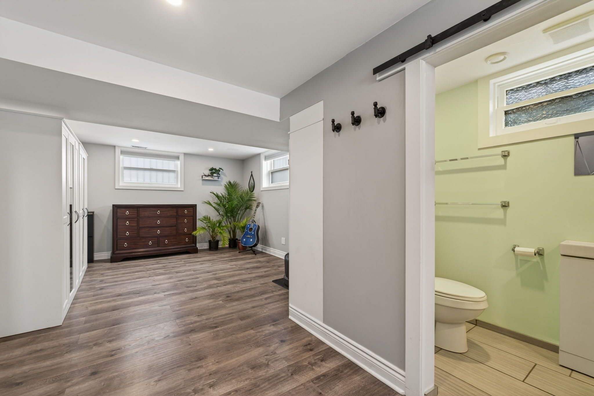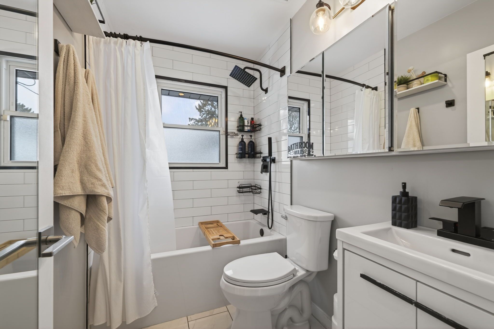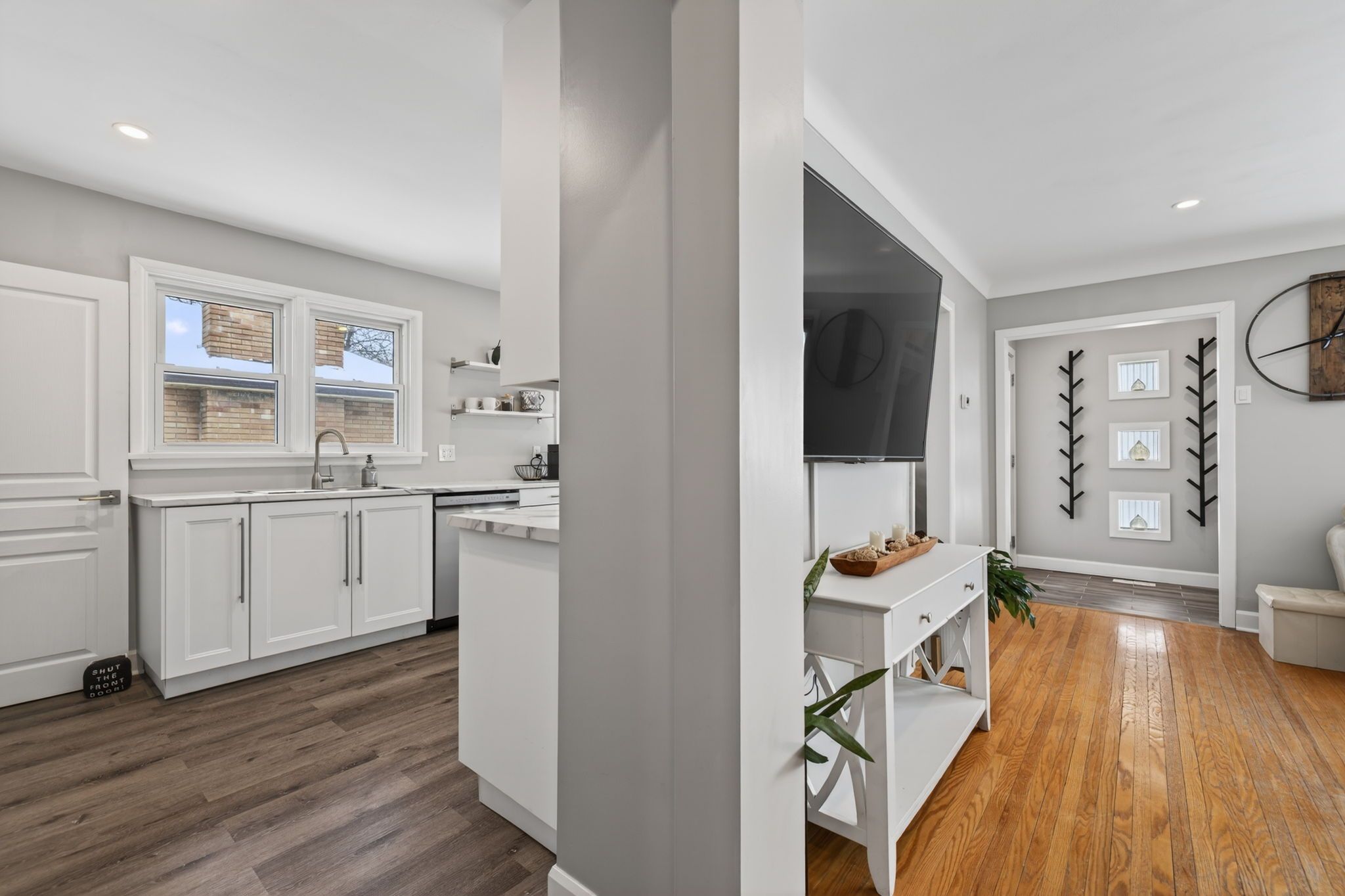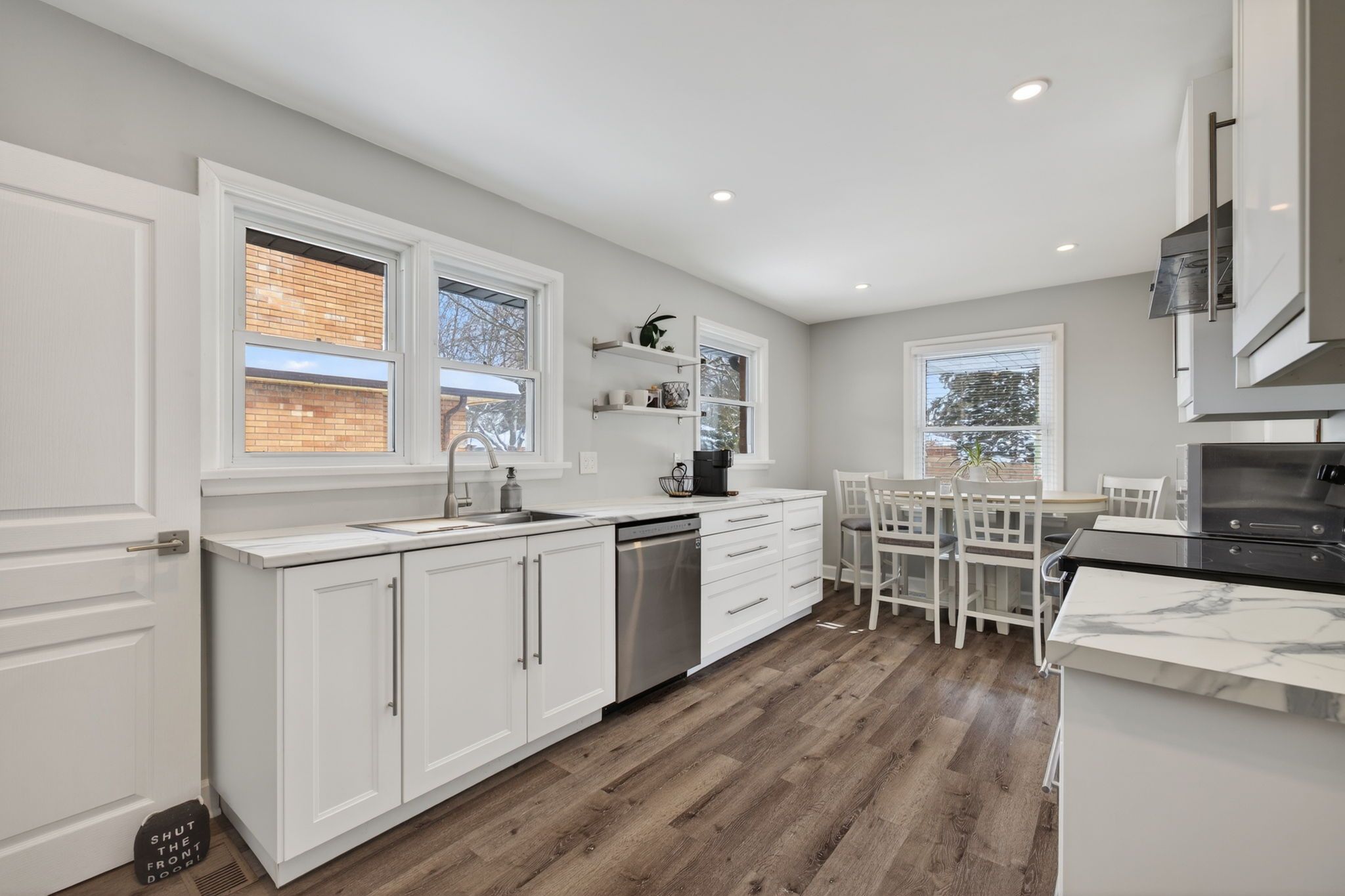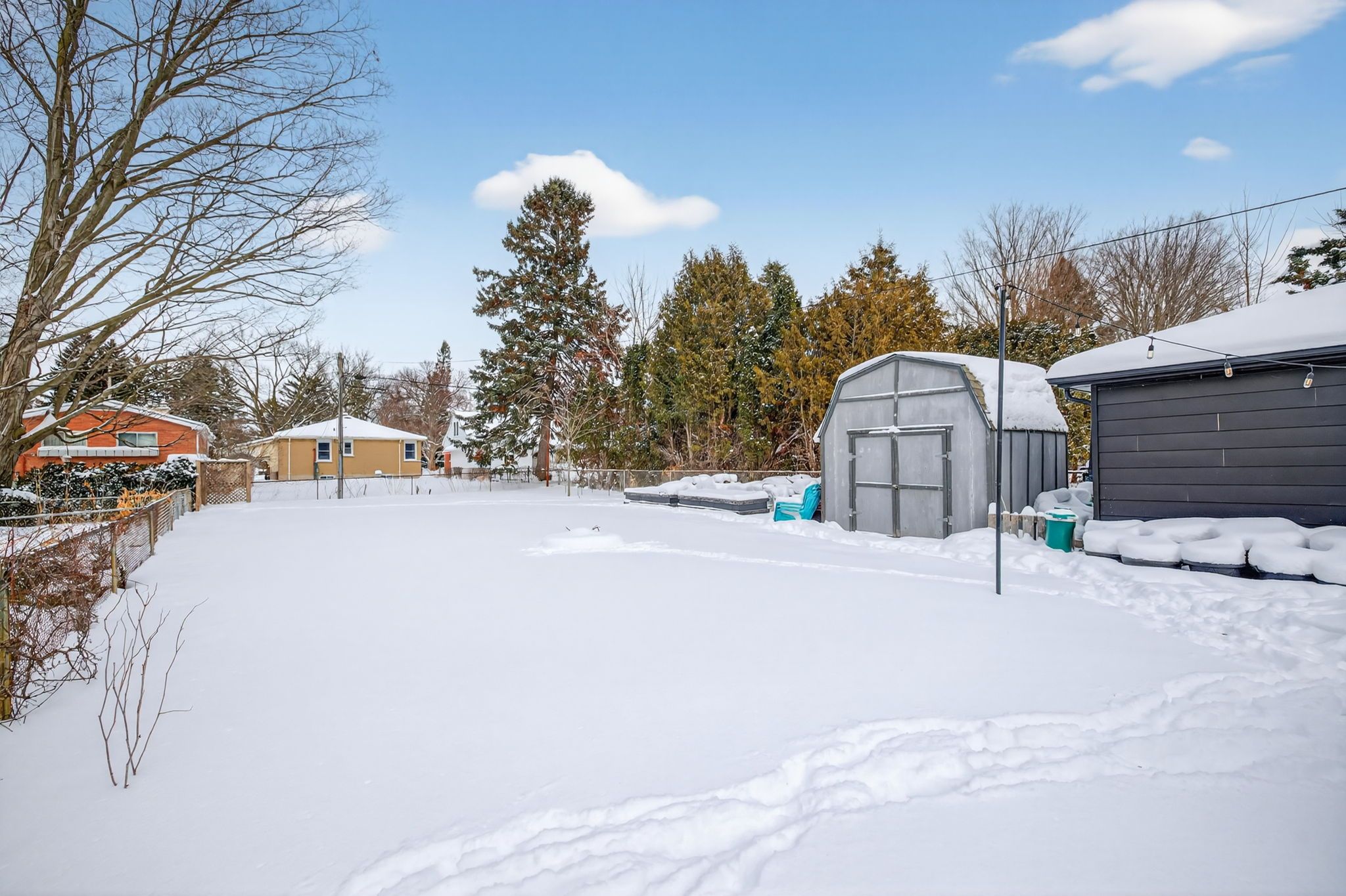 Welcome to this beautifully renovated all brick 3 bed, 2 full bath bungalow in a premium central london location close to downtown, major amenities, transit and easy access to western university and fanshawe college. This stylish mid century modern inspired home offers outstanding curb appeal with black accented windows, soffits and doors, plus a covered front porch that welcomes you inside. The spacious lot measures approximately 47 feet by 188 feet, offering exceptional outdoor space for kids, pets, gardening, future expansion or potential additional residential unit opportunities. Parking is abundant with a three car driveway and a detached single garage, ideal for storage, hobbies or a workshop. The backyard is also equipped with electrical already pre run for a future hot tub, adding extra comfort and lifestyle appeal. Inside, the main level features a functional front mudroom with bench seating and coat hooks that opens into a bright living room highlighted by a gas fireplace with brick surround. Original hardwood flooring flows through the living room and all three main floor bedrooms. The open concept kitchen has been fully renovated with white cabinetry, generous pantry and storage space, stainless steel appliances and a comfortable dining area. Three generously sized bedrooms are complemented by a beautifully updated four piece bathroom featuring subway tile surround and modern black fixtures. The finished lower level offers excellent flexibility with a separate side entrance, high end laminate flooring, oversized windows, a large recreation room with defined bedroom area, an additional four piece bathroom and plenty of storage with laundry facilities. This move in ready bungalow combines timeless character, thoughtful updates and a highly desirable location, making it ideal for families, professionals, investors or those seeking long term value in the heart of the city.