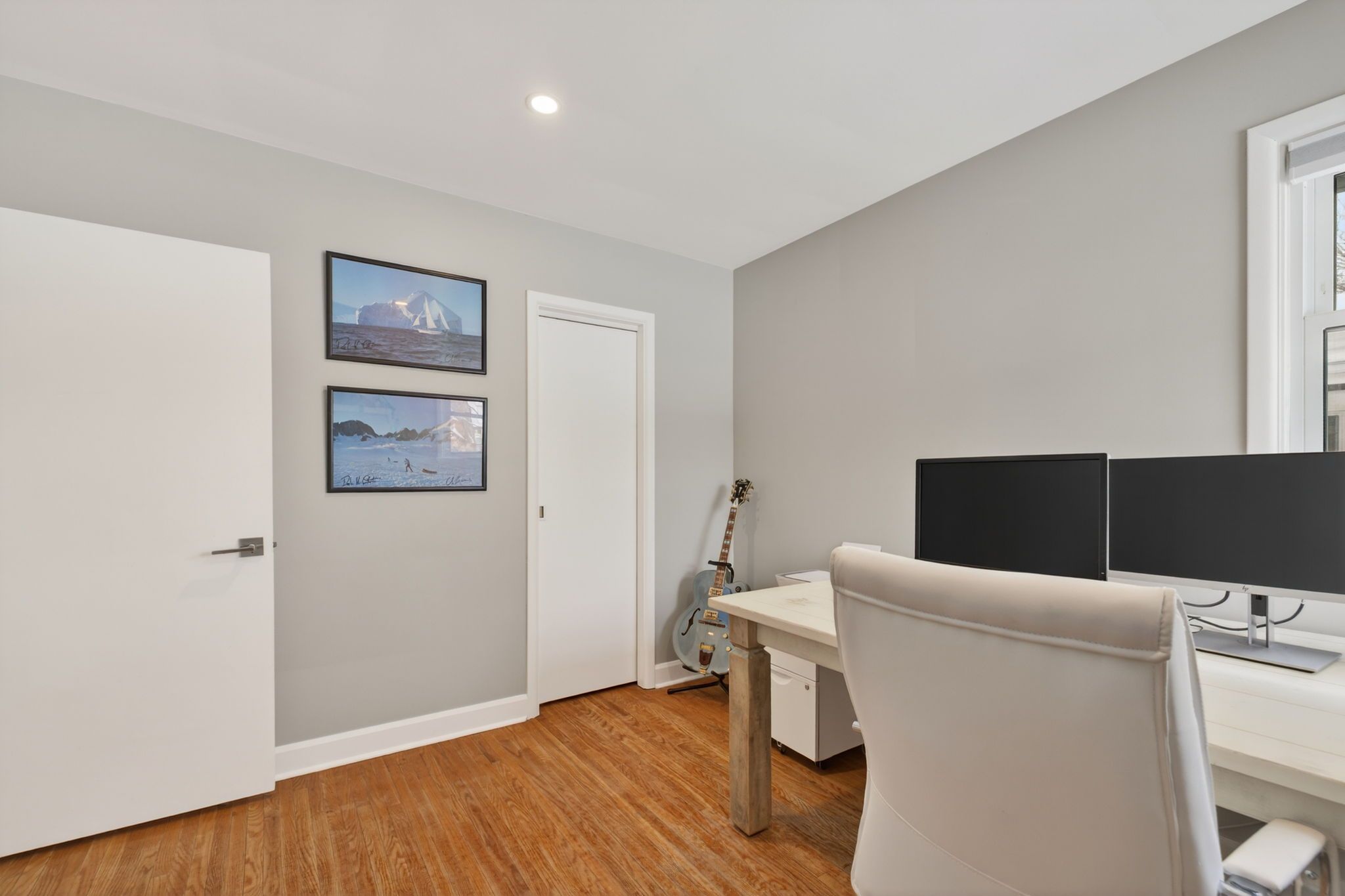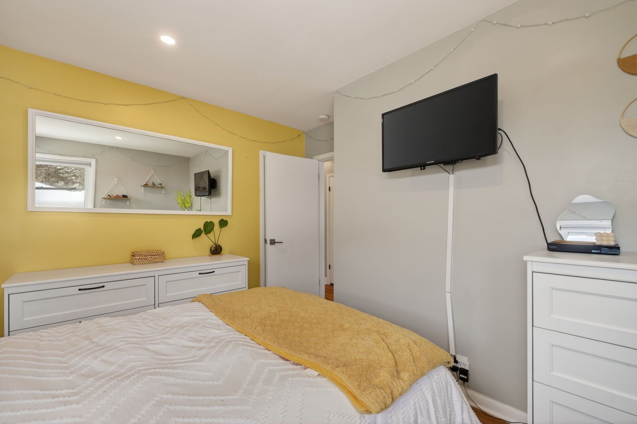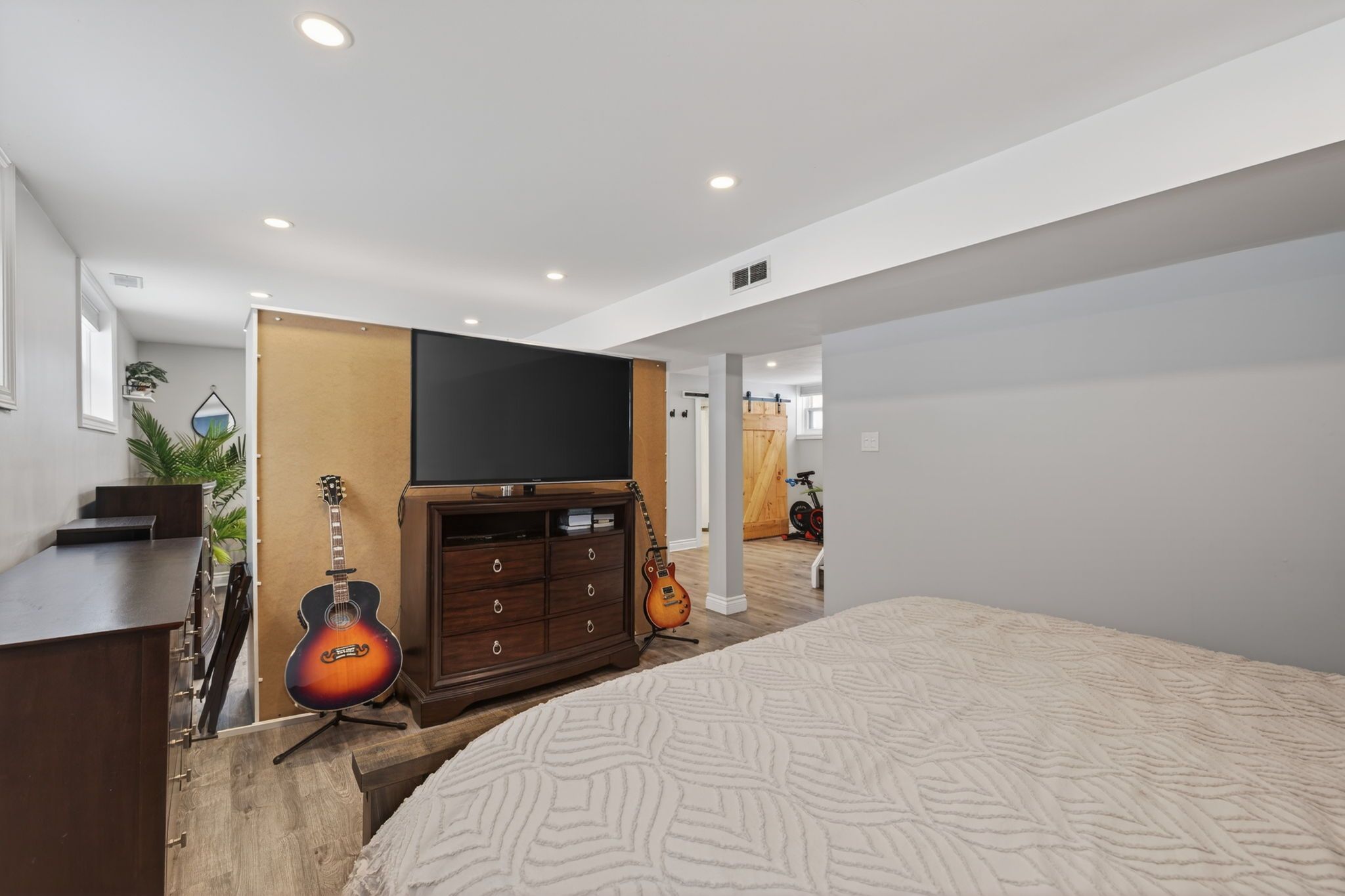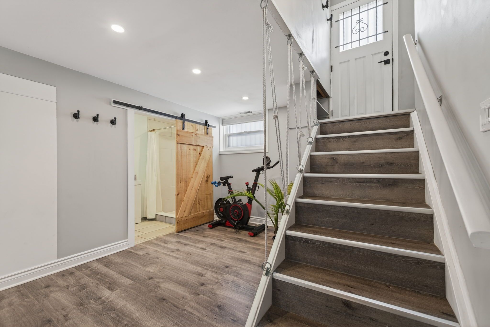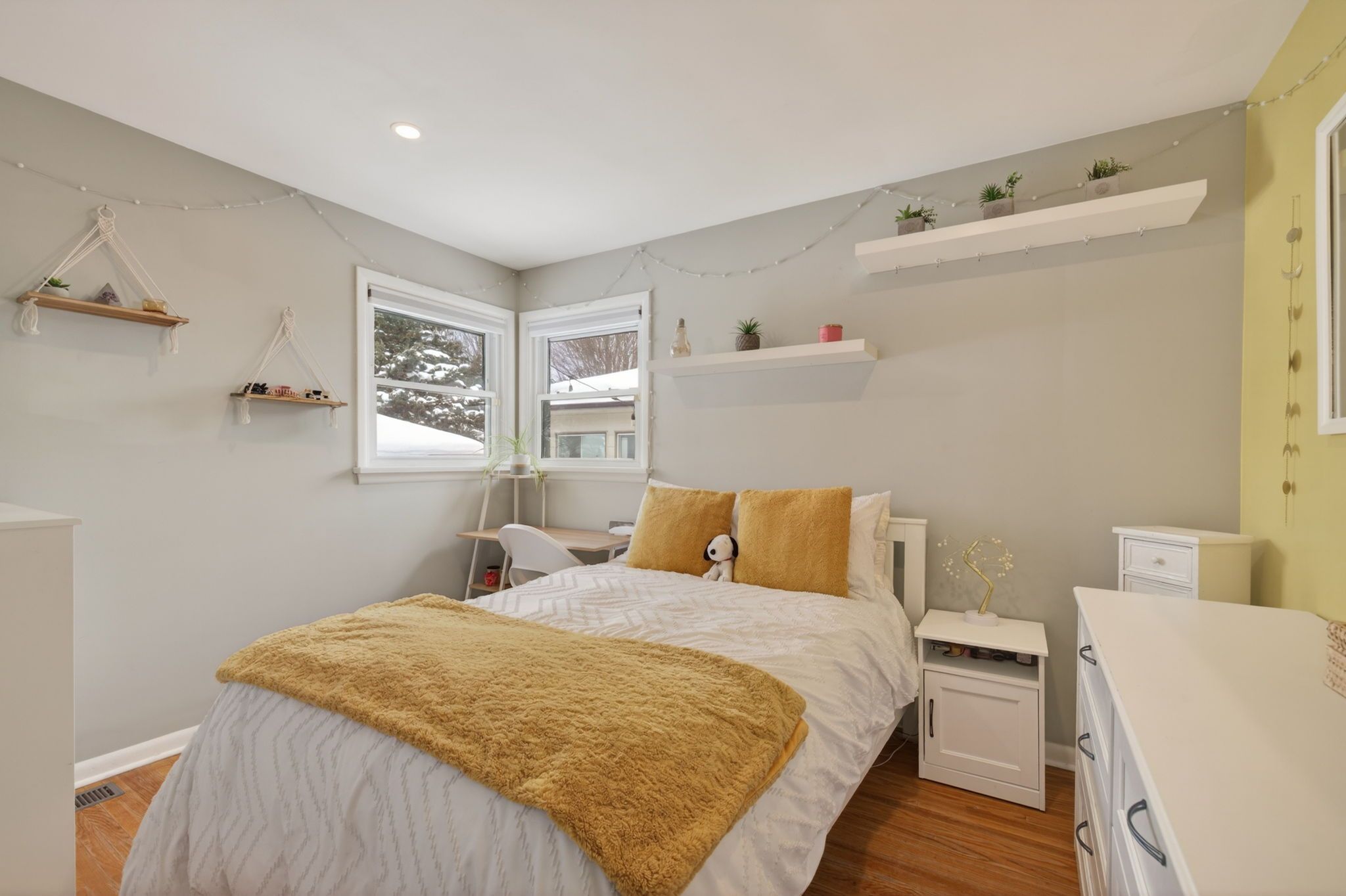 Welcome to this beautifully renovated all brick 3 bed, 2 full bath bungalow in a premium central london location close to downtown, major amenities, transit and easy access to western university and fanshawe college. This stylish mid century modern inspired home offers outstanding curb appeal with black accented windows, soffits and doors, plus a covered front porch that welcomes you inside. The spacious lot measures approximately 47 feet by 188 feet, offering exceptional outdoor space for kids, pets, gardening, future expansion or potential additional residential unit opportunities. Parking is abundant with a three car driveway and a detached single garage, ideal for storage, hobbies or a workshop. The backyard is also equipped with electrical already pre run for a future hot tub, adding extra comfort and lifestyle appeal. Inside, the main level features a functional front mudroom with bench seating and coat hooks that opens into a bright living room highlighted by a gas fireplace with brick surround. Original hardwood flooring flows through the living room and all three main floor bedrooms. The open concept kitchen has been fully renovated with white cabinetry, generous pantry and storage space, stainless steel appliances and a comfortable dining area. Three generously sized bedrooms are complemented by a beautifully updated four piece bathroom featuring subway tile surround and modern black fixtures. The finished lower level offers excellent flexibility with a separate side entrance, high end laminate flooring, oversized windows, a large recreation room with defined bedroom area, an additional four piece bathroom and plenty of storage with laundry facilities. This move in ready bungalow combines timeless character, thoughtful updates and a highly desirable location, making it ideal for families, professionals, investors or those seeking long term value in the heart of the city.