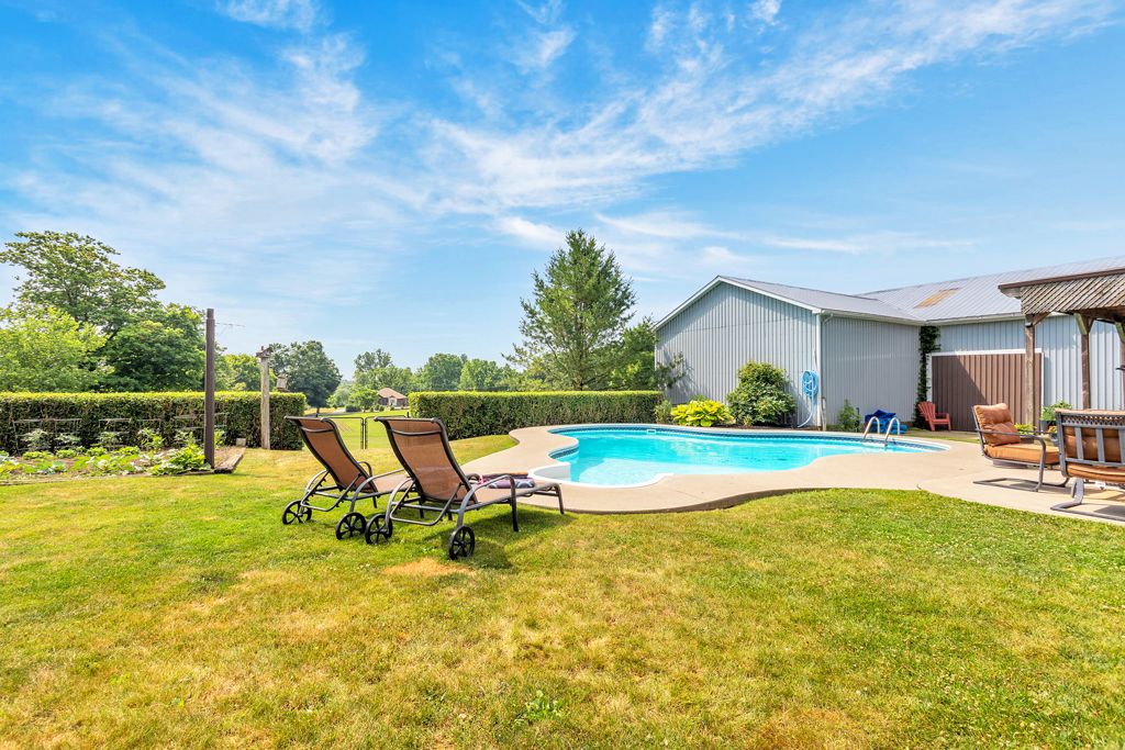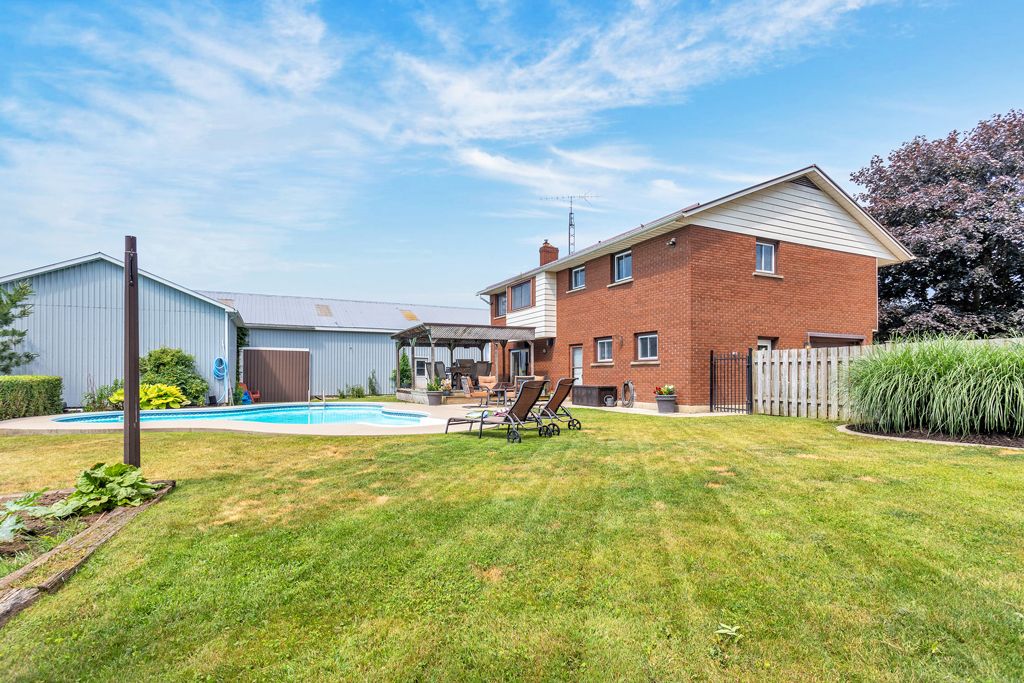 Dream farm property alert! 686 goshen is a rare find. This 4 bed, 2 bath, brick home boasts nearly 38 workable acres, and approximately 10 wooded acres with lush ravine, stream, and trails, as well as a 30x60 shop with multiple bays and a connected office area/in-law suite. The home is a raised bungalow. Upstairs, find 3 beds with ample closets and spacious 4 pc bath. As well, find a neatly organized kitchen, dedicated dining room and cozy family room with large windows. Downstairs, find an additional bedroom, that serves as an ideal office and a rec room with gas fireplace that walks out to rear fenced yard with deck area, gazebo and in-ground pool. Also on the lower level, find dedicated laundry, 2pc bath and a mudroom connecting to a 1. 5 car garage. But wait!!! There's more!!! Next to the home, find a large 30x60 steel sided shop with 100 amps, separate gas meter, concrete floors, 3 bays, 12 ft ceilings and nearly 2500 square ft of storage space. Attached to the shop is a potential office area that is currently being utilized as a 1 bedroom in-law suite. The in-law suite is 850 sq ft with a spacious eat-in kitchen, 3pc bath, large mudroom with laundry and side entry, as well as a living room area with gas fireplace and air conditioning. The workable land is currently rented out and planted with beans by a neighbouring farm. Other highlights: newer pool heater (2023), detached 1 car garage, work shed, party shack at rear of property with firewood and bonfire area, foundation waterproofing (23), 200 amps, steel roof on home and shop, appliances stay and the home has a second staircase. This home and farm is only minutes from tillsonburg and a stone's throw from highway 3. This property is a must-see and farms like this, with this proximity to town do not come along that often.