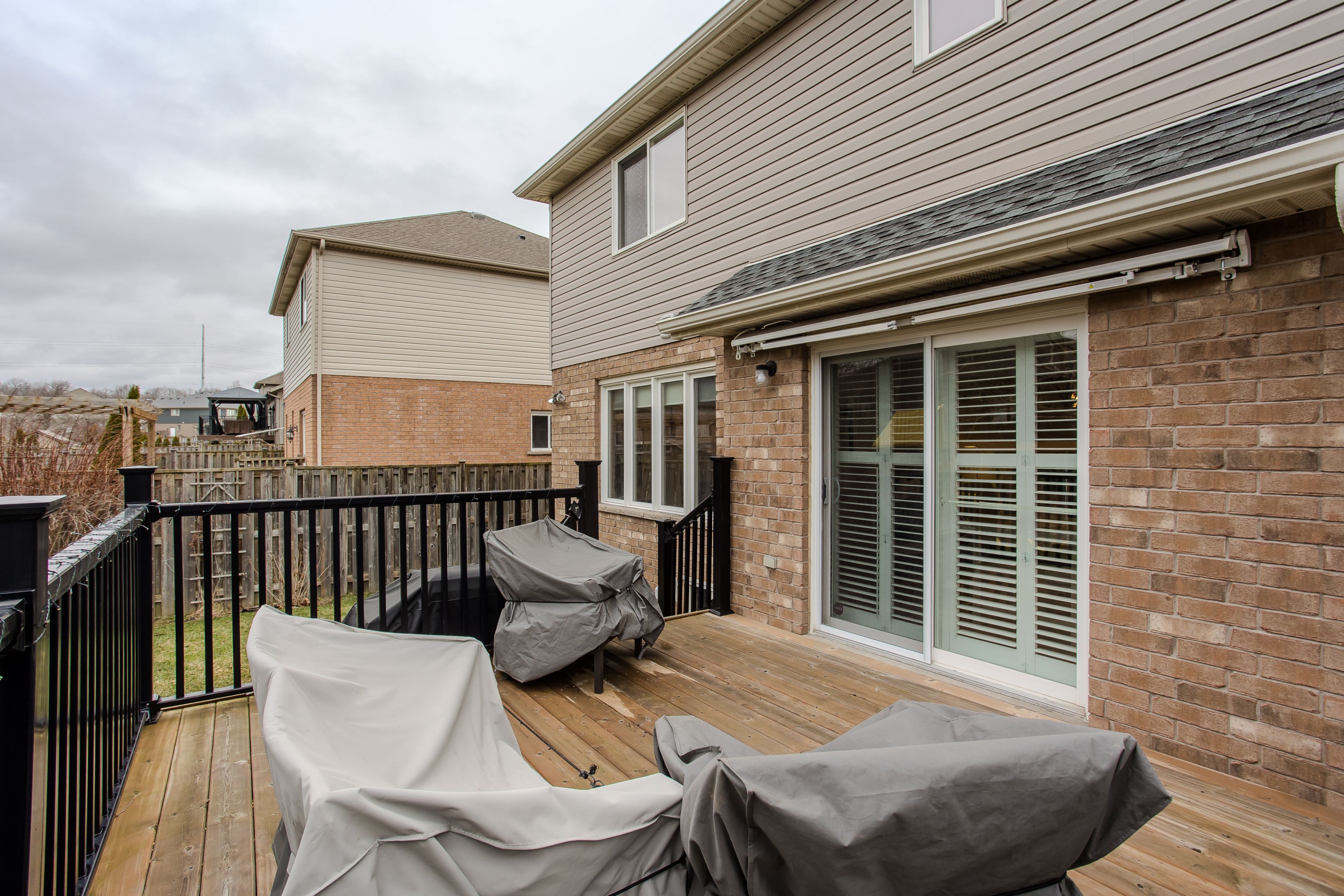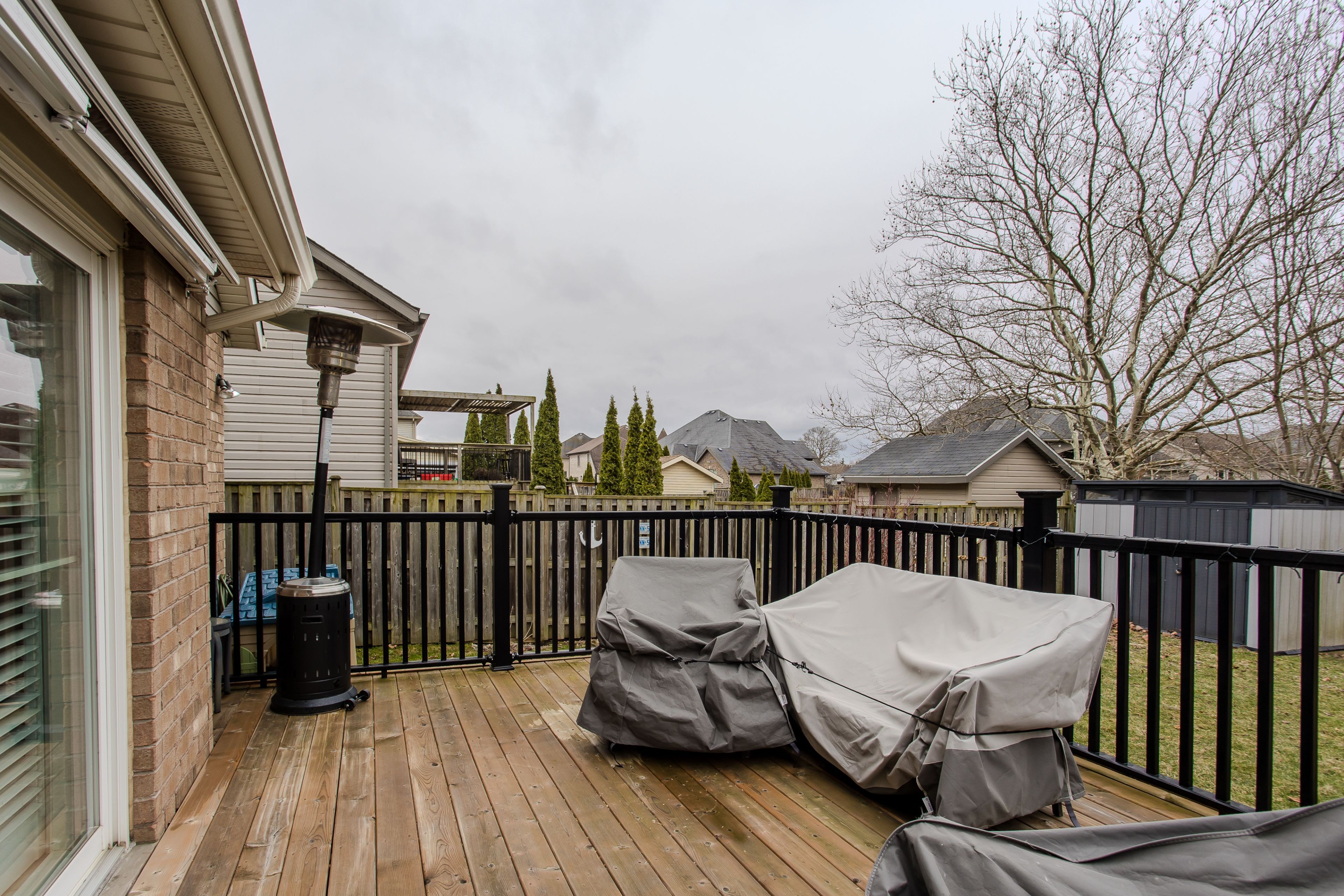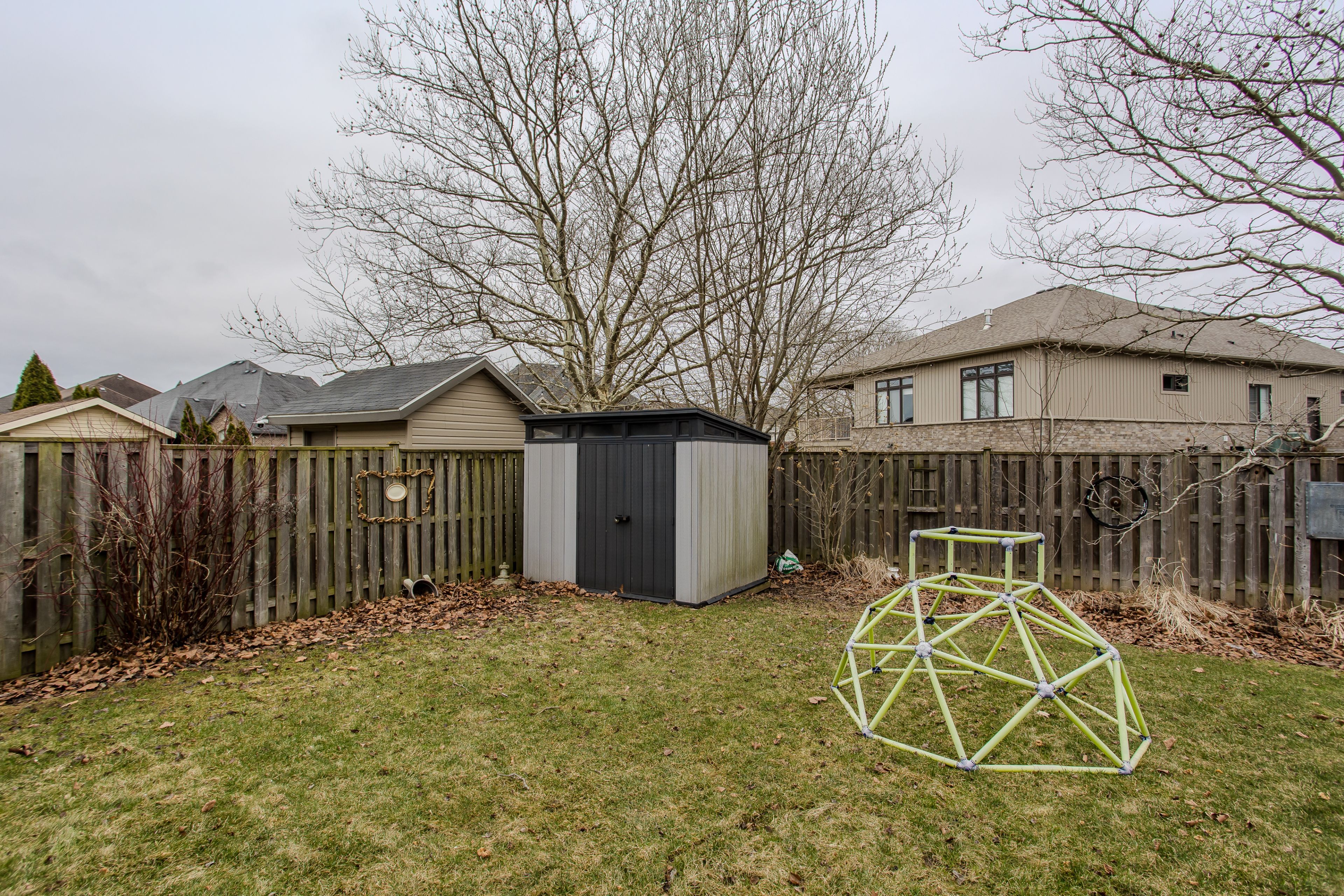• Fully fenced backyard with a wooden deck and plenty of green space.