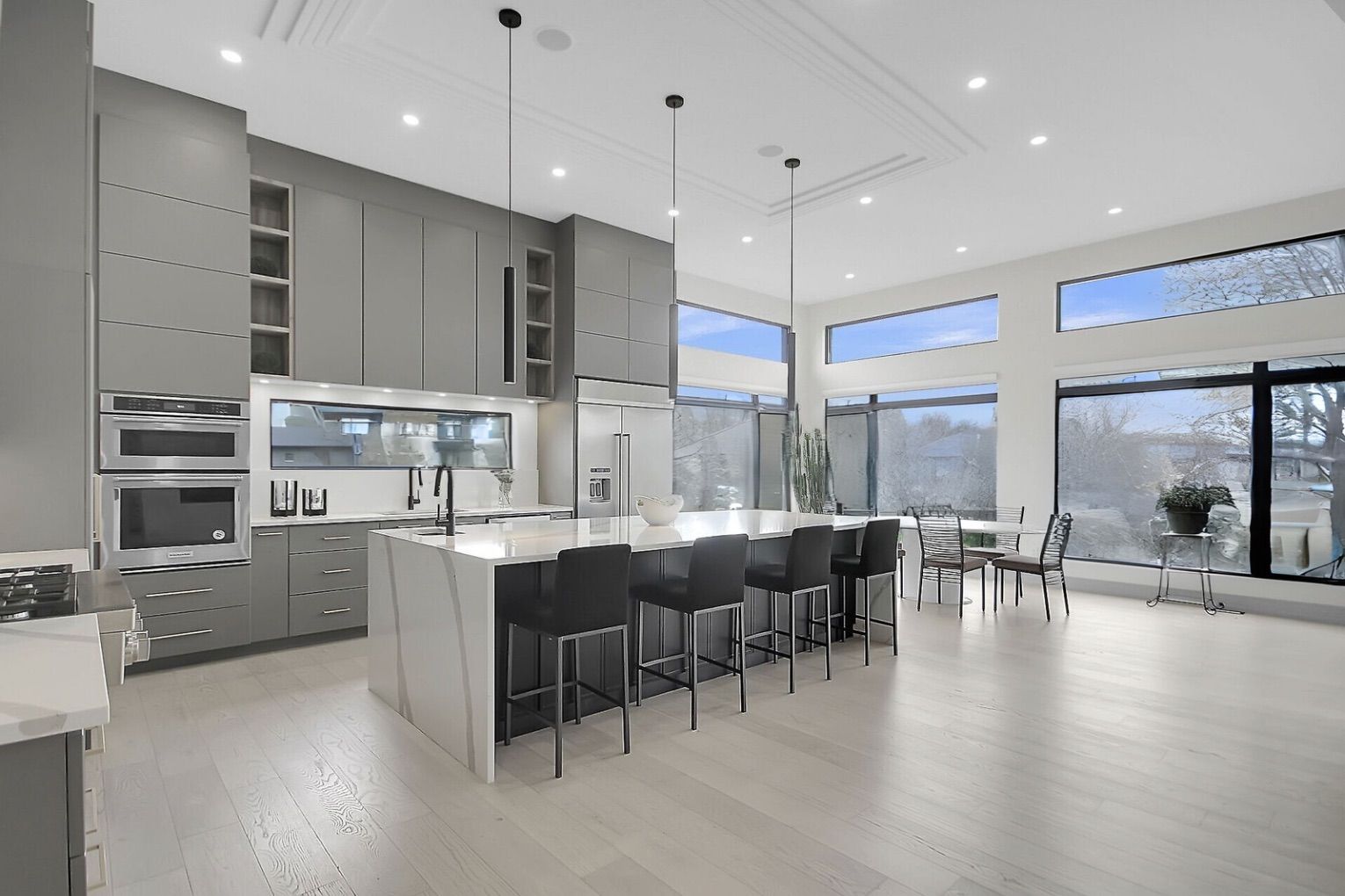 • Chef-inspired kitchen featuring a stunning quartz island and breakfast nook.