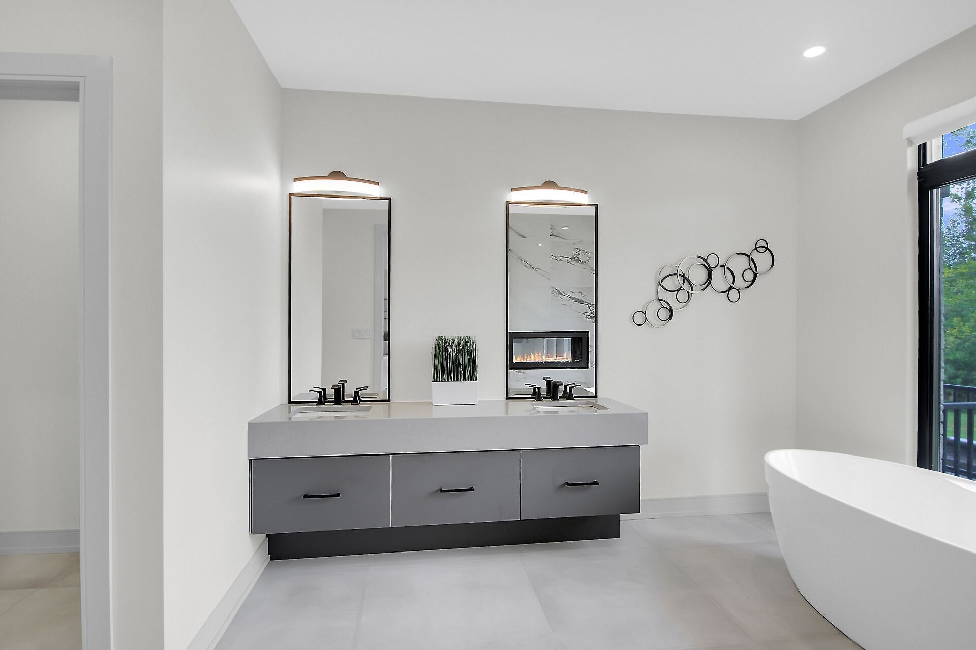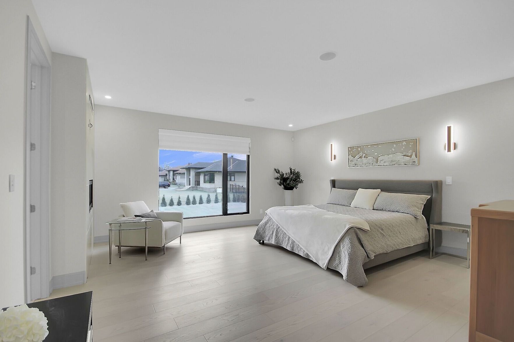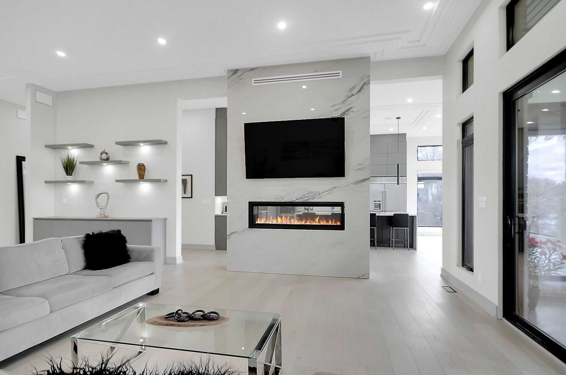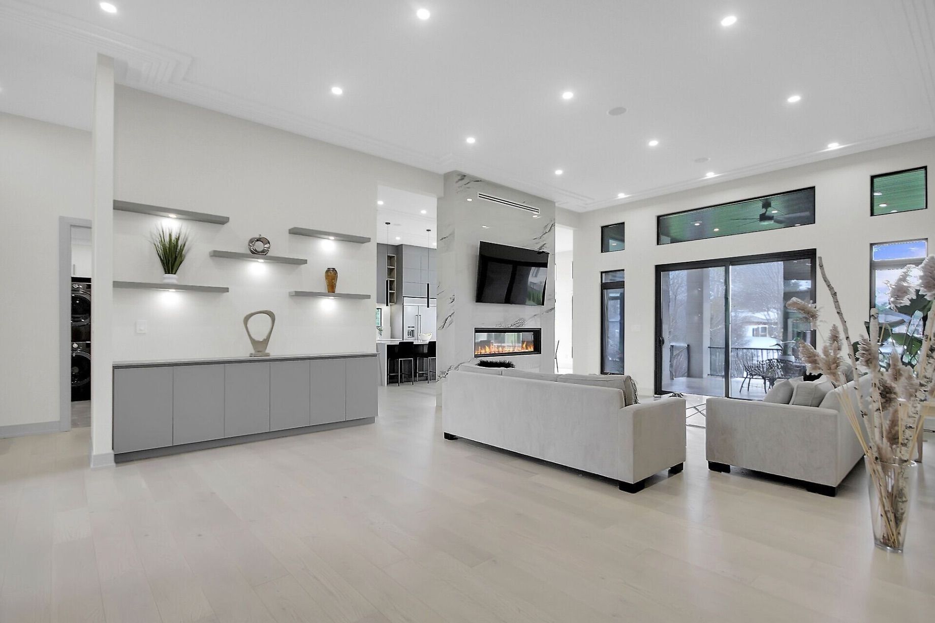 • Open-concept layout with oversized windows and elegant oak hardwood flooring.