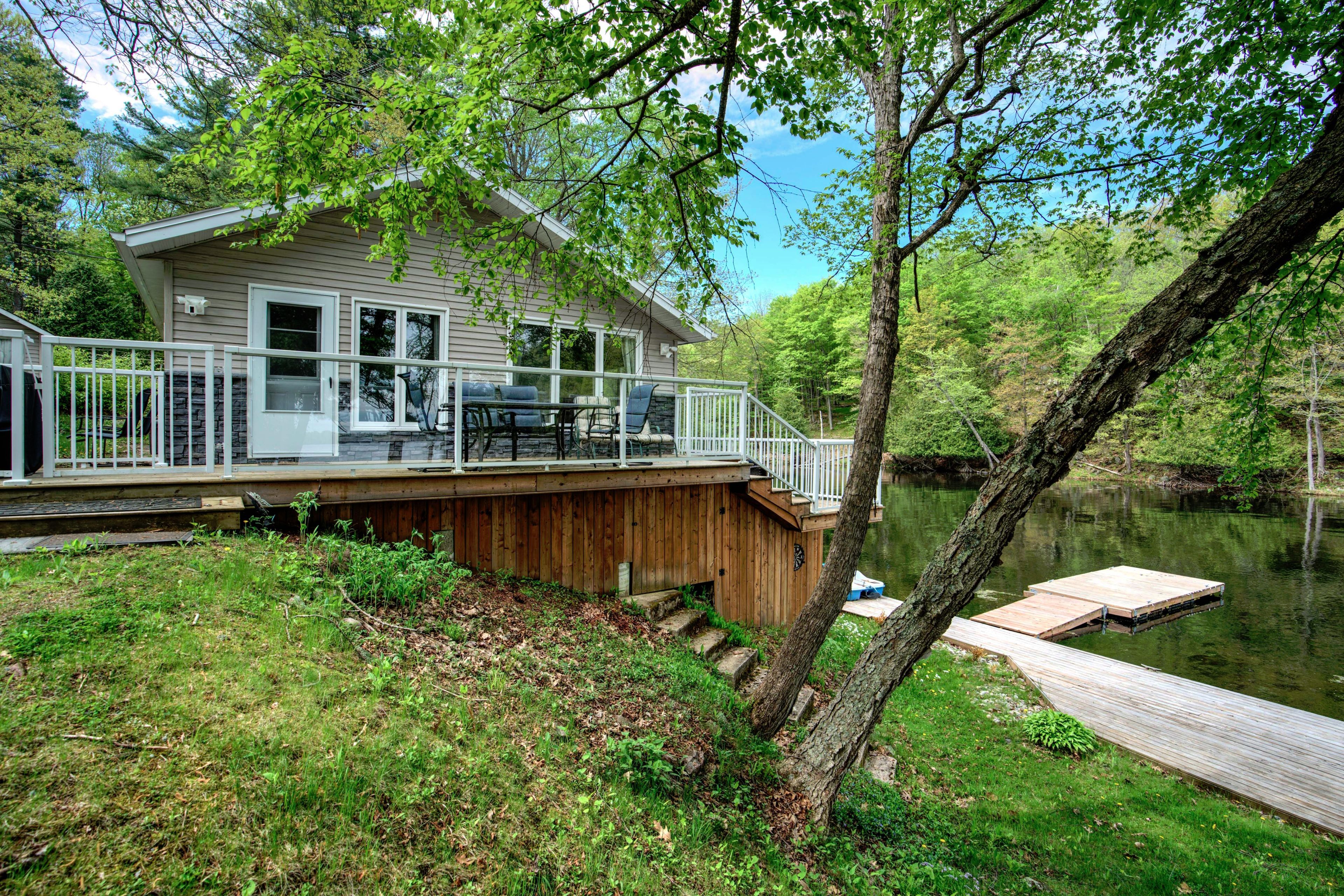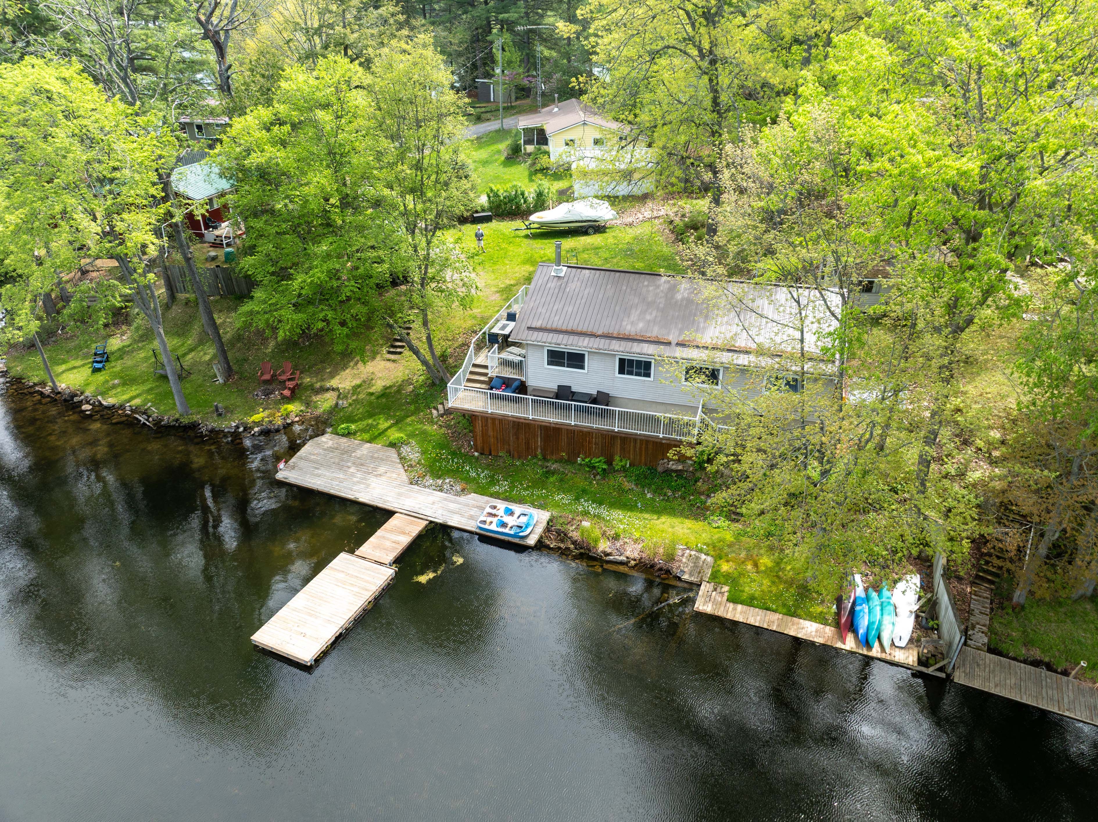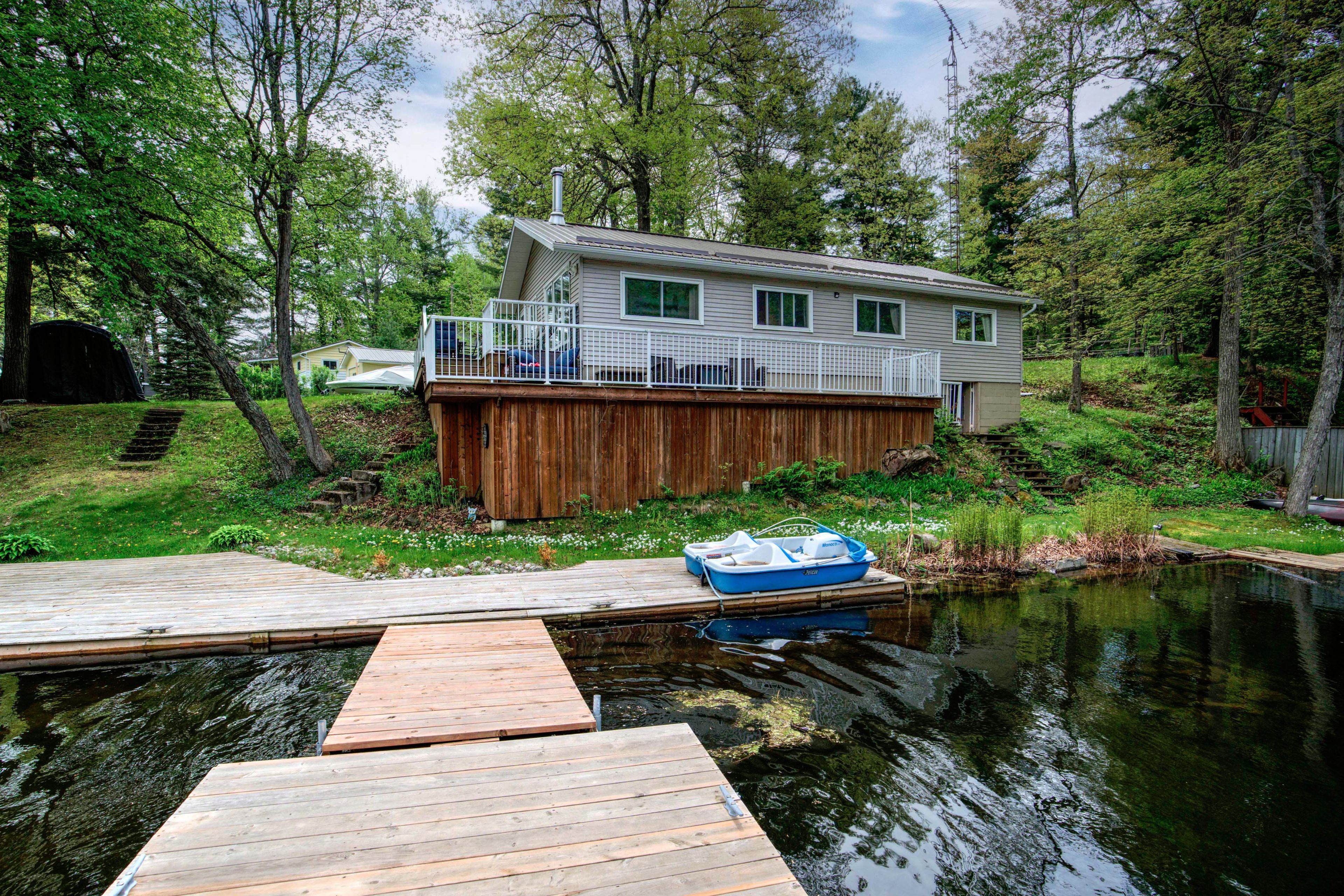 Waterfront home or cottage on beautiful buck lake! The property is located in a quiet bay that faces a large open part of the lake. The home has been beautifully upgraded with a steel roof, large 2-tiered deck, new docks plus a kitchen which sits on a concrete block foundation with exterior access to the crawl space for storage and utility. The floor plan consists of an open concept design with 3 bedrooms, a full 4-pc bathroom, large kitchen with attached dining area plus a cozy living room that overlooks the large deck and lake. The house is serviced with a lake water system with a heated waterline and uv system as well as a full septic system. A forced air propane furnace along with an air-tight wood-stove provide ample heat for the home. A storage shed/bunkie sits behind the house and there are two dock areas for your boats or water toys. Access to the water is easy with a few steps down to the water's edge. Buck lake is a deep, canadian shield lake with beautiful rock formations, many islands, bays and towering majestic pine trees along the shoreline. The lake is home to bass, pike, lake trout as well as many other types of wildlife. Fantastic location on a gorgeous lake and easy year-round access just north of kingston.