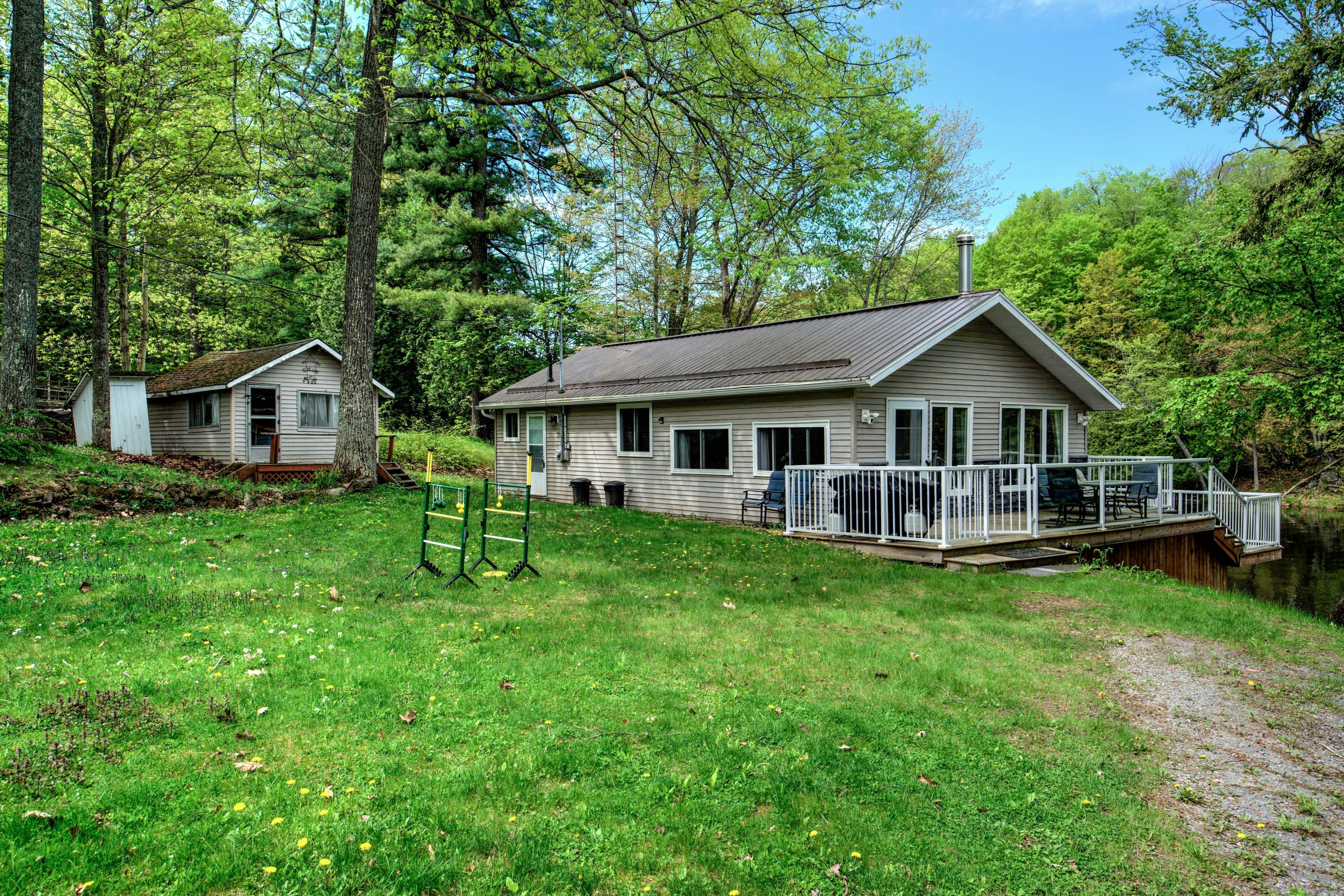 • Upgraded home with a steel roof and large two-tiered deck.