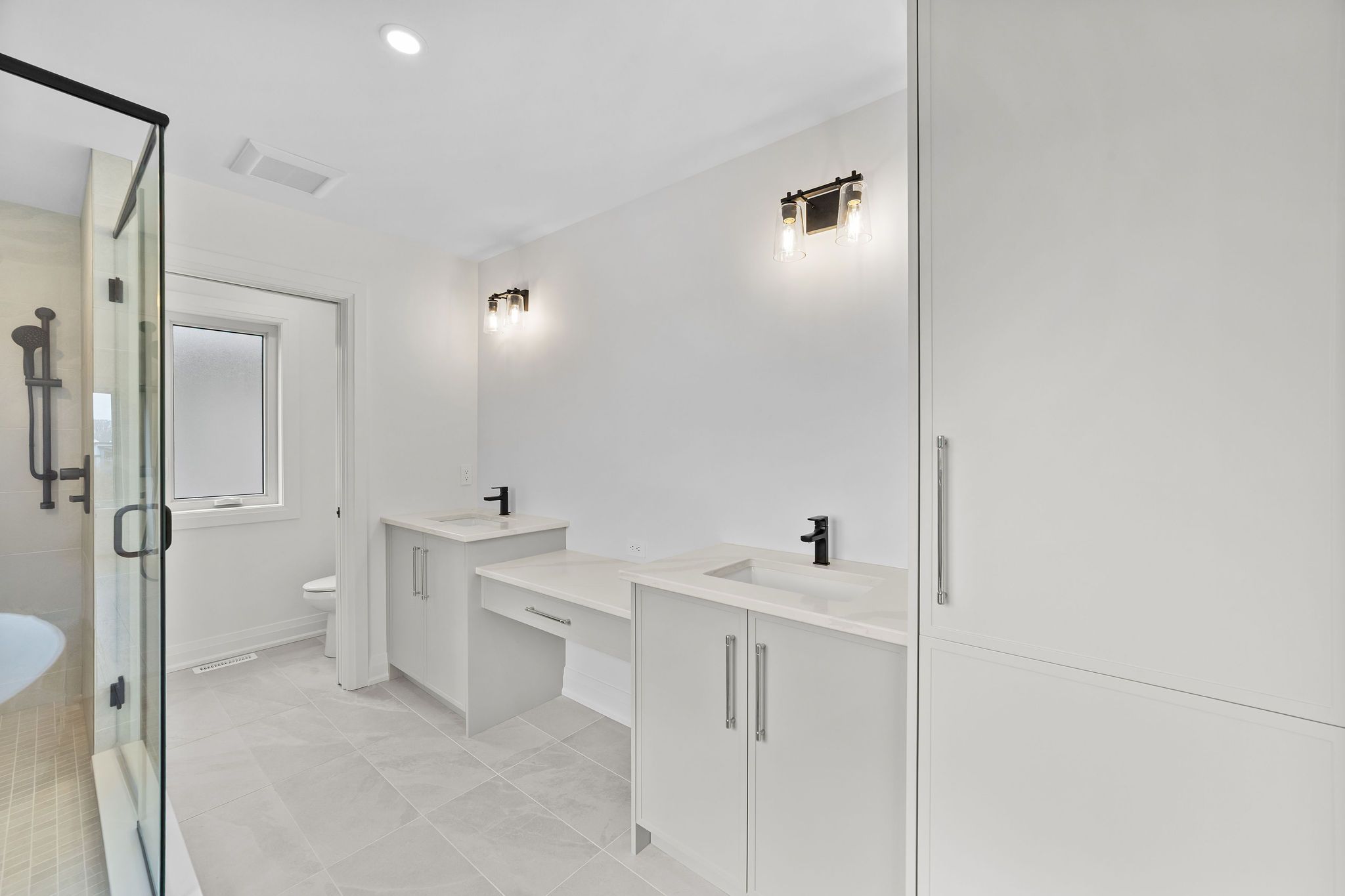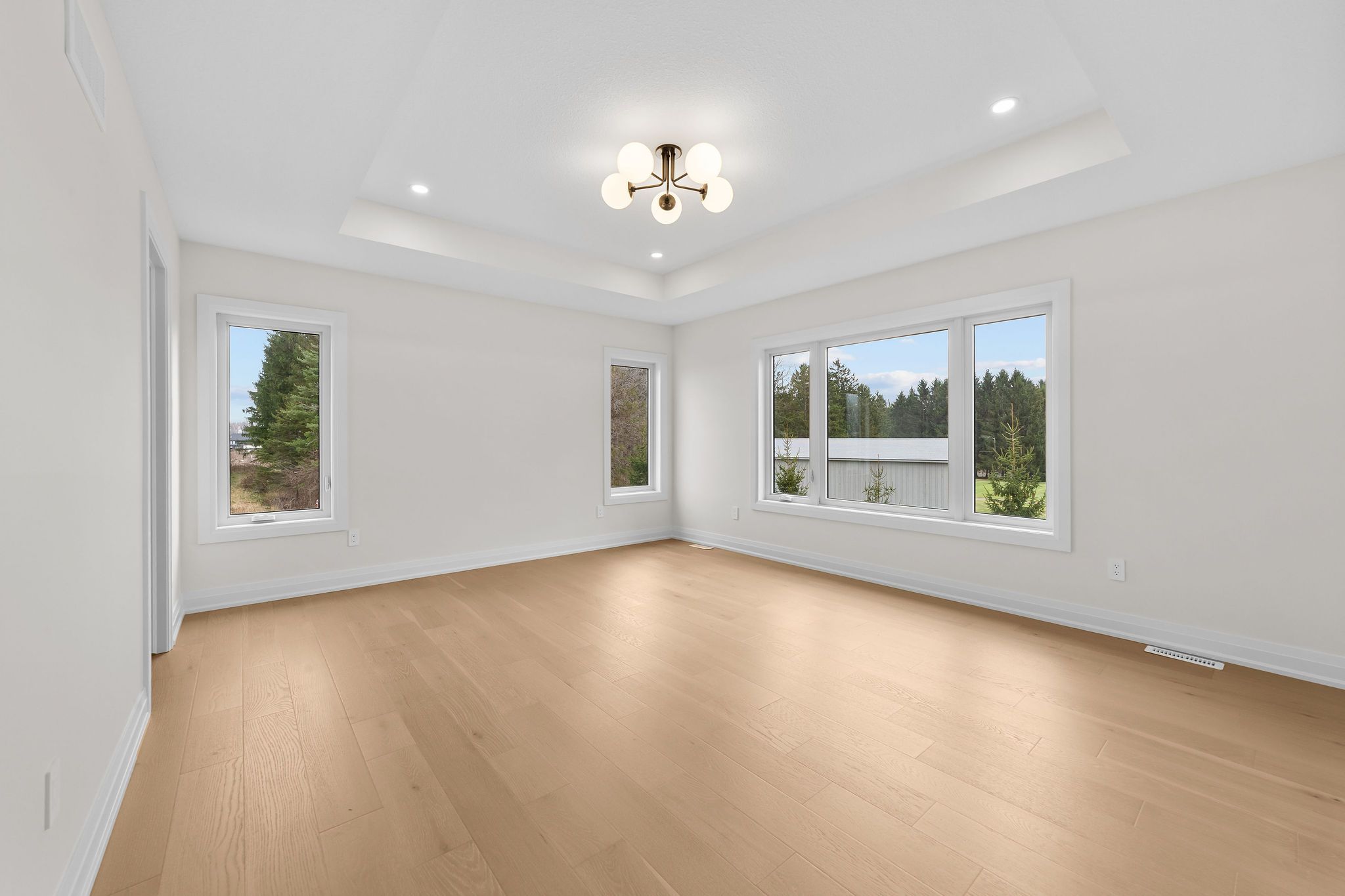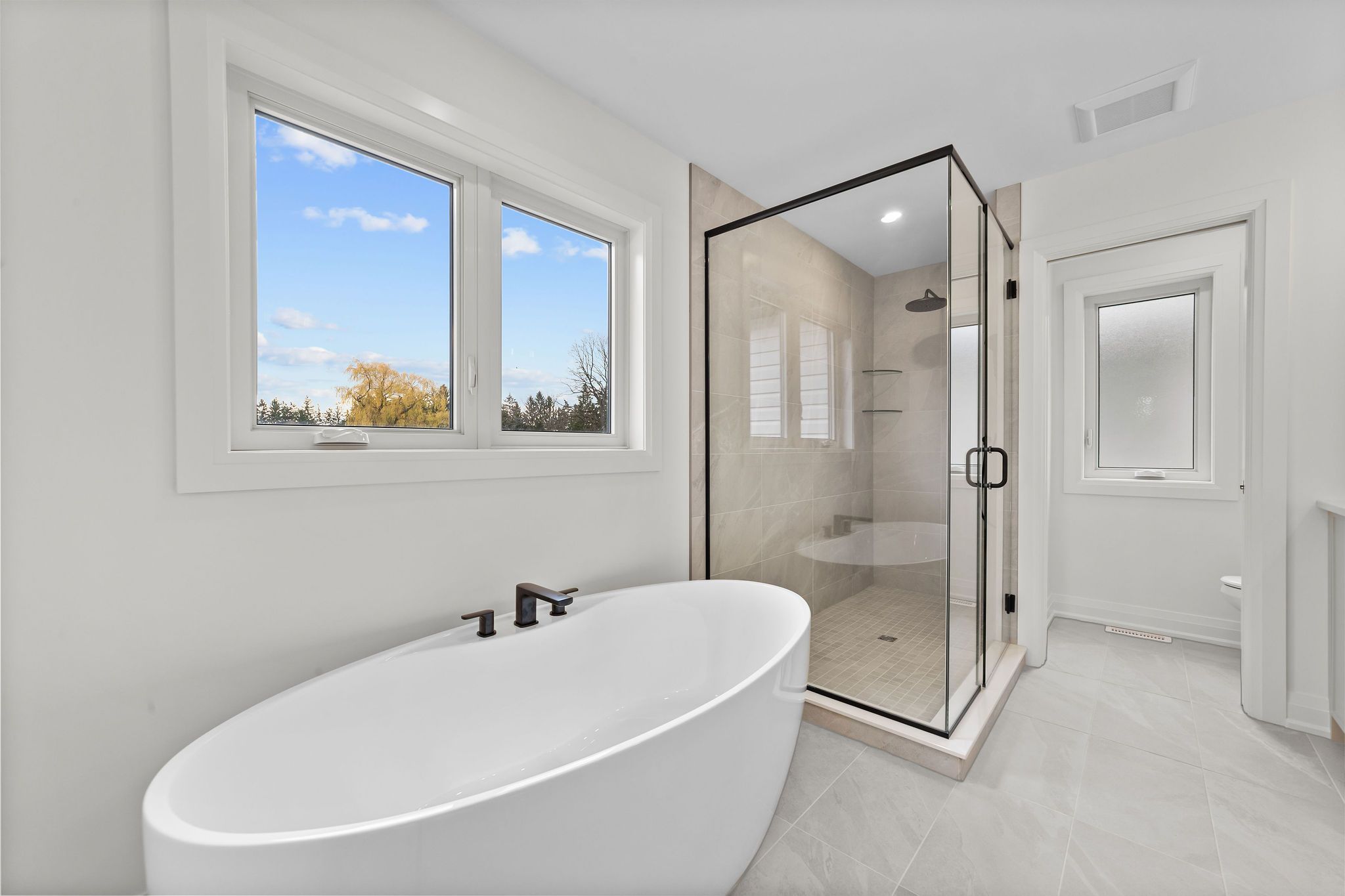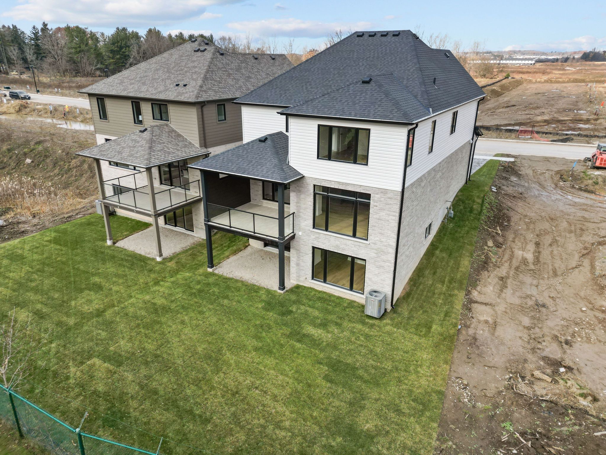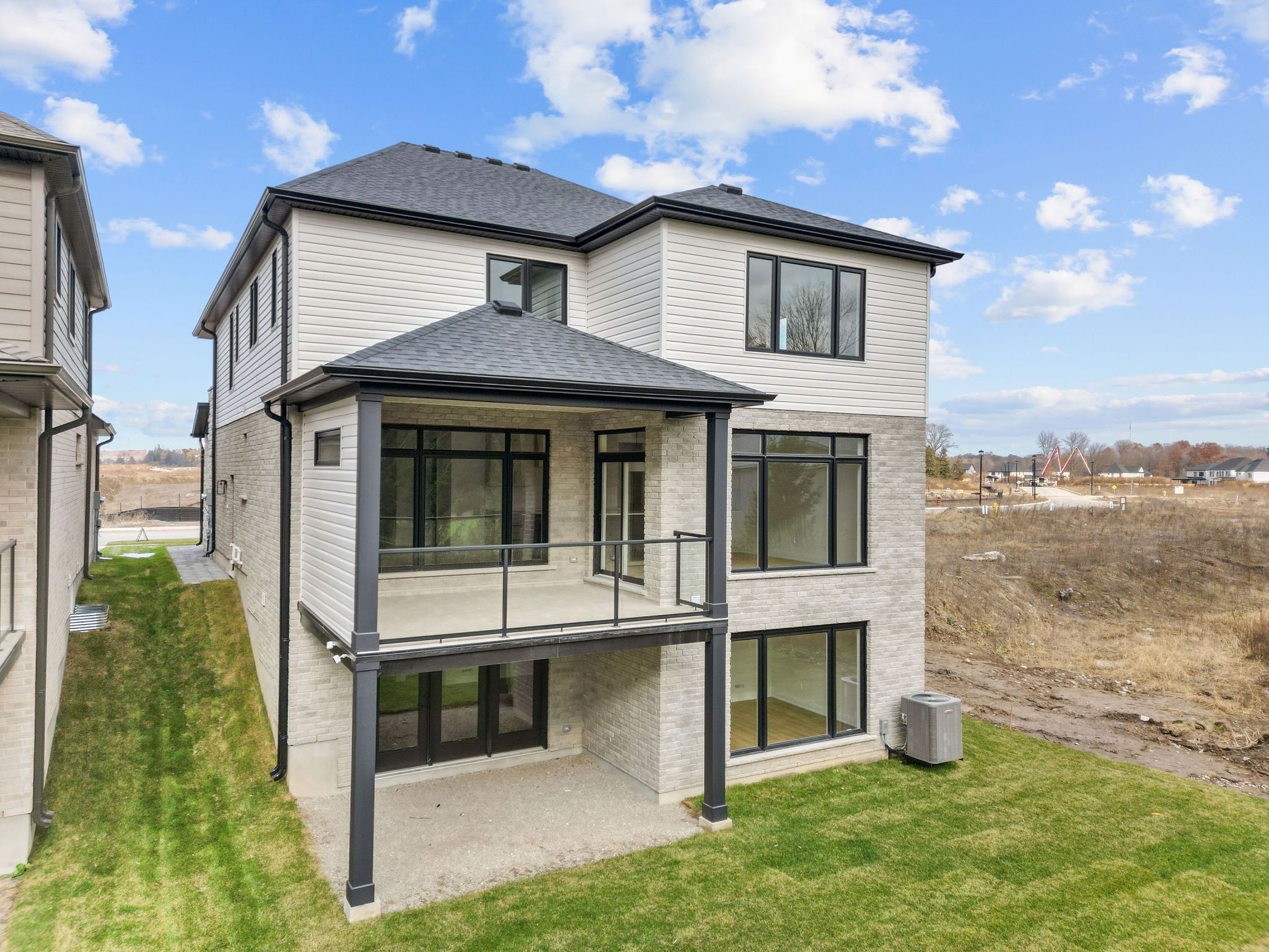 This beautifully finished home on a walk-out lot offers over 3,600 square feet of elegant living space with 4+1 bedrooms and 4. 5 bathrooms, creating an ideal setting for multigenerational or family living. The family room is anchored by a warm electric fireplace, complemented by wall paneling for added character, and the primary bedroom features a striking stepped ceiling that adds architectural depth. Rich hardwood flooring extends across the second level and into the primary suite, while heated floors in the primary ensuite and basement bathroom provide year-round comfort throughout the home. The finished walk-out basement offers a thoughtful blend of openness and function, with multiple zones that work equally well for a home theatre, family gatherings, or a play area. With direct access to the backyard and a convenient kitchenette, the space is well suited for extended family or a potential in-law suite. Outside, the covered rear deck spans approximately 14' x 12' and features a privacy wall and weatherdek waterproof membrane, creating an inviting and private outdoor area perfect for relaxing or entertaining. The home's exterior makes a strong impression with an arriscraft stone and brick front paired with james hardie siding, along with vinyl at the sides and rear for durability. Constructed by johnstone homes, a trusted builder with more than 35 years of experience, this property includes over $100,000 in premium upgrades that showcase craftsmanship in every detail. With quick access to highways 401 and 402 and a location minutes from more than 14 parks, 39 recreational facilities, and a variety of schools, this home offers an exceptional blend of small-town charm and big-city convenience in a welcoming neighbourhood.