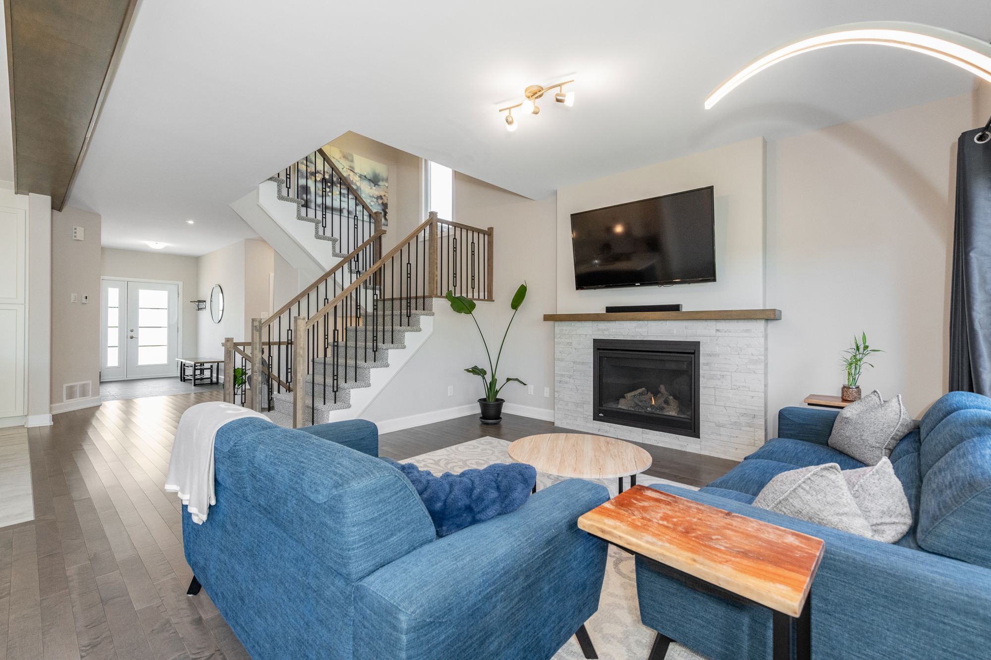 Absolutely stunning, meticulously maintained 4 bed, 3 bath + den vienna ii model on a premium oversized lot lined with mature trees offering a serene setting. Soaring 9ft ceilings, wall rounded corners, neutral tones, hardwood, tile & main floor den grace this open floorplan. Gourmet kitchen is equipped with extended height cabinetry, quartz countertops, stainless steel appliances, backsplash, island with breakfast bar & walk in pantry. Adjacent to the kitchen you will find dining and living rooms flooded with natural light, a stately fireplace with tile surround and picturesque views of the tree lined lot. Eye catching staircase open to above features decorative iron spindles for an added touch of elegance. The second floor lends itself to a generous size primary bedroom with a huge walk-in closet & 4 pc ensuite bath boasting a sliding barn door and exquisite tile work. 3 more great size bedrooms and a full bath will also be found on the 2nd floor complimented by berber carpeting and tile. Basement is wide open, has a bathroom rough in and awaits your vision. Window on the left side has been upgraded to a larger size to accommodate a bedroom or simply allow more natural light to enter. Oversize yard is perfect for bbq season, entertaining friends and family. Lots of space here allows for so many possibilities! Garage is ev plug-in ready.