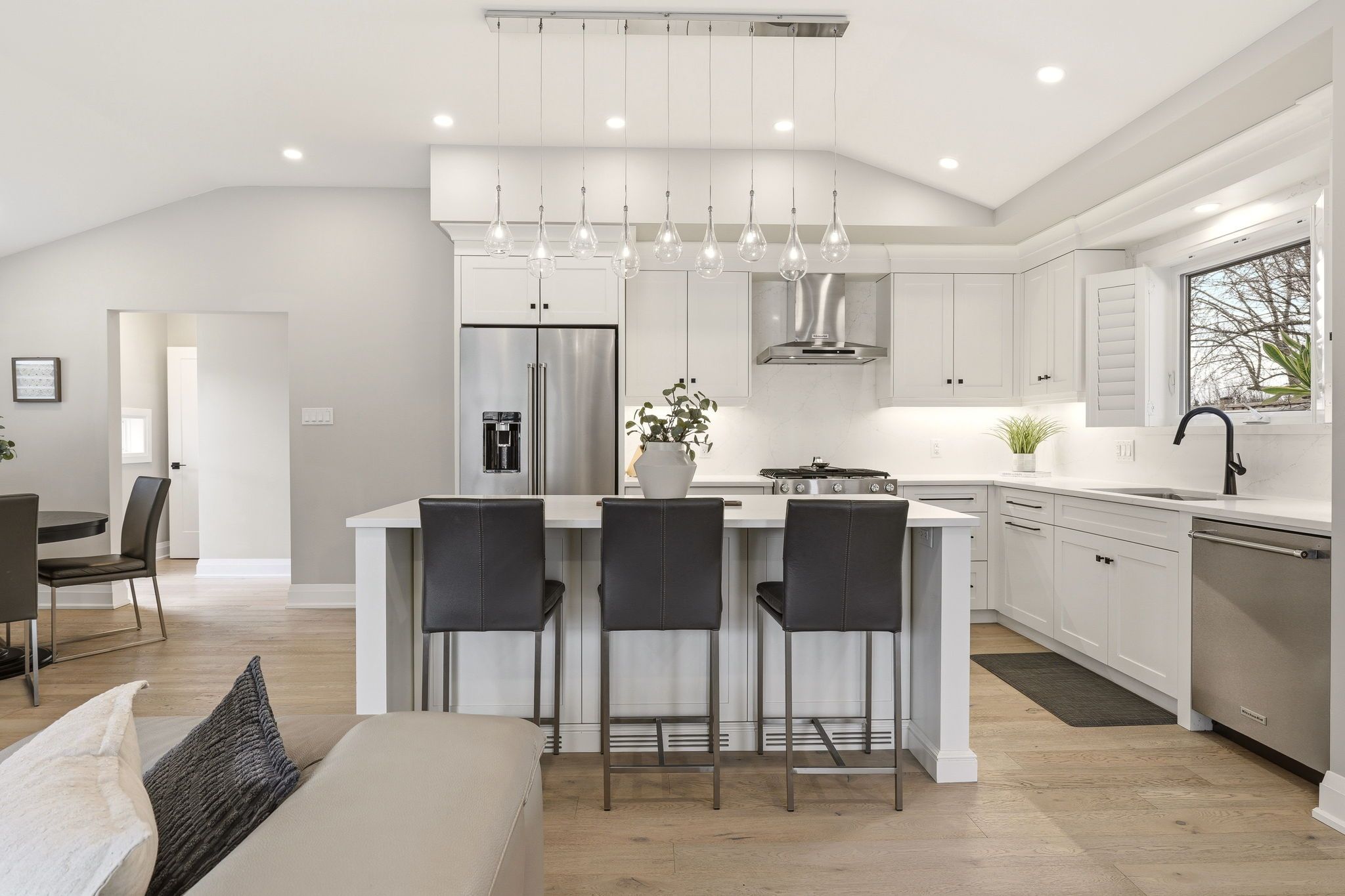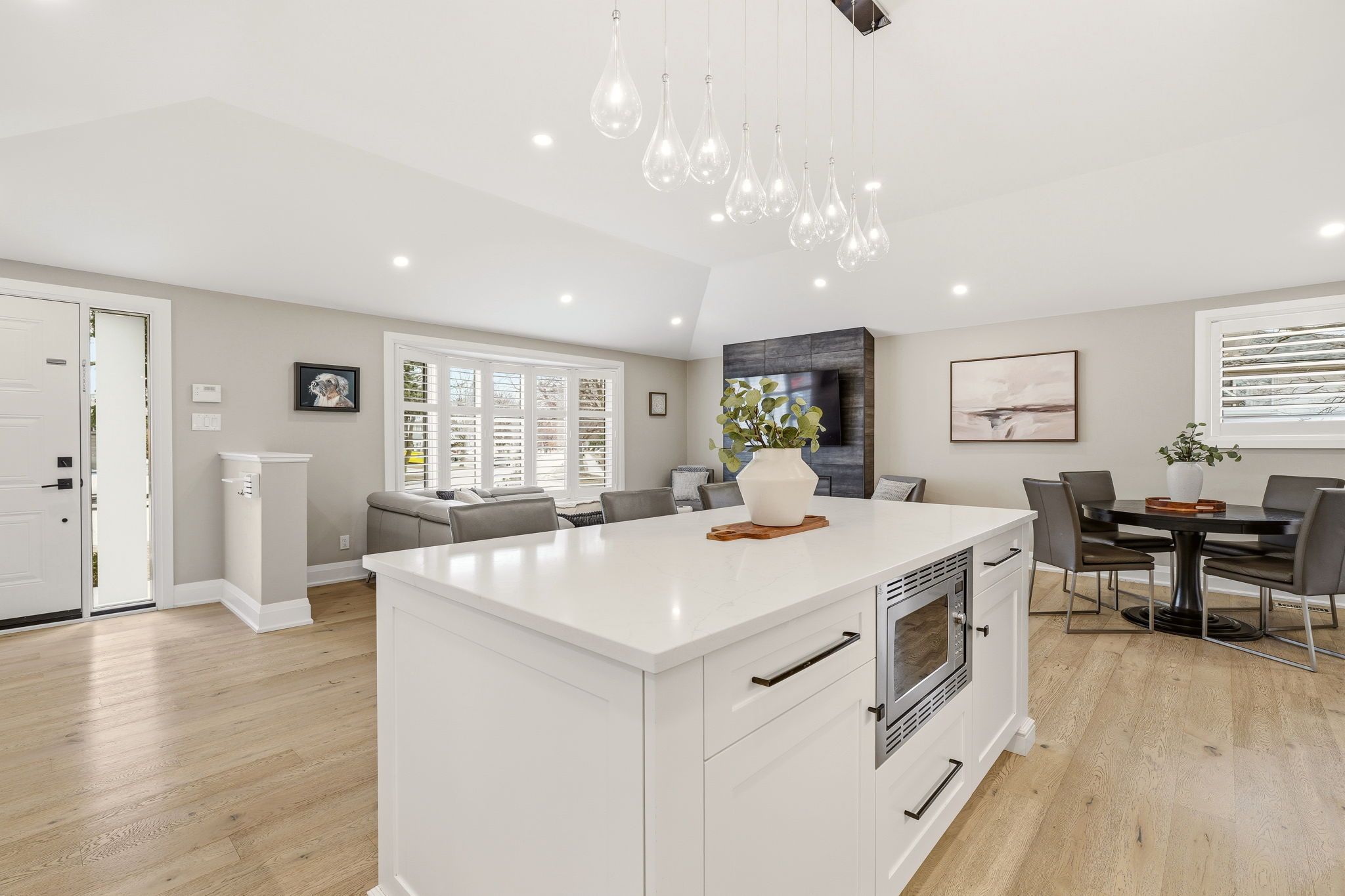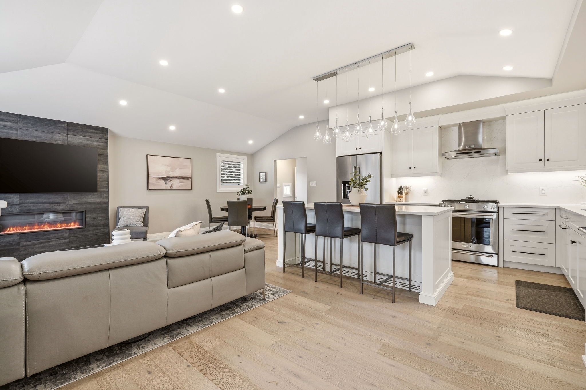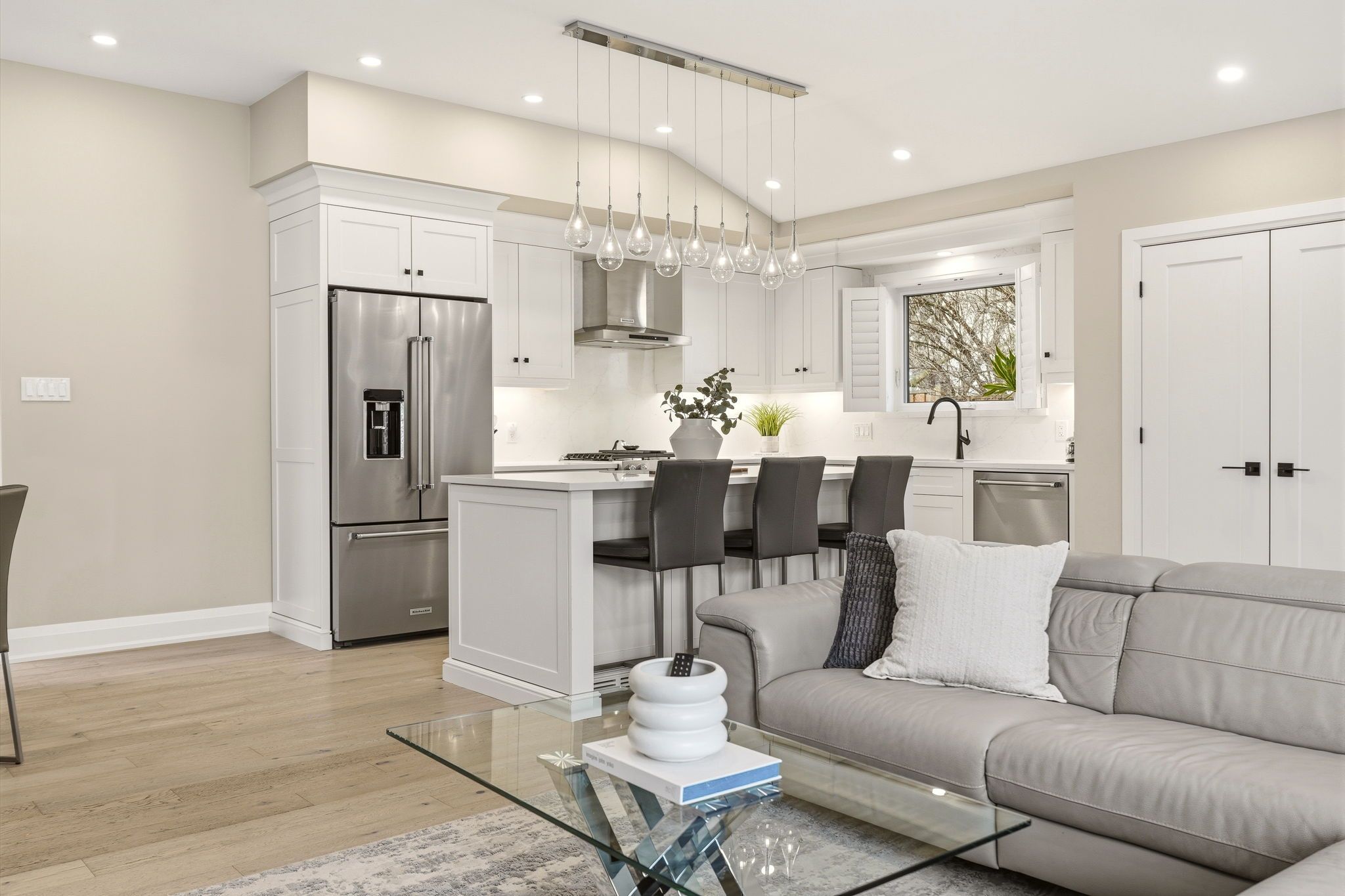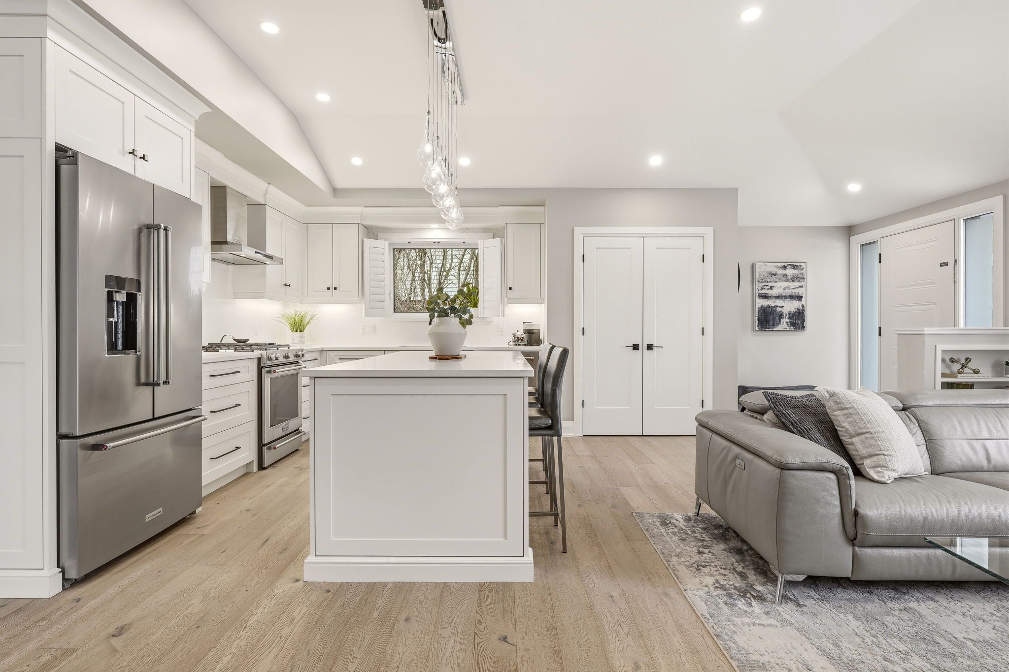 • Renovated main floor with vaulted ceilings and a chef's kitchen.