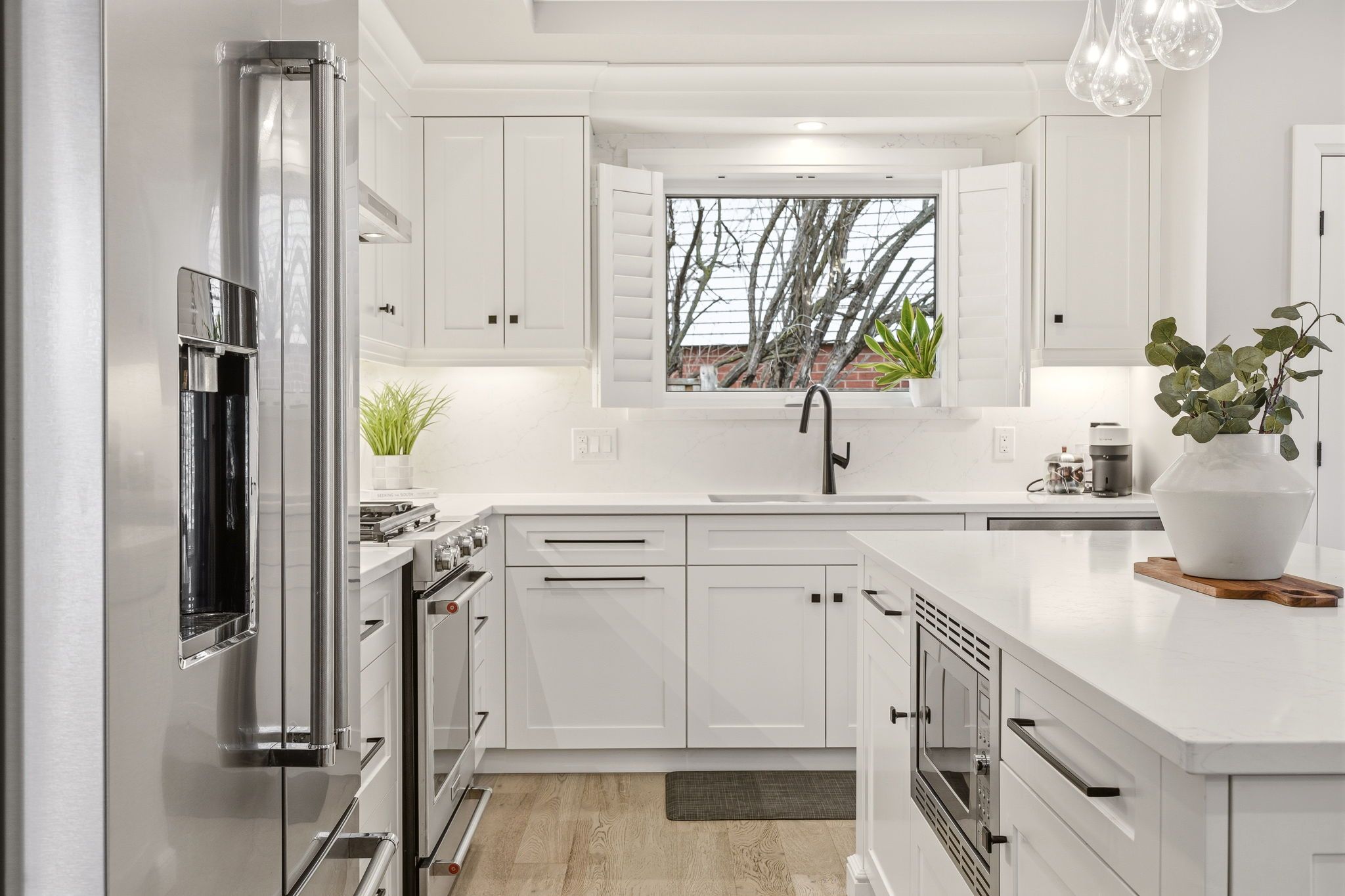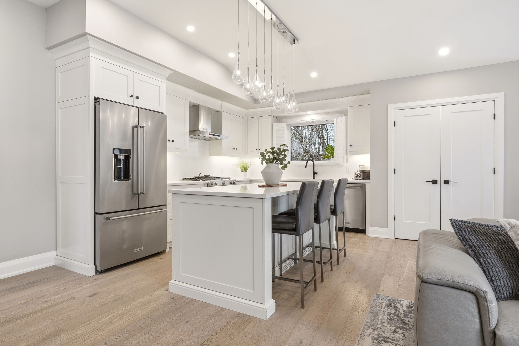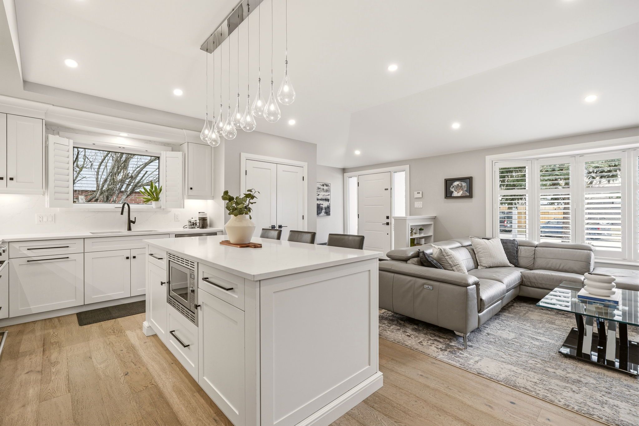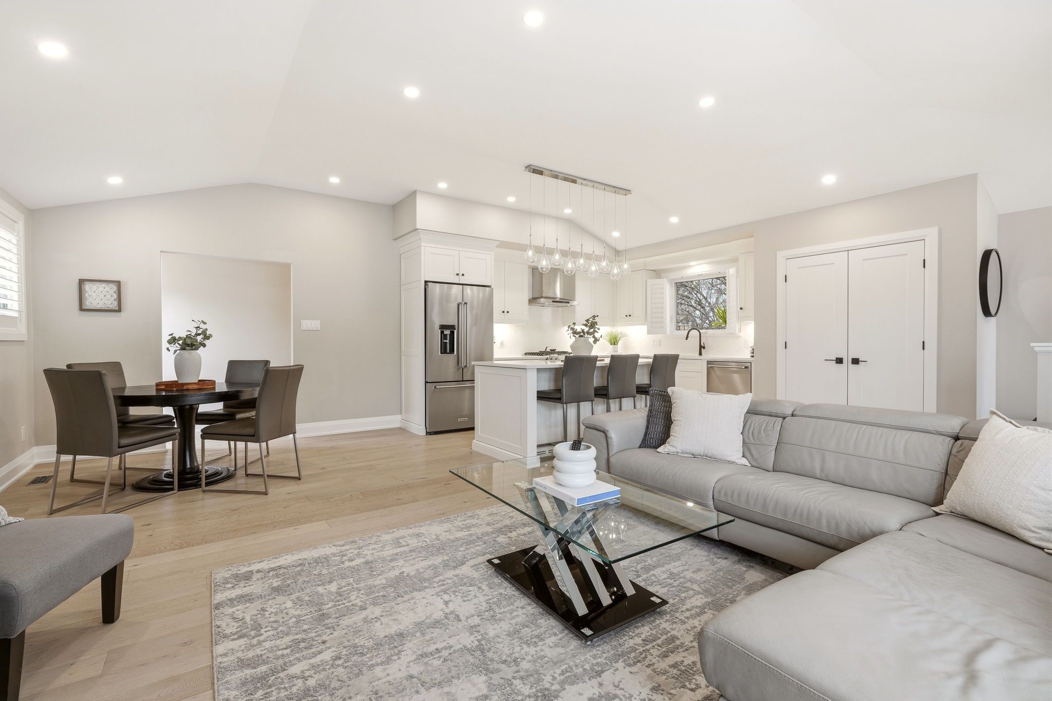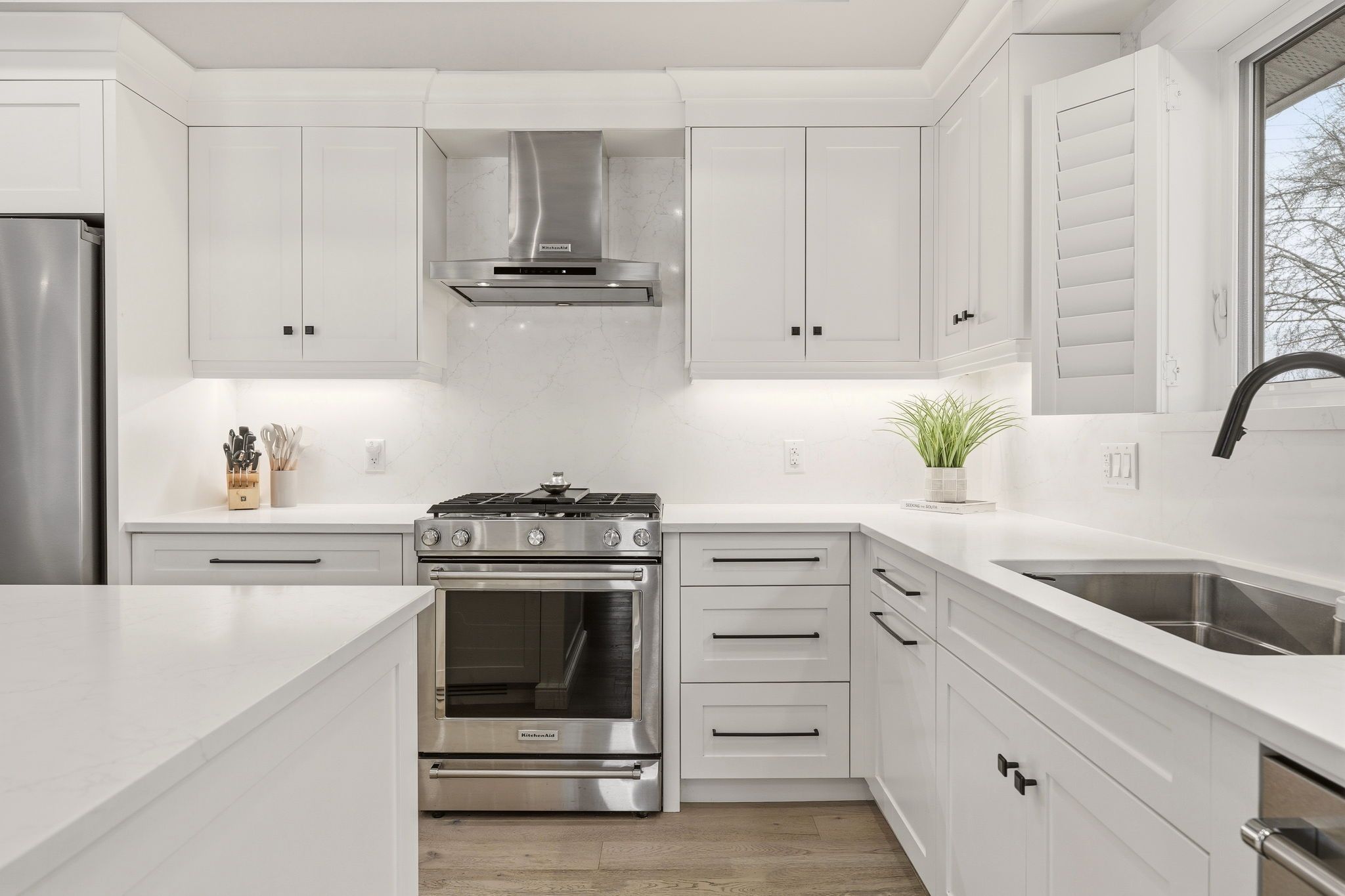 • Renovated main floor with vaulted ceilings and a chef's kitchen.