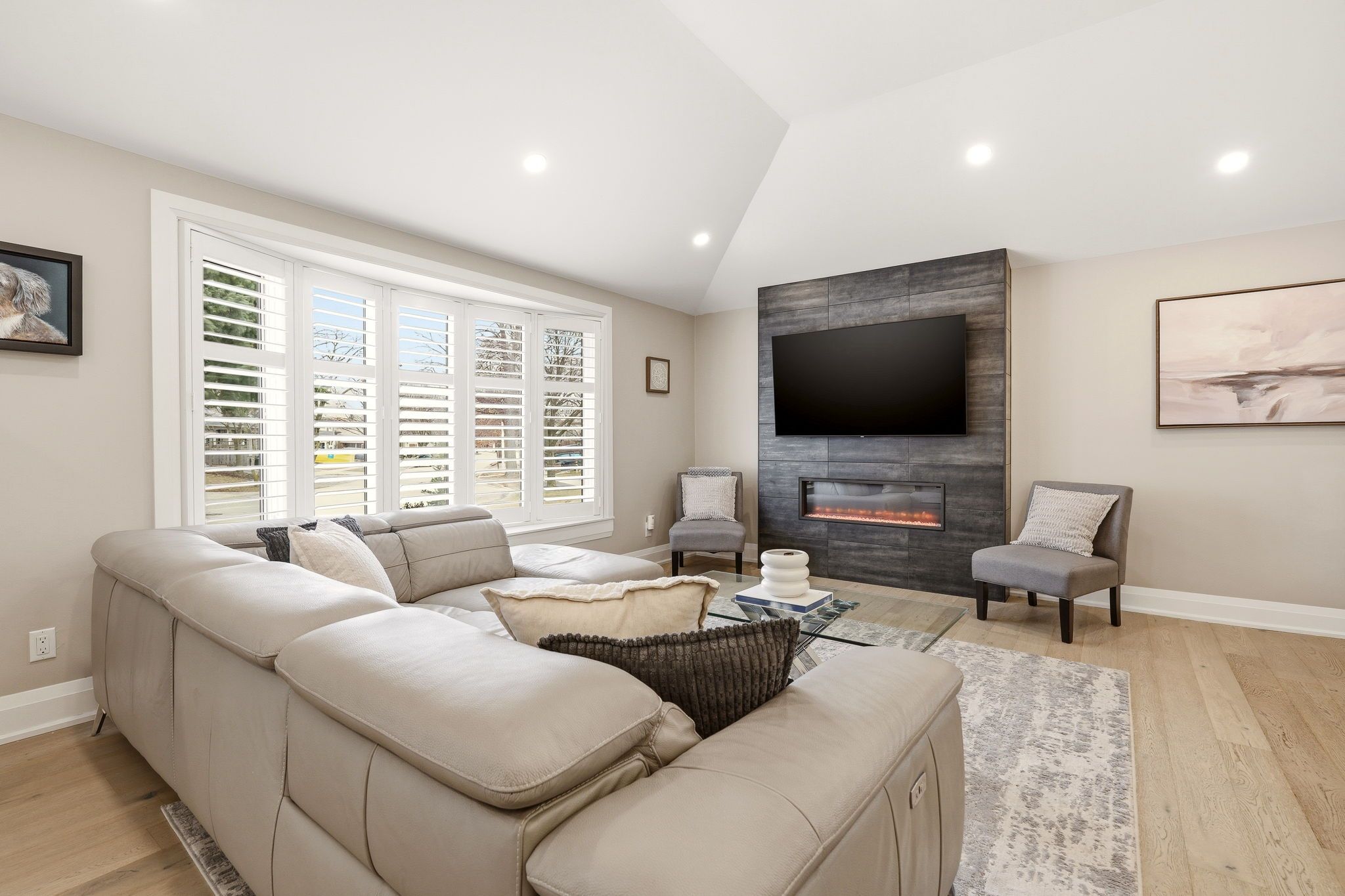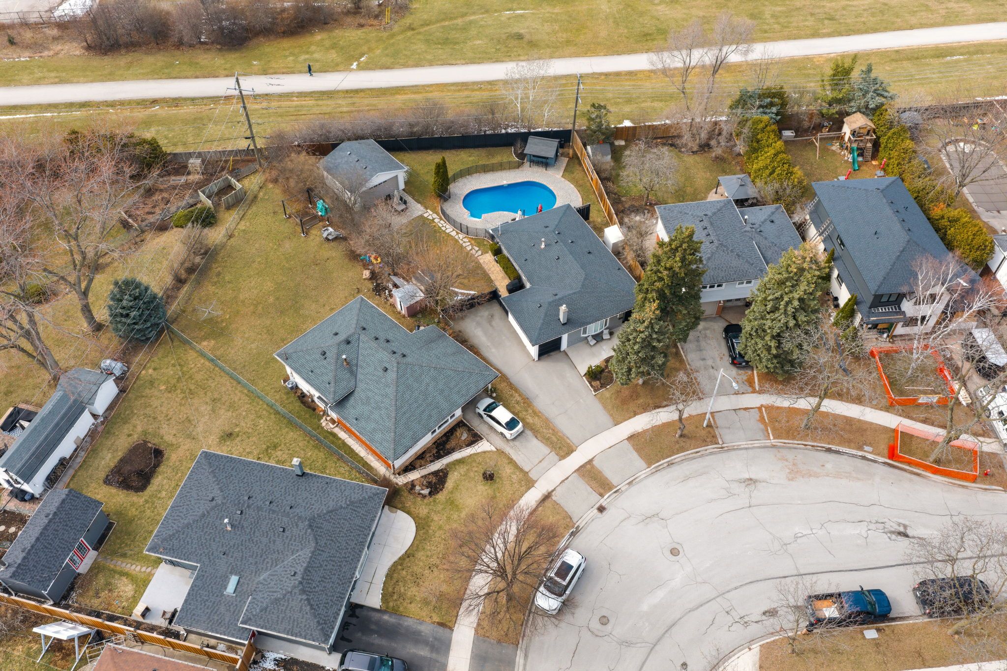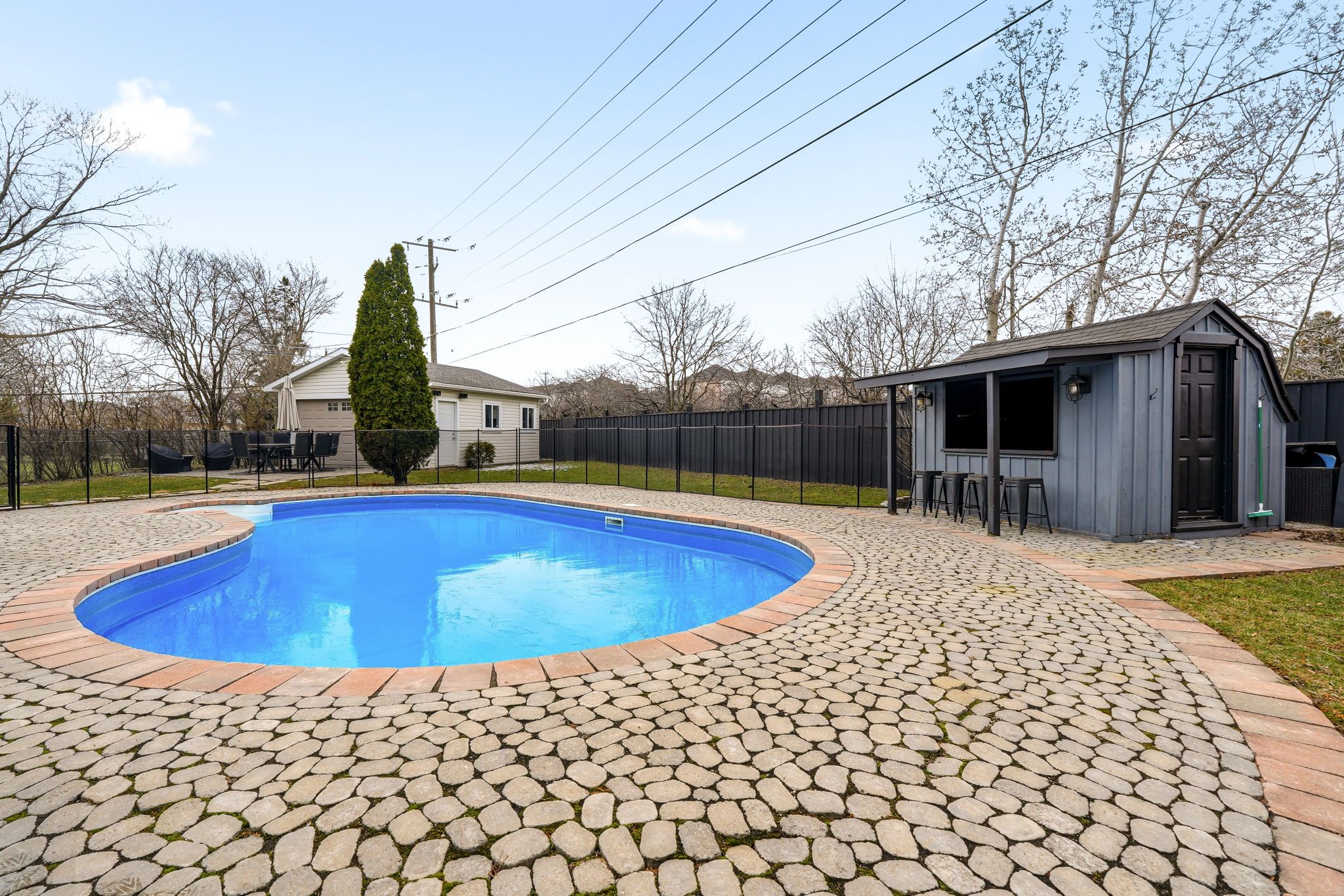 Sophisticated bungalow living in south burlington! Welcome to 688 mullin way. Beautifully renovated main floor with vaulted ceilings, a chef's kitchen, an oversized island and all new doors/trim. Main bath is a spa retreat with heated floors and designer finishes. The lower level offers a seamless extension of the home, featuring a cozy recreation room with a gas fireplace, additional bedroom, and a full bath-perfect for guests ora growing family. The real magic, is in the backyard. Oversized pie lot with a heated in-ground salt-water pool (21' pump, 22' new heater/salt conversion, 23' new liner) all backing onto sherwoood park. The detached double-car garage is a blank canvas. Whether you envision a high-tech golf simulator, a professional home gym, or an executive garden office, this space is ready for your vision. With quick access to the go station and major highways, commuting is effortless, while the quiet, low-traffic street adds to the peaceful charm this sought-after neighbourhood is known for.