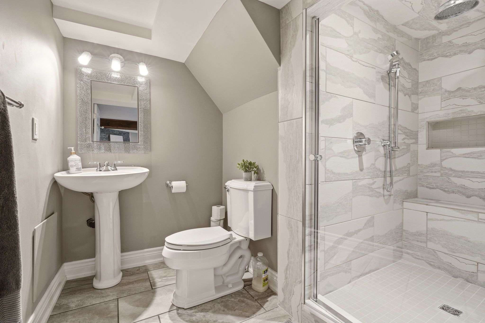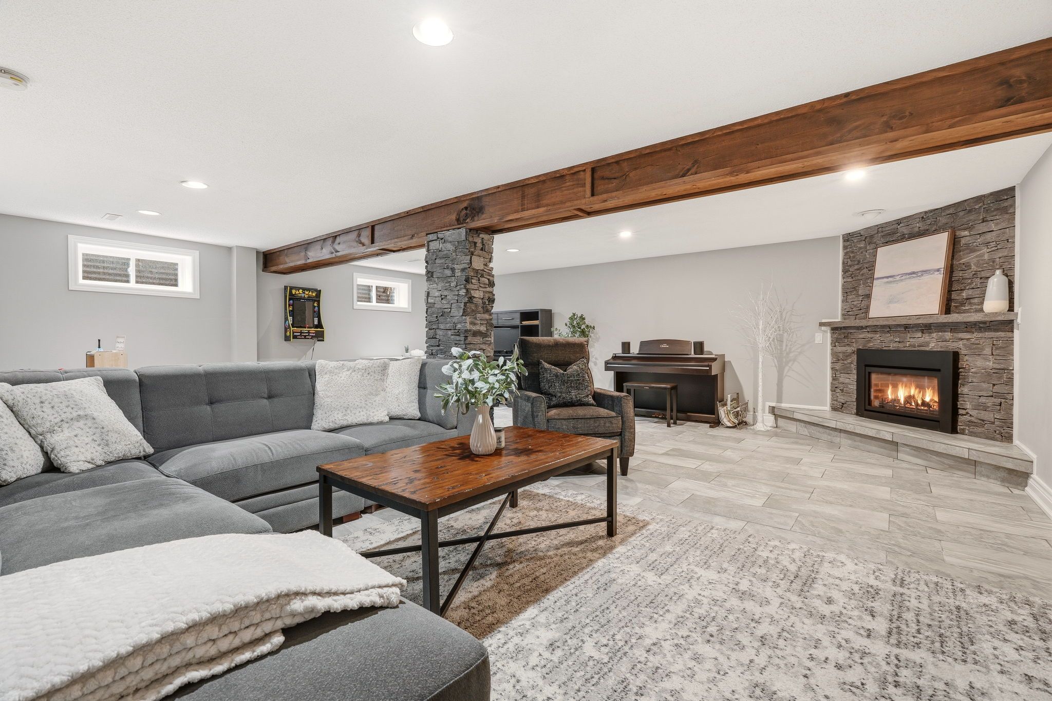 • Cozy lower level with a gas fireplace and additional bedroom.