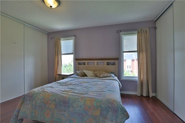 Beautiful and spacious double garage end unit townhome in excellent location. Open concept living and dining with hardwood floor. Eat in kitchen with updated appliances. Master w/double closet and 4pc ensuite. Finished ground level with w/o to landscaped yard. Extras:all existing blinds and elf's, fridge, stove, newer range hood, b/i dishwasher, washer/dryer. Close to hwy401/407 and many amenities including grocery, banks, plaza, transit terminal, library