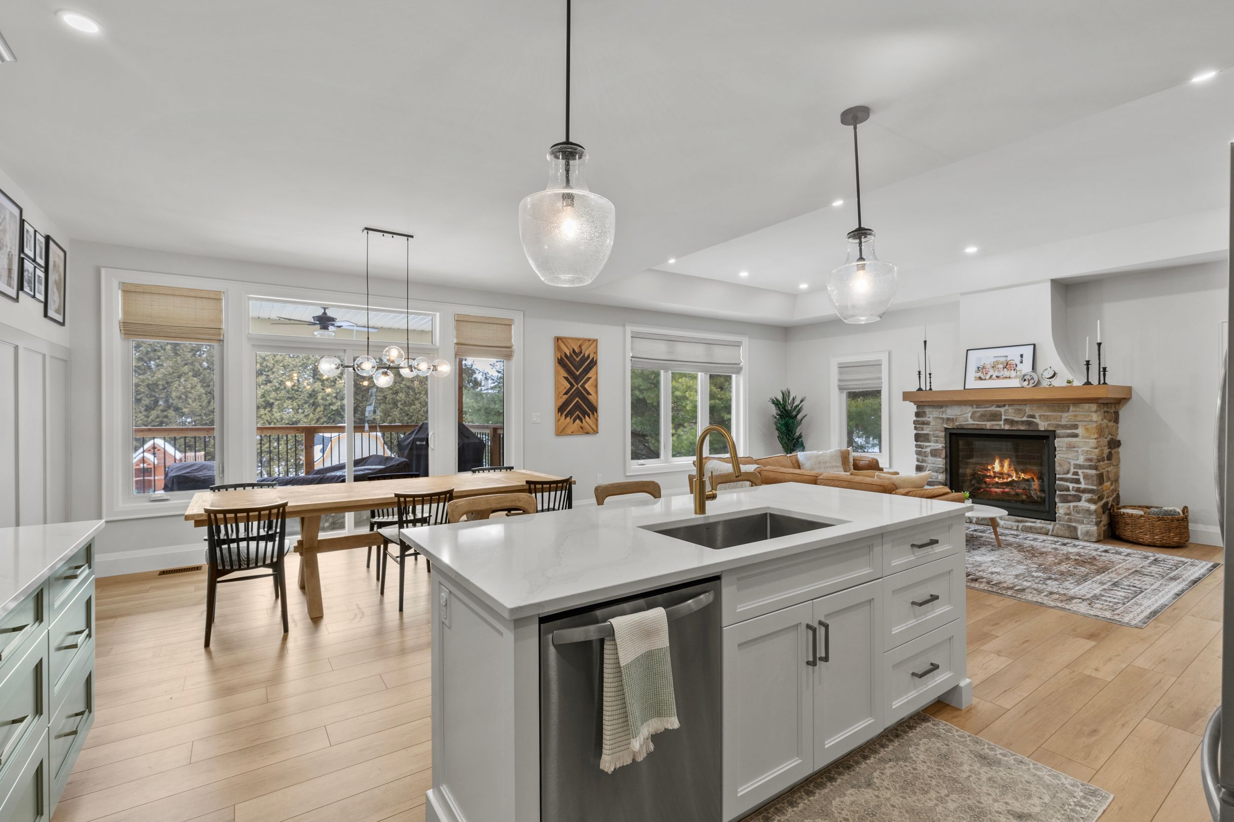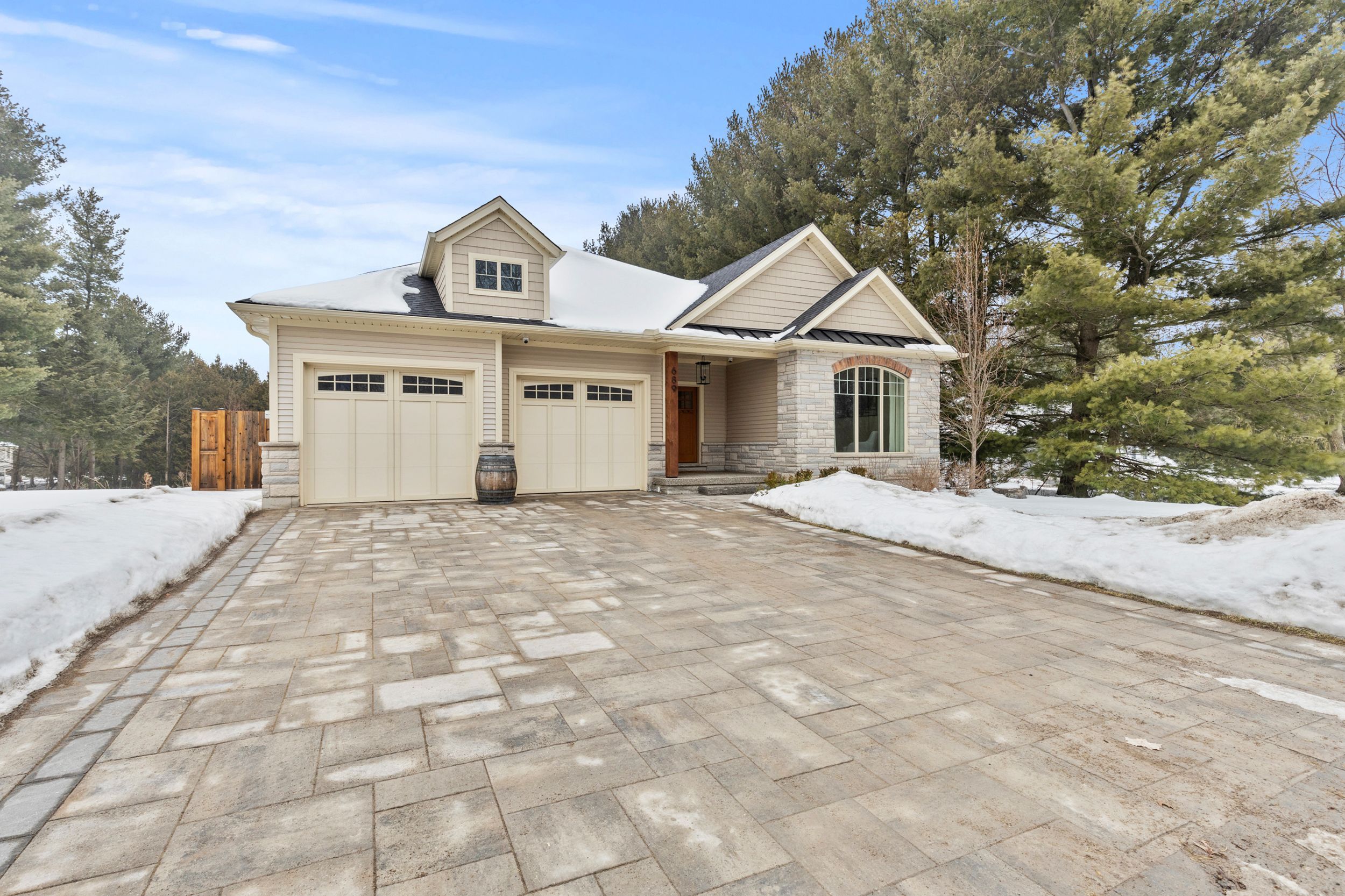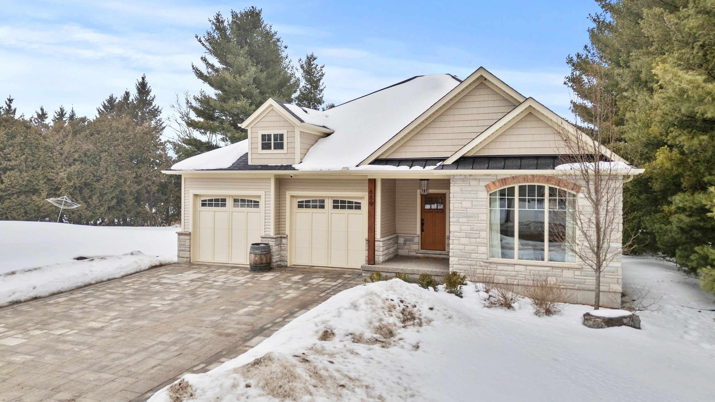 Set on a beautifully landscaped sloped lot just minutes from downtown fenwick, this fully finished custom-built bungalow offers exceptional curb appeal and the perfect balance of privacy and small-town convenience. The striking stone façade, expansive interlocking driveway, and mature trees make a strong first impression. Step inside, to a bright, spacious foyer and lvp flooring flow seamlessly through the open-concept living space. The custom kitchen features stone countertops, gold fixtures, a beautiful backsplash, large island with breakfast bar seating, and a butler's pantry. Sliding glass doors open to a beautiful covered deck, perfect for entertaining or relaxing. The living room features a stone fireplace and plenty of natural light. The main level offers three spacious bedrooms, including a stunning primary suite that feels like its own private wing. This retreat-like space features exceptional size, a walk-in closet, and ensuite with custom tile shower. The fully finished lower level is anything but typical, with a massive, bright living area and french doors opening directly to the backyard and covered patio-ideal for seamless indoor-outdoor living. It also includes two additional large bedrooms, an office that could double as a bedroom, and a luxurious five-piece bath with a tiled shower, stand-alone soaker tub, and double vanity. Outside, the home continues to impress with a large, beautifully landscaped backyard and covered patio, perfect for entertaining or enjoying time with family and friends. Theres also a newly built storage shed on an engineered concrete pad. For added peace of mind, the property is equipped with a hardwired outdoor security system. Meticulously designed and move-in ready, this home blends comfort, style, and thoughtful details for modern family living.