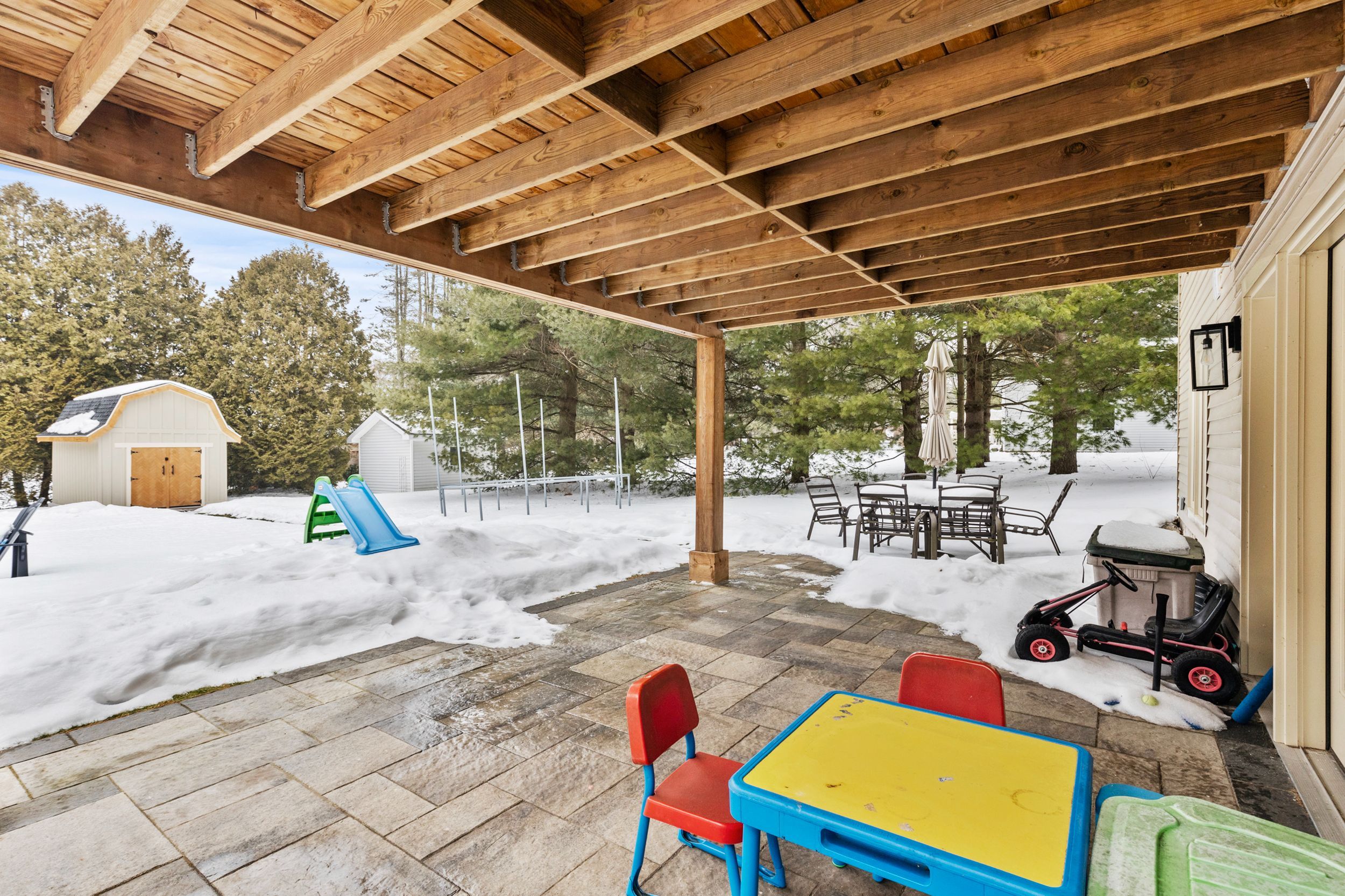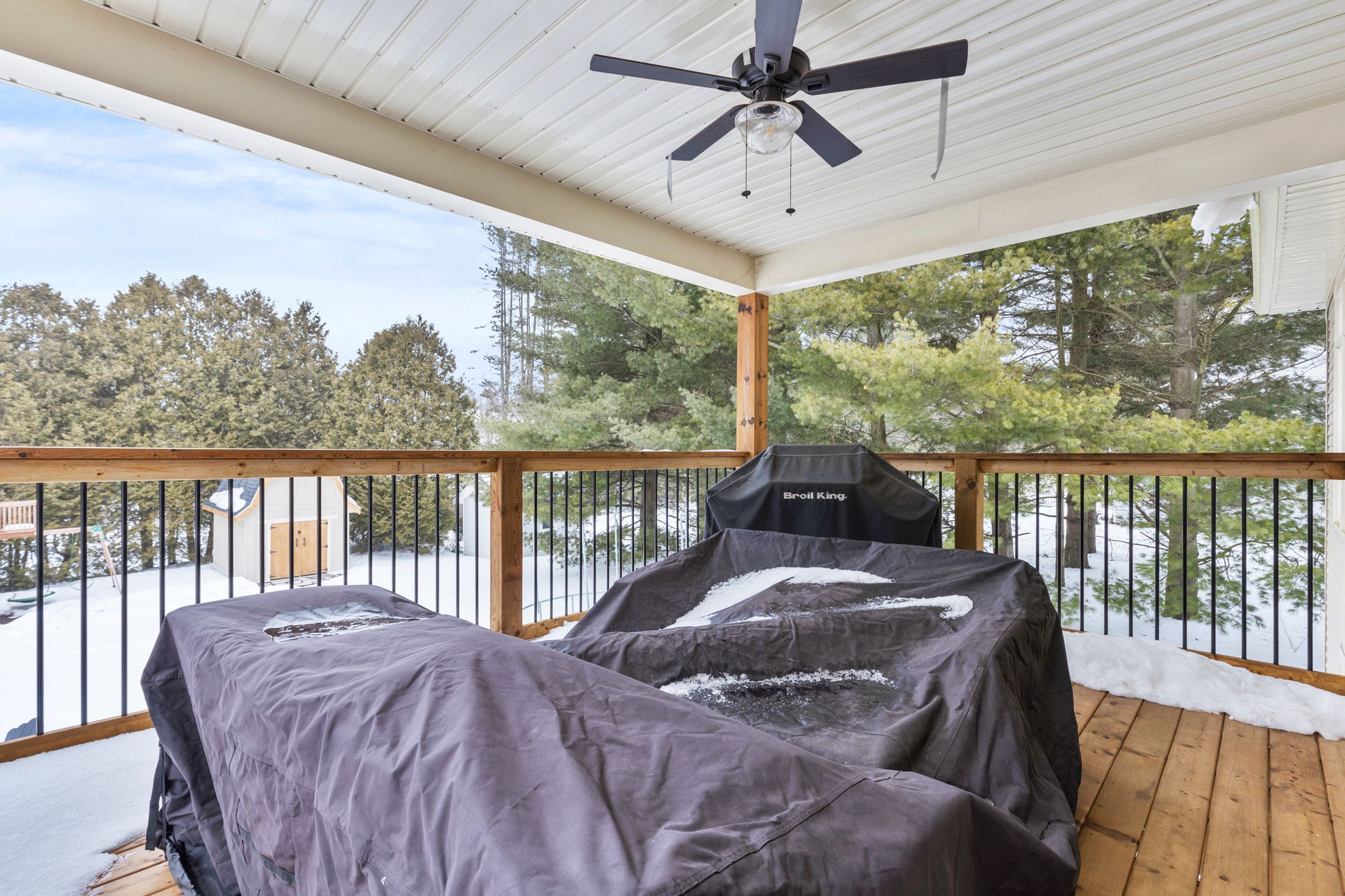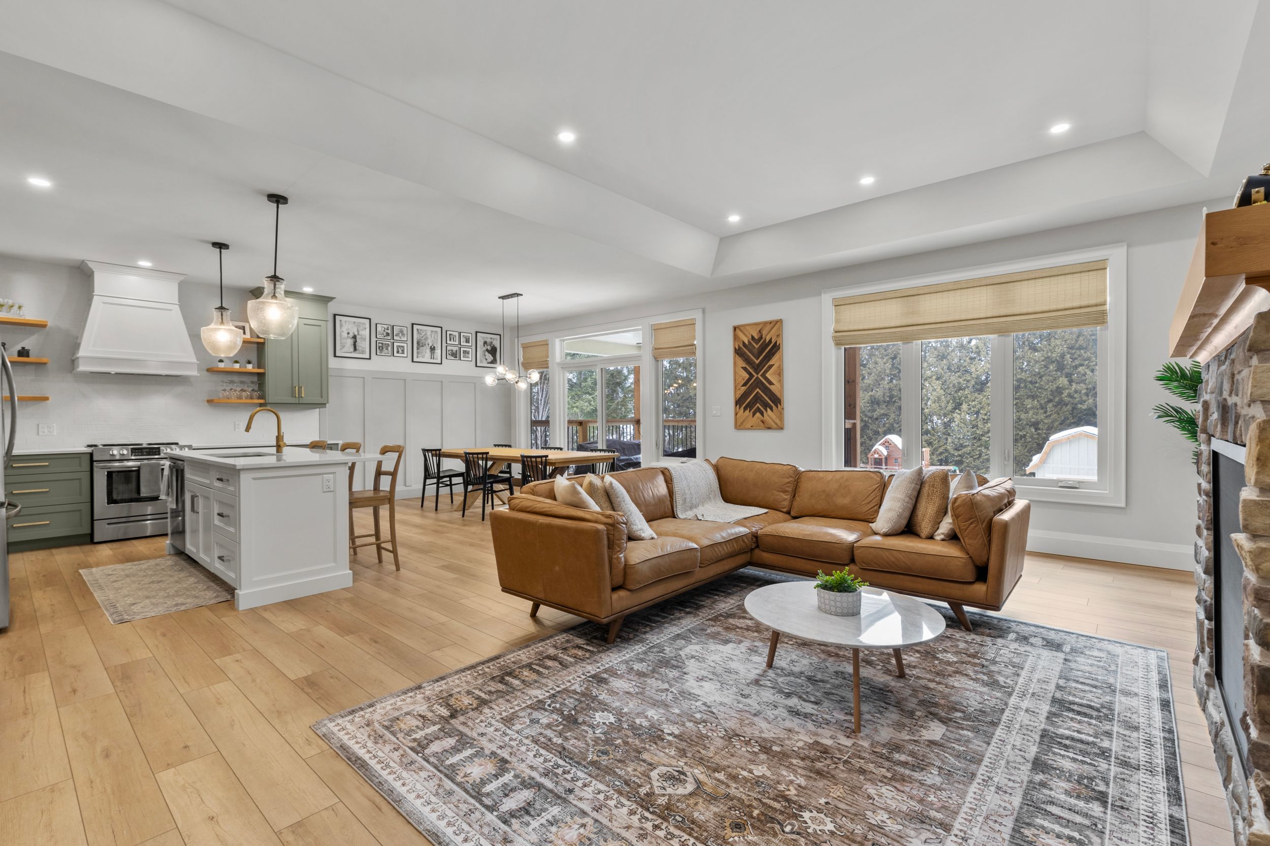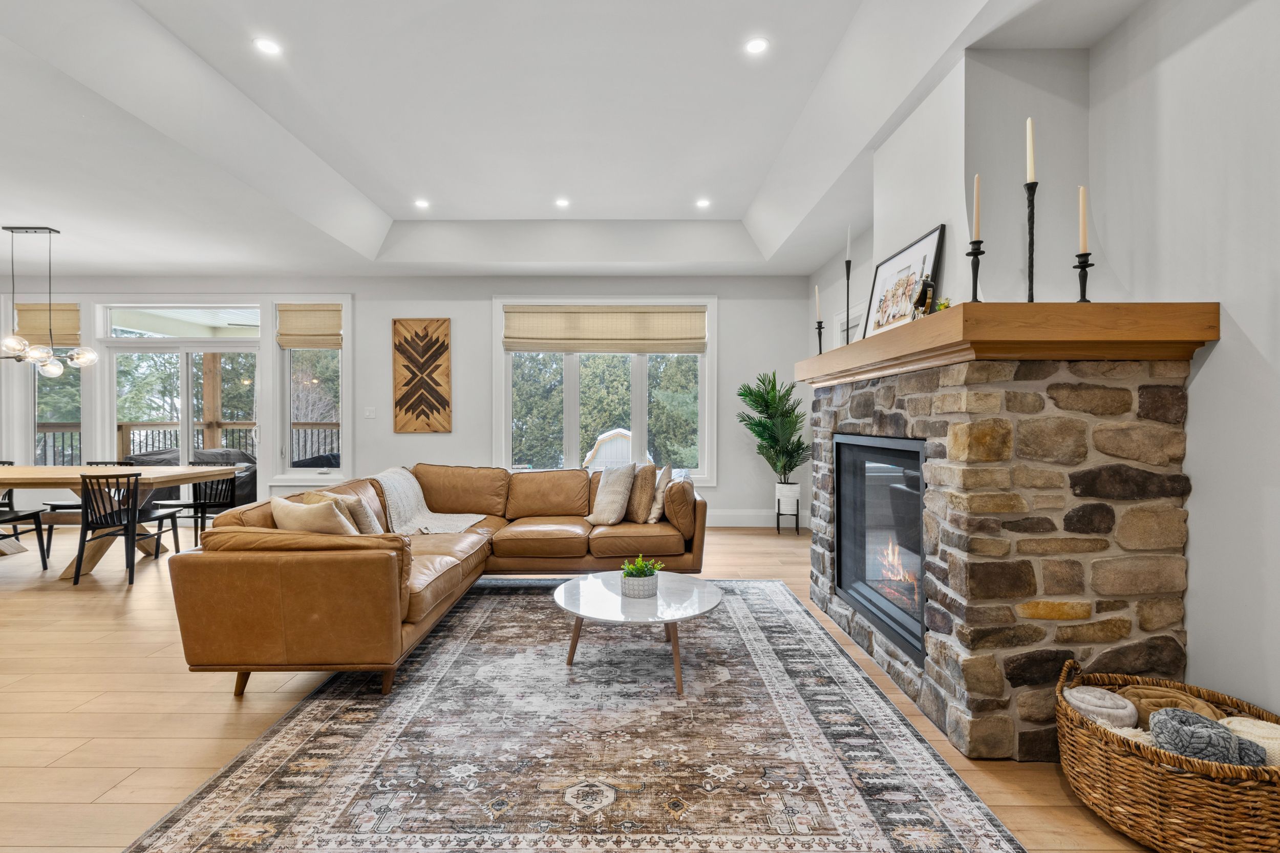 Set on a beautifully landscaped sloped lot just minutes from downtown fenwick, this fully finished custom-built bungalow offers exceptional curb appeal and the perfect balance of privacy and small-town convenience. The striking stone façade, expansive interlocking driveway, and mature trees make a strong first impression. Step inside, to a bright, spacious foyer and lvp flooring flow seamlessly through the open-concept living space. The custom kitchen features stone countertops, gold fixtures, a beautiful backsplash, large island with breakfast bar seating, and a butler's pantry. Sliding glass doors open to a beautiful covered deck, perfect for entertaining or relaxing. The living room features a stone fireplace and plenty of natural light. The main level offers three spacious bedrooms, including a stunning primary suite that feels like its own private wing. This retreat-like space features exceptional size, a walk-in closet, and ensuite with custom tile shower. The fully finished lower level is anything but typical, with a massive, bright living area and french doors opening directly to the backyard and covered patio-ideal for seamless indoor-outdoor living. It also includes two additional large bedrooms, an office that could double as a bedroom, and a luxurious five-piece bath with a tiled shower, stand-alone soaker tub, and double vanity. Outside, the home continues to impress with a large, beautifully landscaped backyard and covered patio, perfect for entertaining or enjoying time with family and friends. Theres also a newly built storage shed on an engineered concrete pad. For added peace of mind, the property is equipped with a hardwired outdoor security system. Meticulously designed and move-in ready, this home blends comfort, style, and thoughtful details for modern family living.
