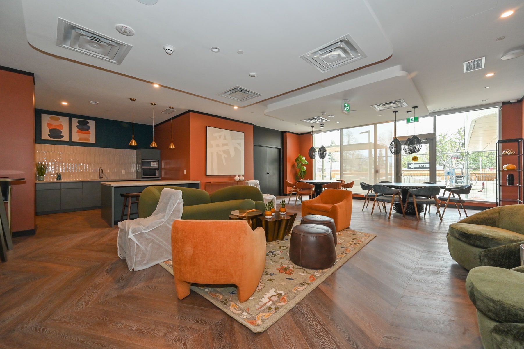 • Building amenities include gym, lounge, yoga studio, and more.
