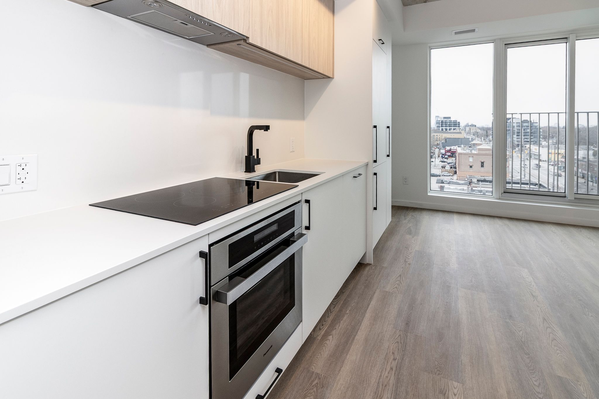 Welcome to suite 709 - a smartly designed 620 sq. Ft. One-bedroom plus one den offering efficient, modern living with a functional, well-laid-out floor plan. Bright, open-concept living and dining areas create a comfortable flow and make the most of the space. The kitchen features sleek upgraded cabinetry, upgraded stovetop and ample storage, seamlessly connected to the main living area, perfect for both everyday use and entertaining. The primary bedroom is well-sized, while the versatile den can easily serve as a home office, guest space, or flex area depending on your needs. A modern upgraded bathroom and convenient in-suite laundry complete the suite. Set within one of the city's most distinctive boutique buildings, this unit offers a great balance of style and functionality in a prime urban location. Reina condos is a newer boutique residence on the queensway with just 200 suites, showcasing clean, contemporary design. Amenities include a gym, kids playroom, community room, sound room, games room, library, pet wash, and more. Residents can also enjoy outdoor spaces with a bbq area, lounge, and kids zone. Just a short walk to mimico go station with easy access to the gardiner, and surrounded by shopping, dining, and parks-this is city living done right.