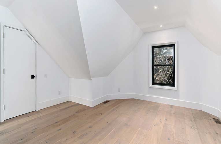 • Floating staircases and 10-ft ceilings create a spacious, open feel.
