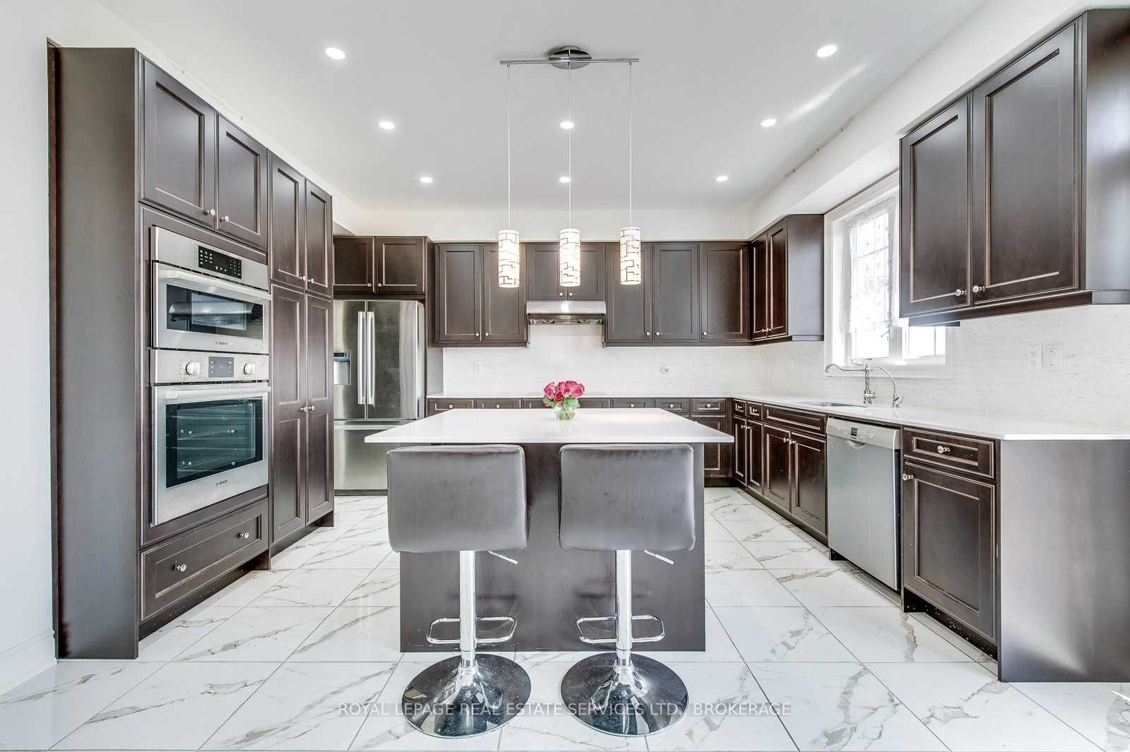 Landlord will consider short term or long term tenant. A detached home on a premium ravine lot with walk out basement located on a quiet crescent in prestigious and friendly neighborhood. East facing large sundeck with stairs leading to the backyard overlooks stunning ravine views! Open concept living room and dining room with coffered, family overlook ravine, luxury kitchen w/server area & high-end appliances. 4 large bedrooms with 3 full baths on 2nd level. Primary bedroom has 2 walk-in closets, 2nd bedroom with 4pc ensuite and walk-in closet, while other 2 bedroom shared 4pc bathroom. 10' smooth ceiling on 1st floor & 9' on 2nd floor. Upgraded engineering hardwood floors on main floor, oakwood spiral stairs w/iron pickets, new hardwood floor on 2nd level. Pot lights on main level. Interlocking front walkway & patio in backyard. Long driveway w/no sidewalk. Enjoy the privacy in the natural beauty and especially the sunrise from the large deck. The home is conveniently located close to school, parks, creeks, hwy427, shopping plaza.