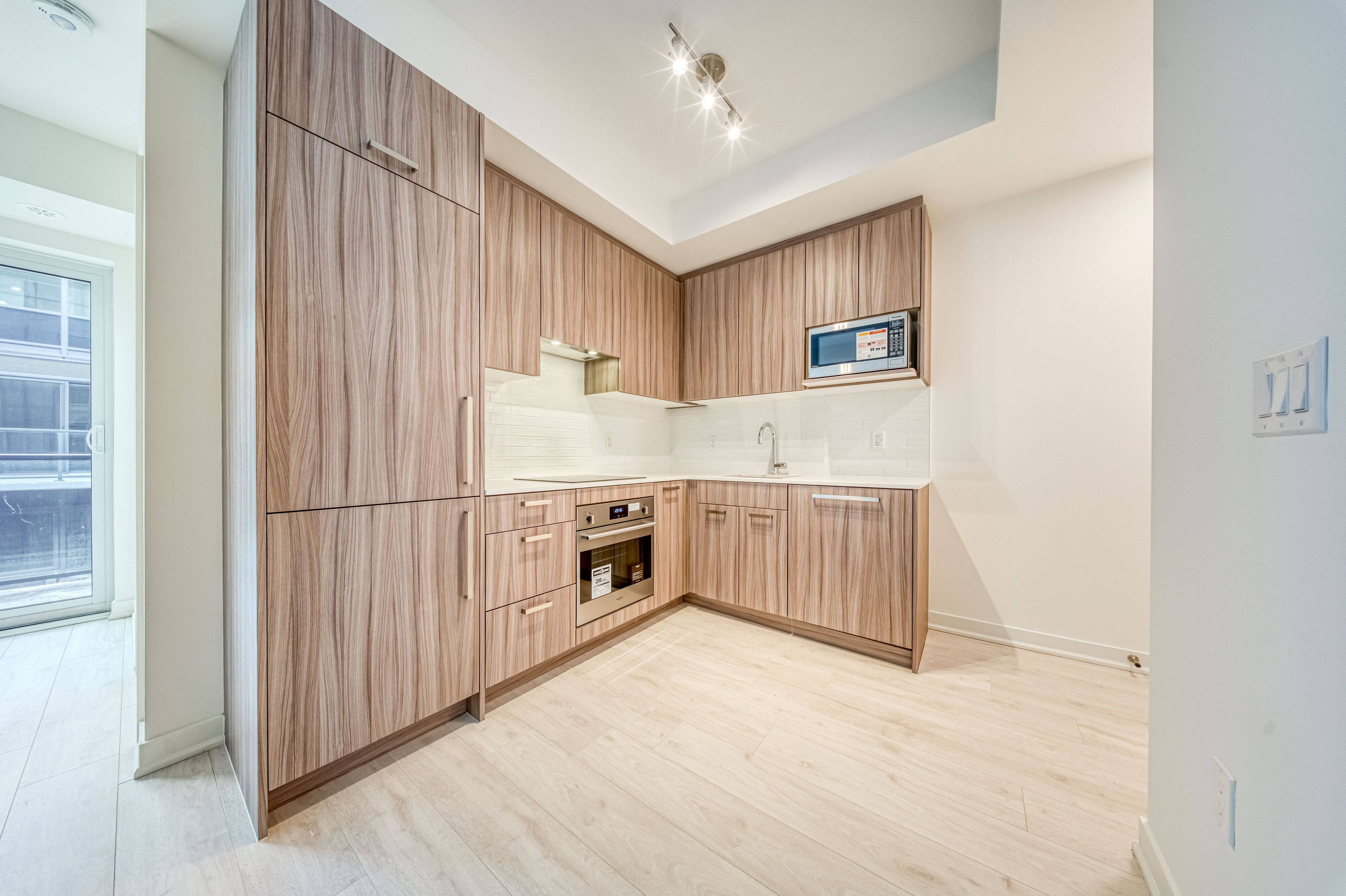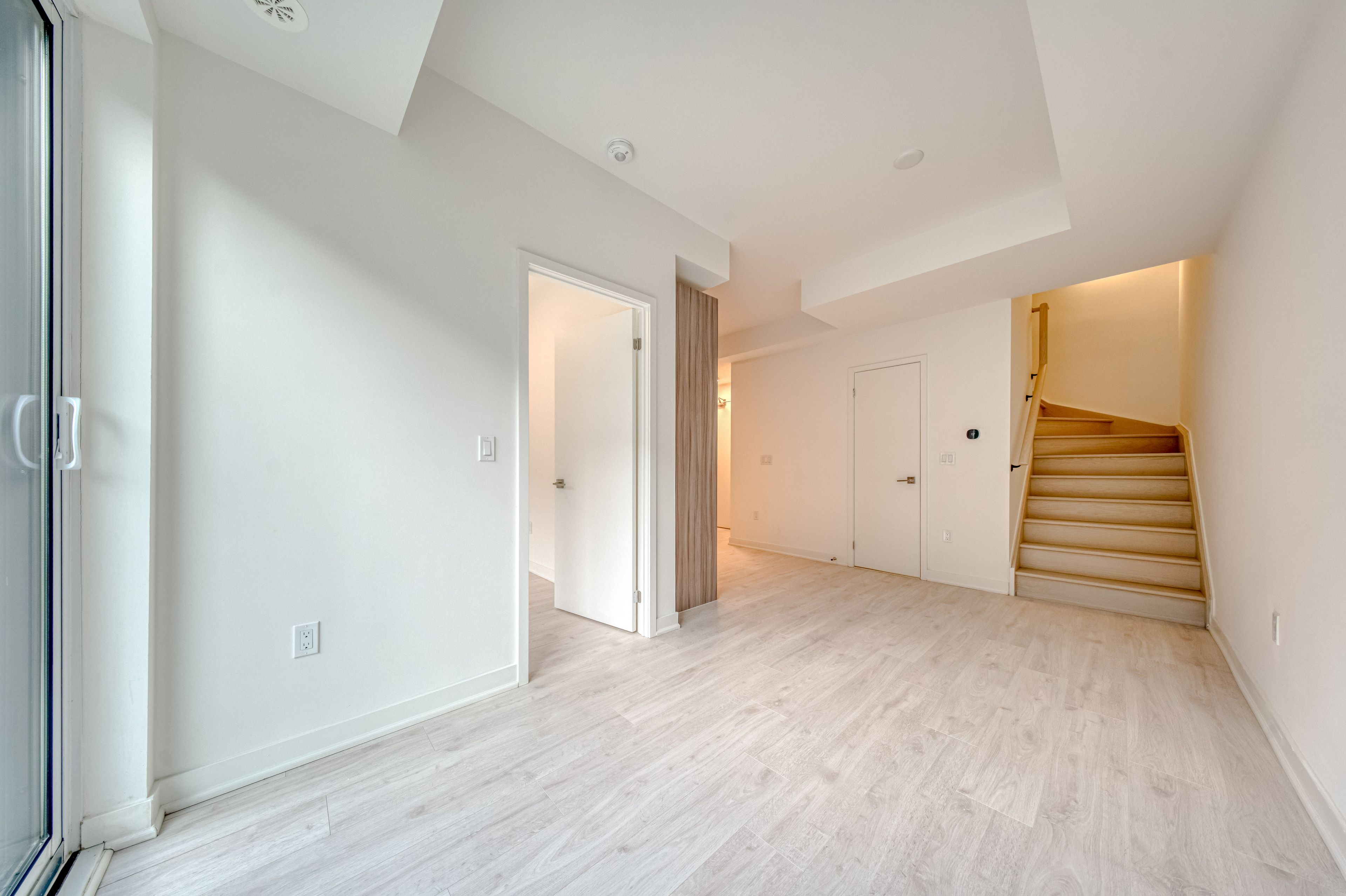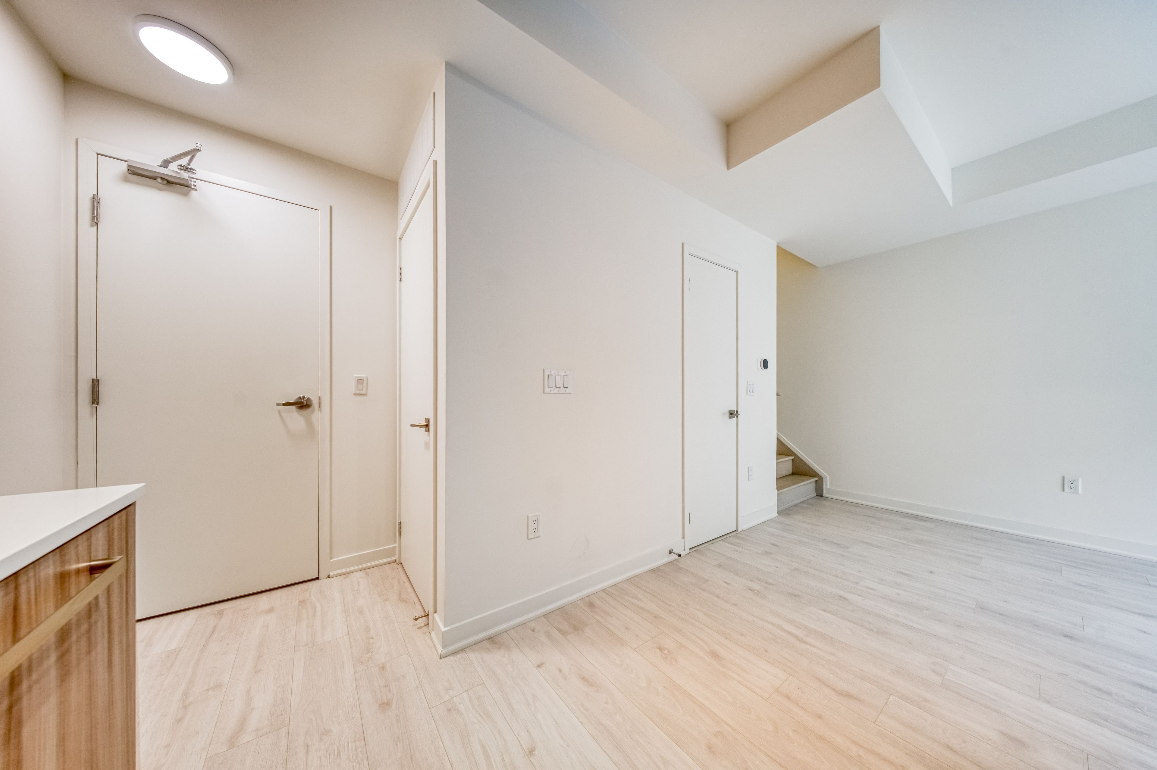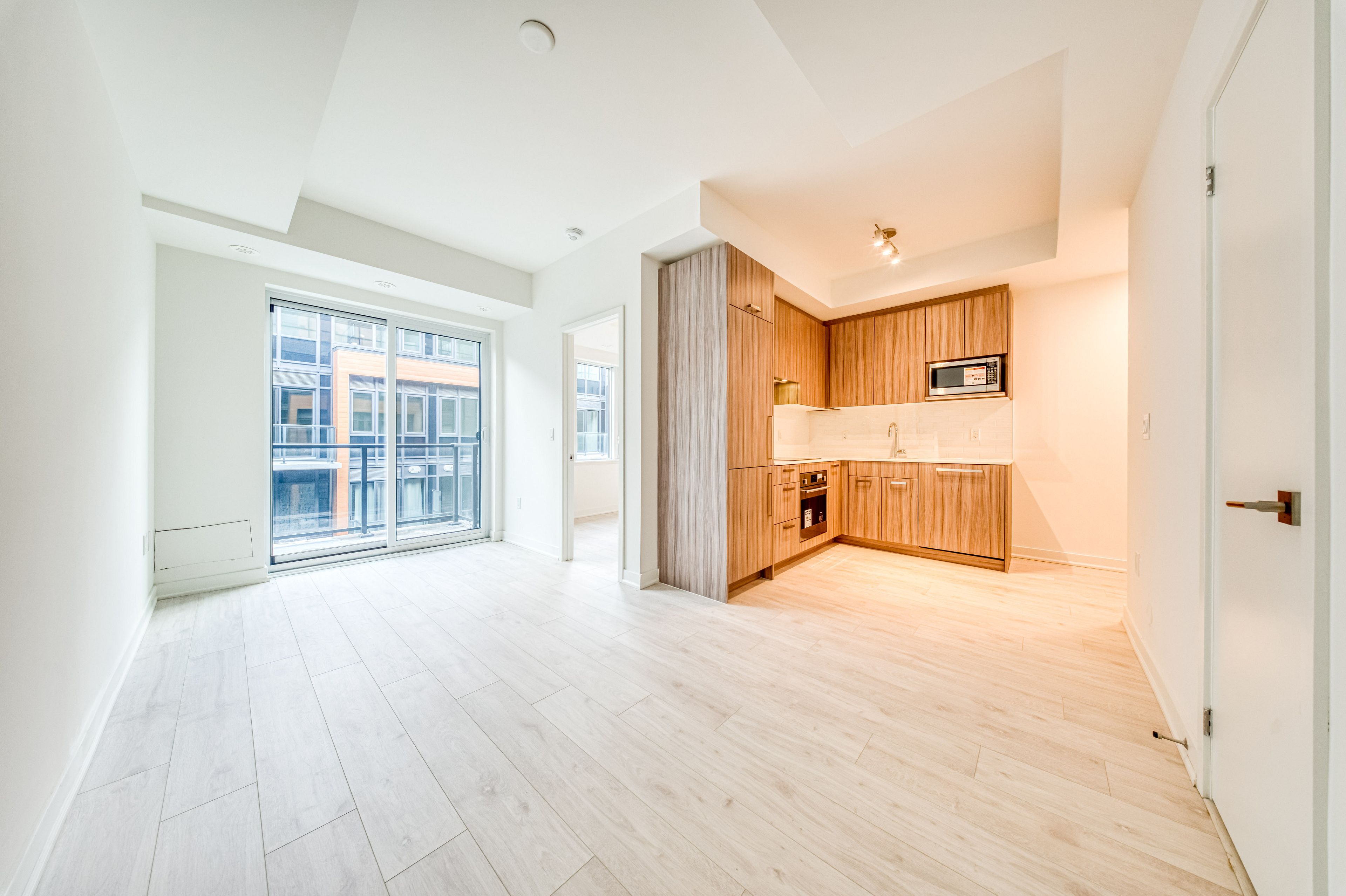 • Bright open-concept living area and a designer kitchen for modern living.