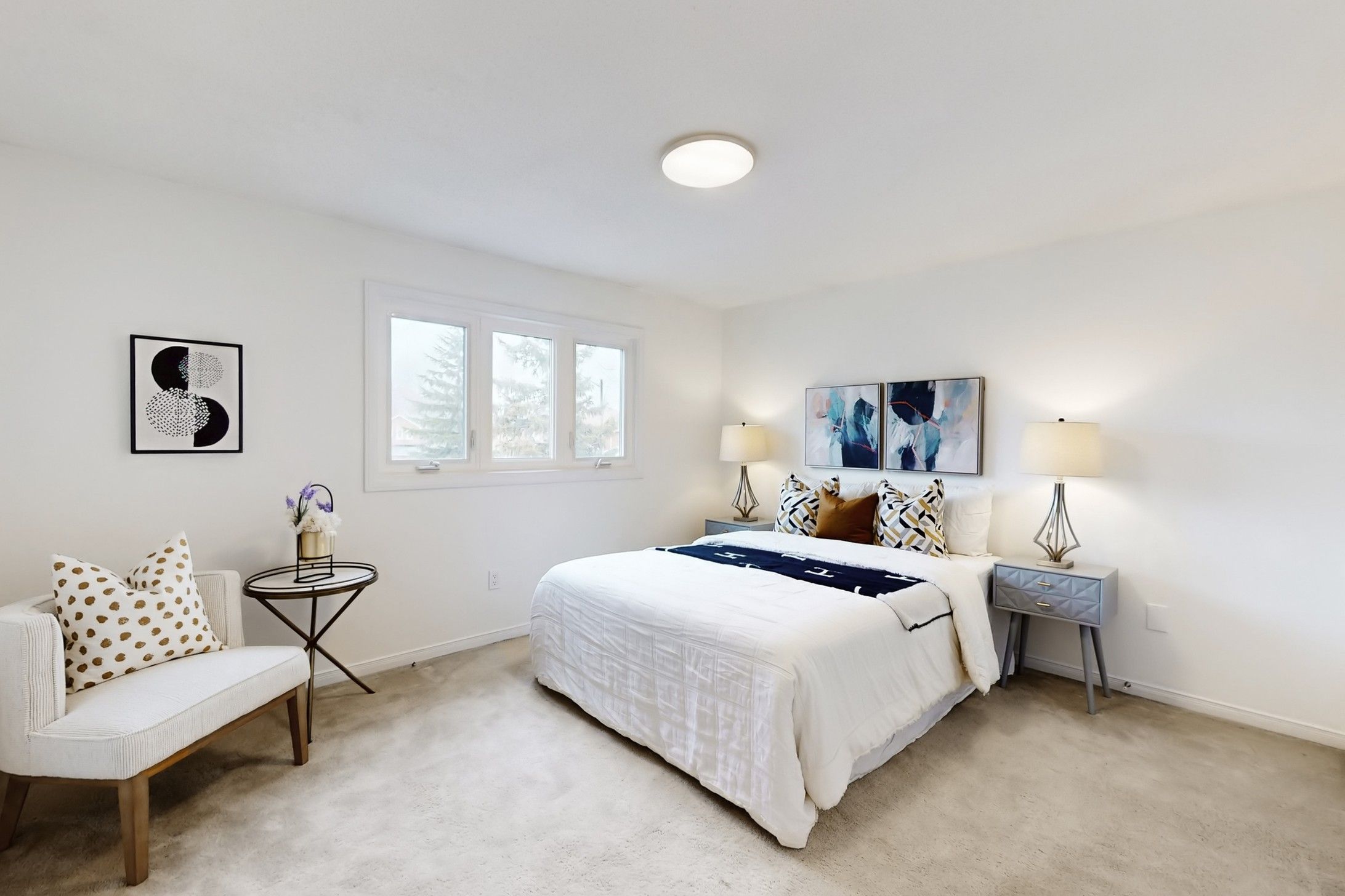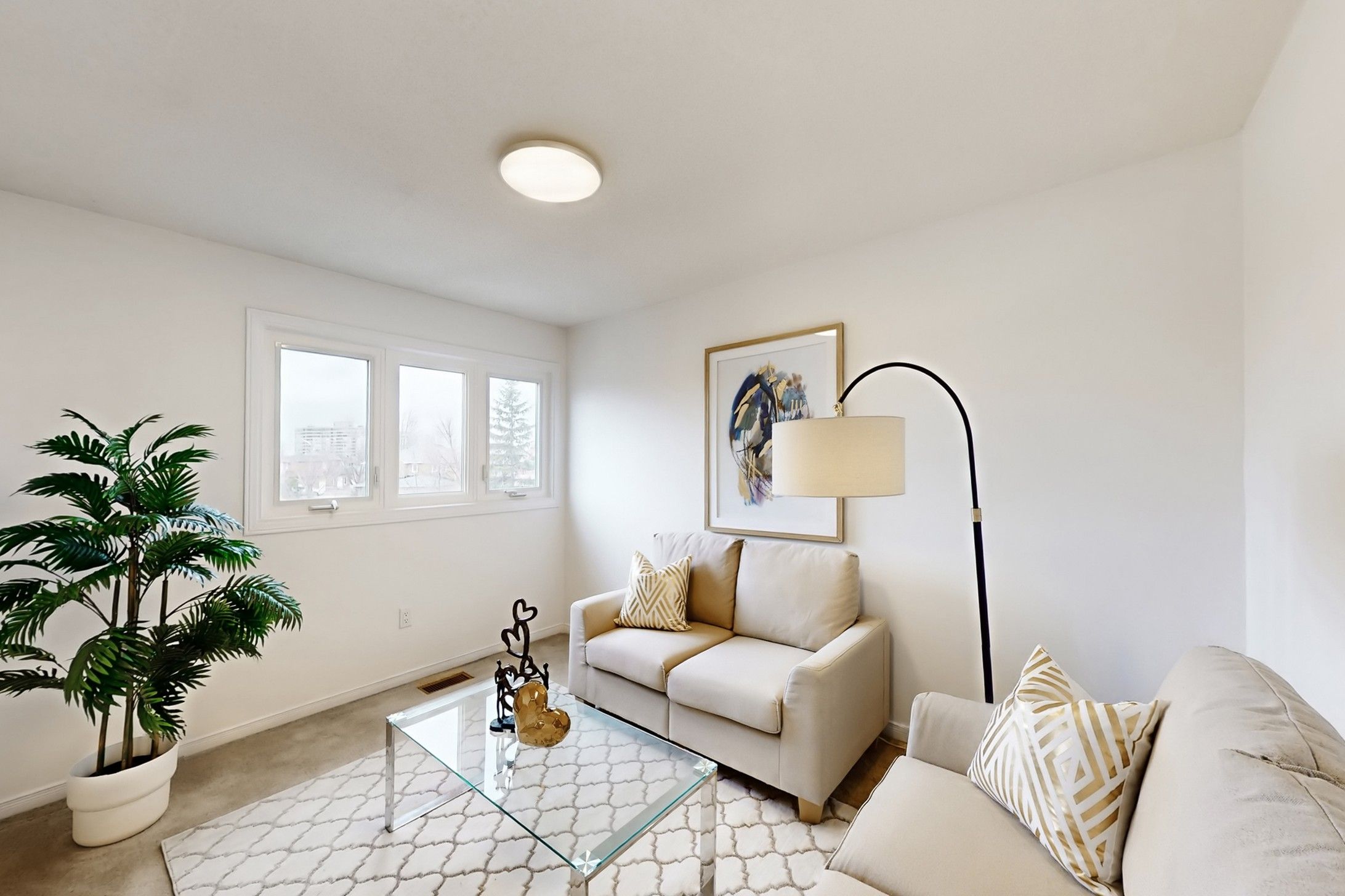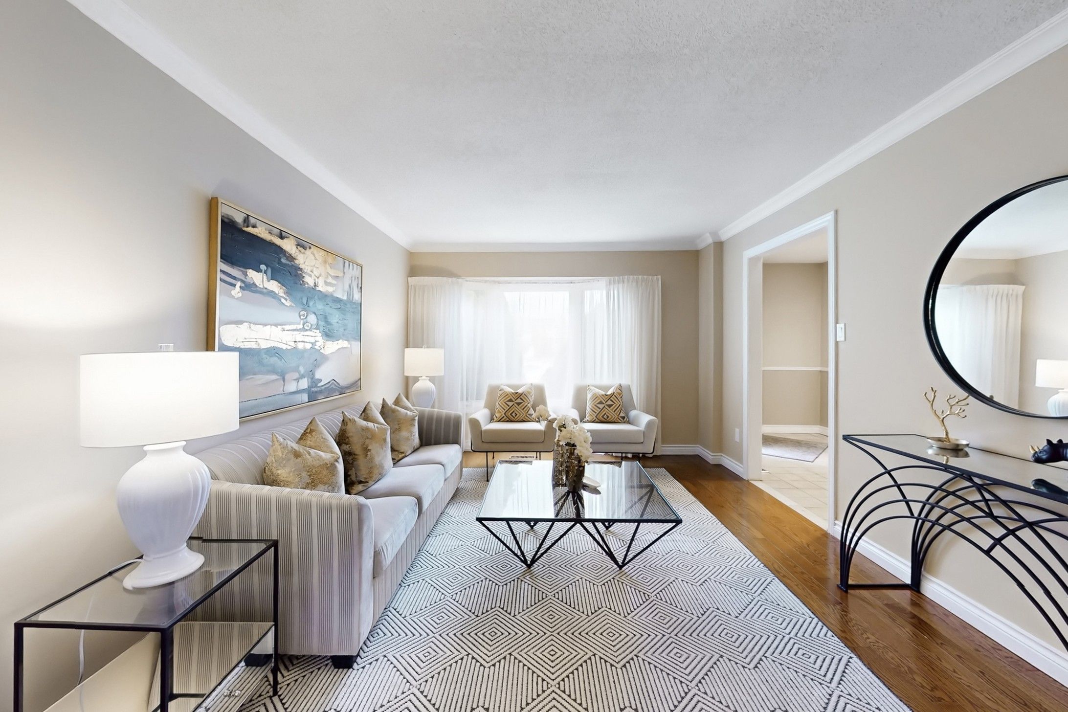 • Bright living room with a bay window providing natural light.