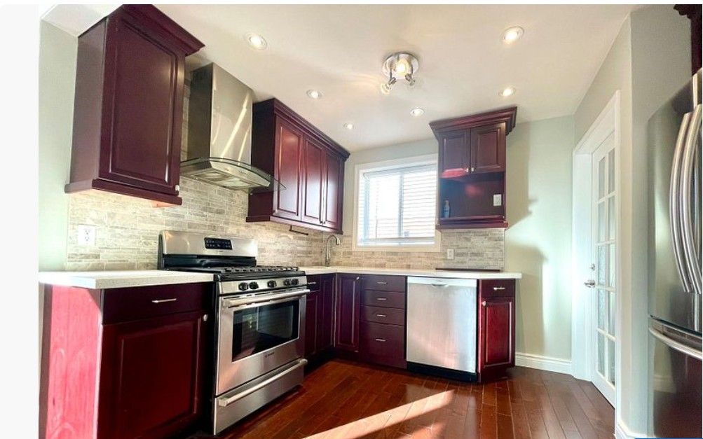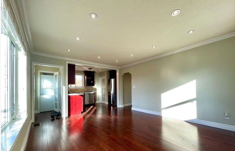 Beautiful and cozy main floor with 3 beds, 1 full bath. Hardwood floor throughout main floor in living/dining room combined. 3 bedrooms all with large windows. 4 piece bathroom and separate ensuite laundry, spacious wood cabinets kitchen and s/s appliances. Fresh paint. 2 driver way parking plus 1 garden shed for additional storage. Professional grade landscaping, interlock, long driveway. Steps to schools and shopping, minutes to 401 and dvp.