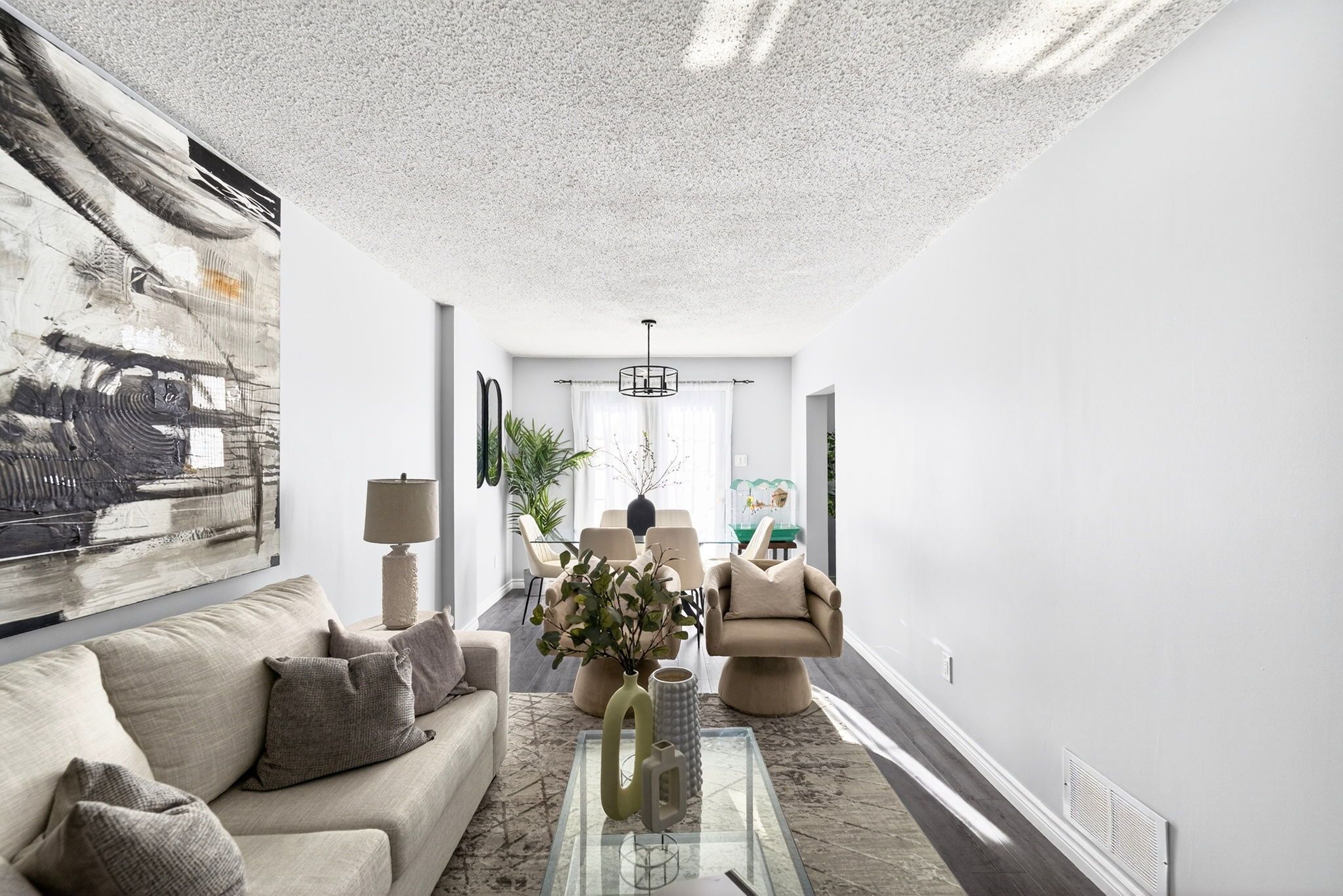 Welcome to 69 horseley hill, a solid and well-maintained townhome situated on a premium 175 ft deep lot in toronto's desirable e11 district. Recently refreshed from top to bottom, this inviting home features fresh paint throughout, brand-new flooring, updated appliances, modern door hardware, and upgraded light switches and outlets. The bright and spacious main floor is filled with natural light from large windows, creating a warm and welcoming atmosphere ideal for both everyday living and entertaining. Upstairs, three generously sized bedrooms provide comfortable accommodations, complemented by a full bathroom. The private backyard with established gardens offers a charming outdoor retreat perfect for relaxing or hosting guests, while the attached garage provides ample storage and practicality. Ideally located just minutes from highway 401 and within walking distance to ttc bus routes, schools, libraries, parks, shopping, and dining, this home presents an exceptional opportunity for first-time buyers and investors alike.
