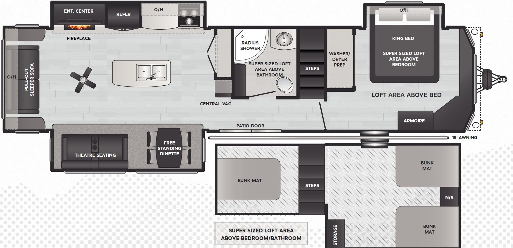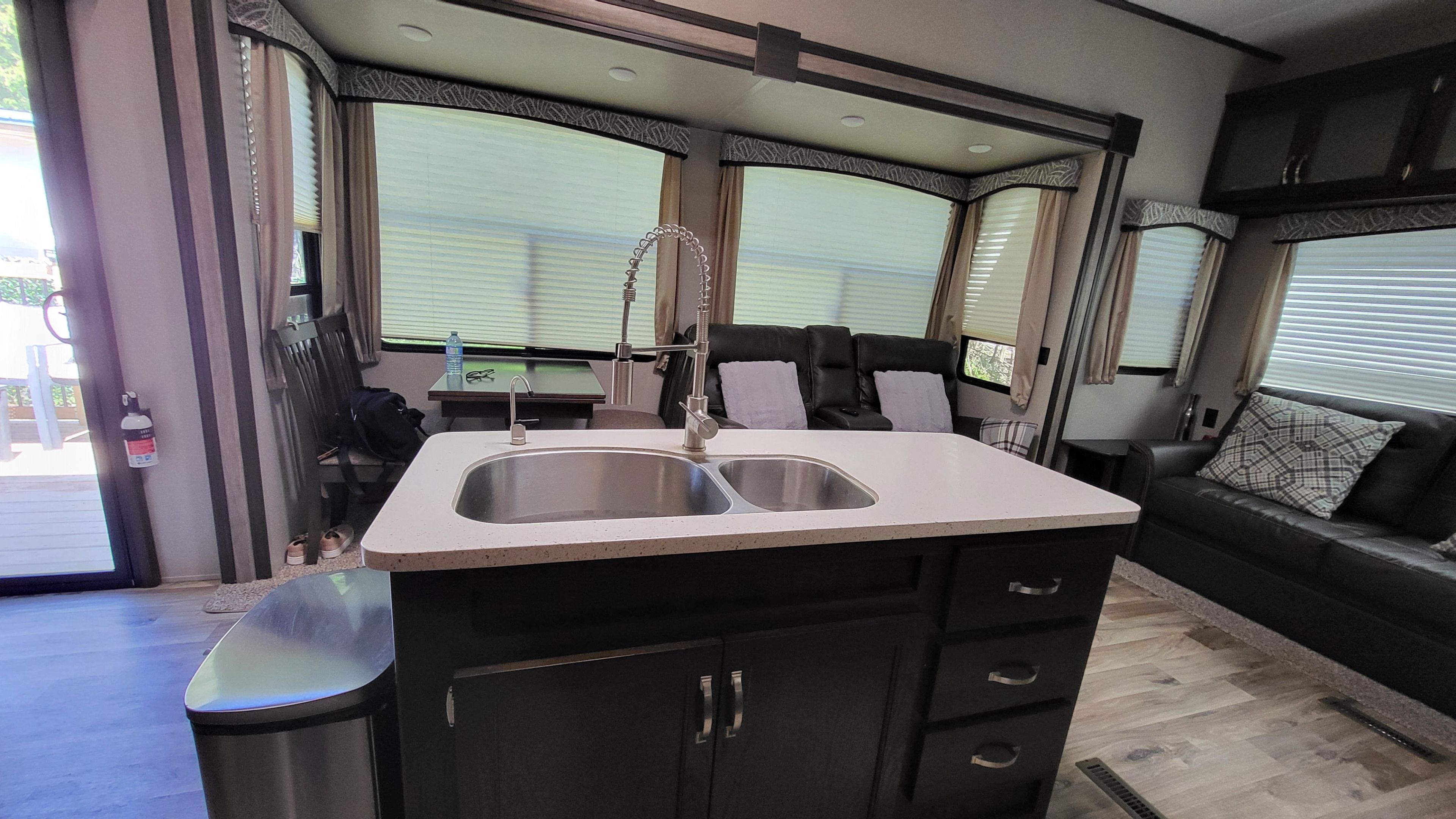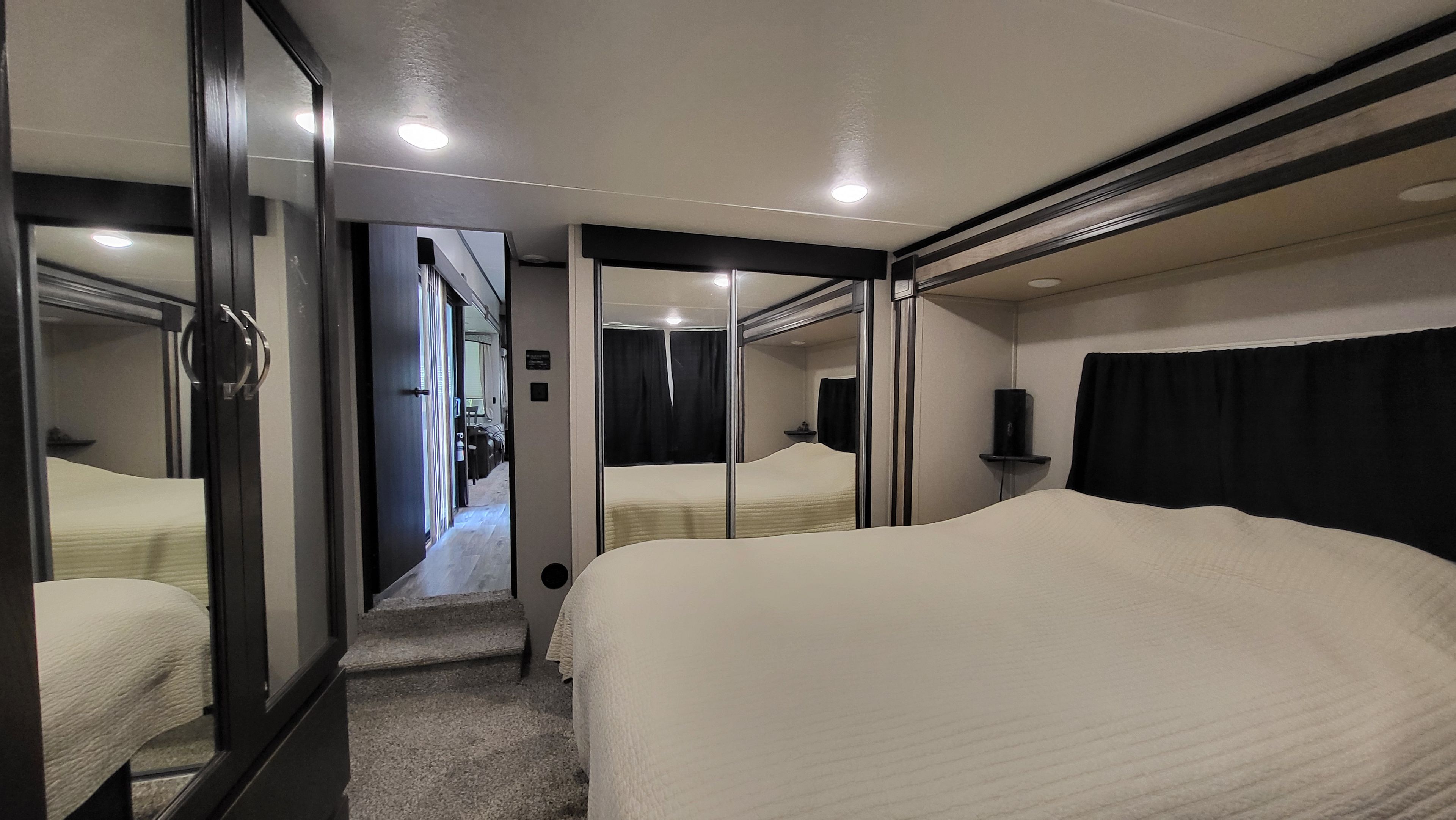 • Modern one-bedroom mobile home with two lofts, perfect for entertaining.