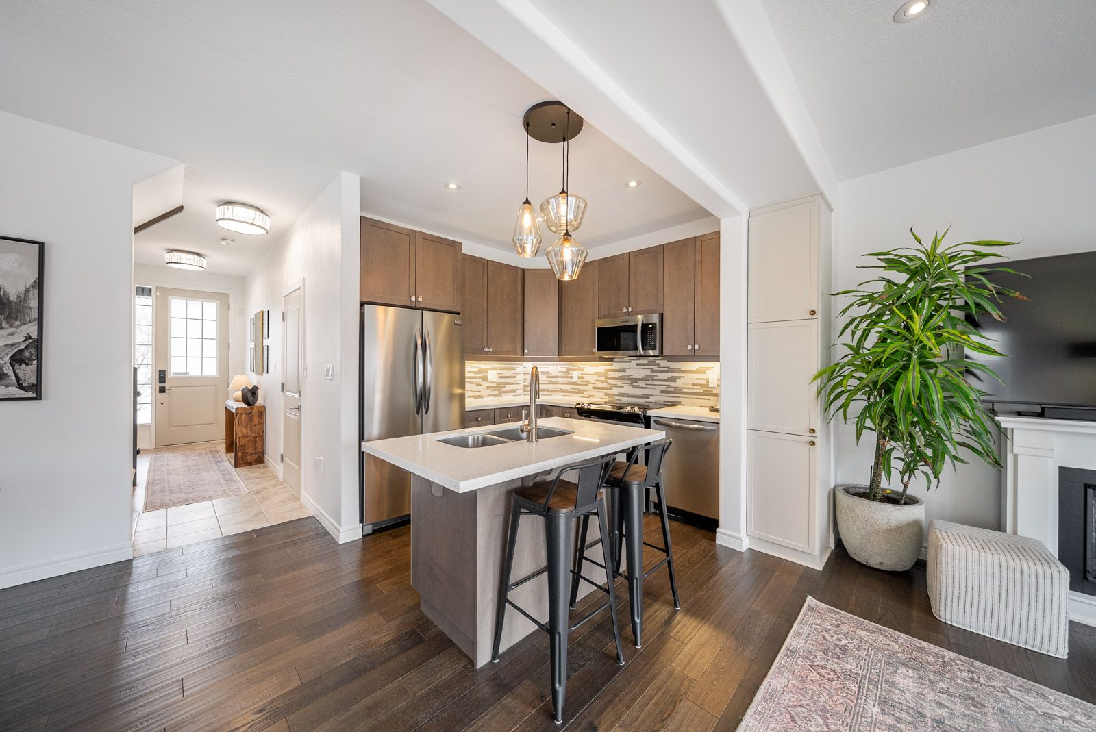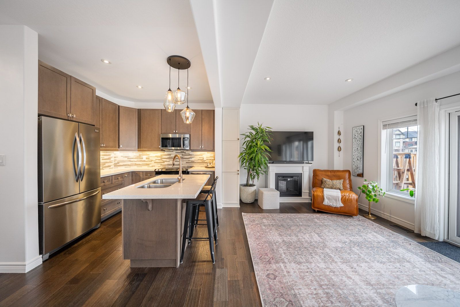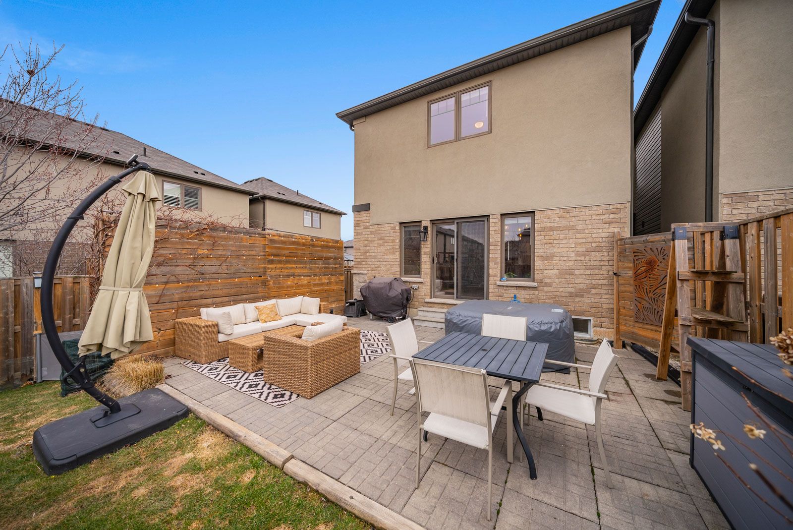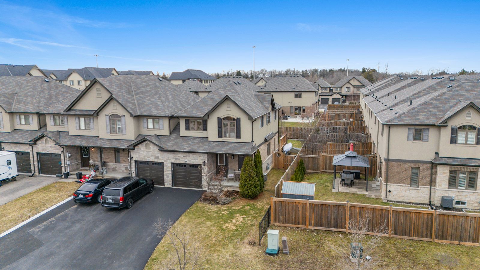 Gorgeous freehold end-unit townhome in a highly sought-after ancaster neighbourhood with no condo fees. Attached only at the garage, offering added privacy and minimal noise, with a layout that lives closer to a detached home. Set on a premium lot larger than most surrounding homes, this property is filled with natural light from multiple sides and features engineered hardwood floors and consistent, quality updates throughout. Thoughtfully maintained and well cared for, this is a home where what you see is exactly what you get. Offering three bedrooms and three bathrooms, with a functional layout. The main floor has been upgraded with quartz countertops, updated faucets, lighting, and fixtures, along with a custom pantry and built-in shelving. The primary suite features custom built-in closets and dresser. The professionally finished basement (2025) adds additional living space, ideal for a gym, entertaining area, or accommodating extended family. The backyard is fully fenced, private, and larger than typical for the area, complete with newer landscaping, stonework, and established gardens. The driveway has been newly asphalted and sealed, offering parking for three vehicles in addition to the garage. This is a turnkey, well-maintained home in a safe, family-friendly community close to parks, schools, and amenities.