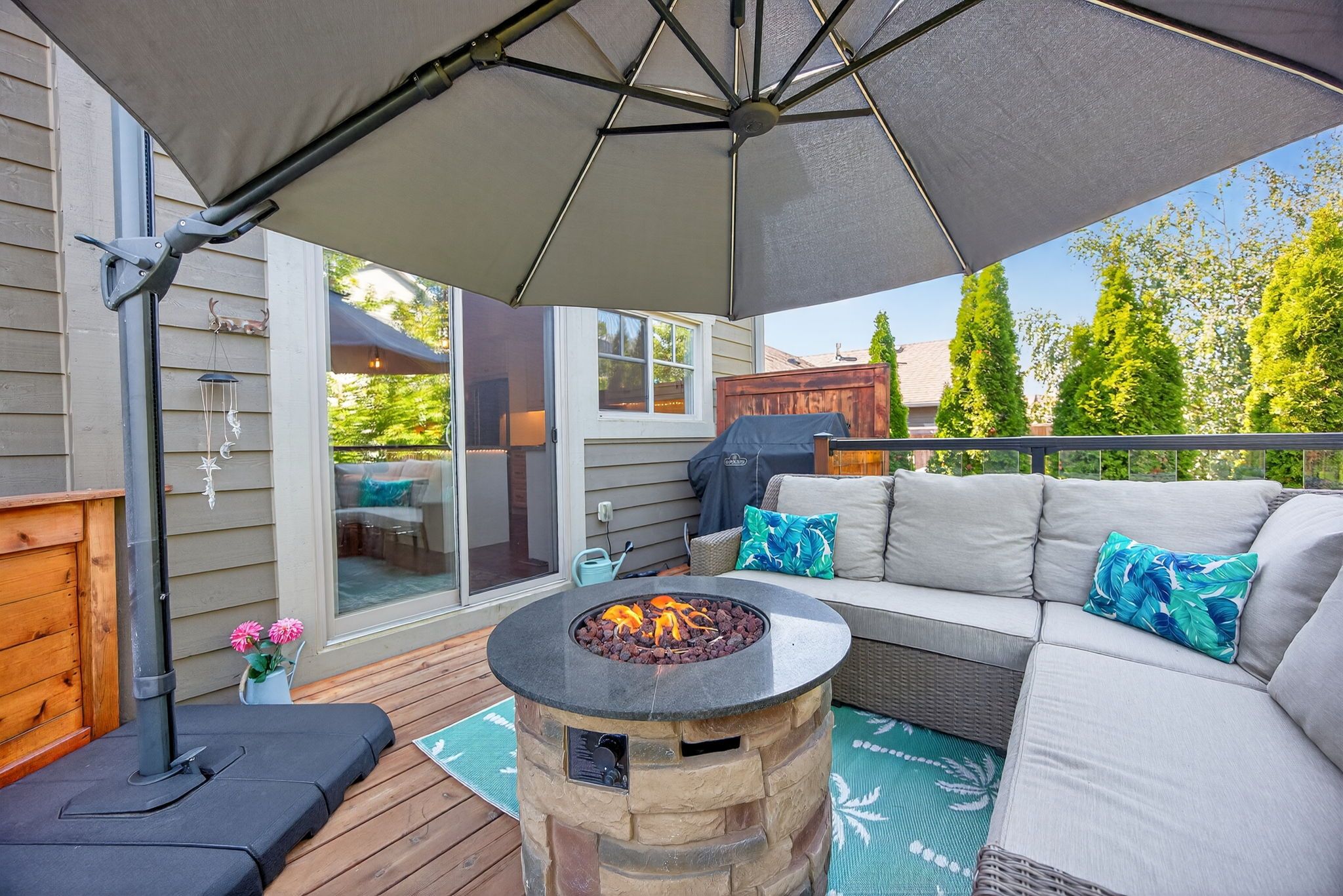 • Private backyard with cedar deck and gas BBQ, great for relaxation.