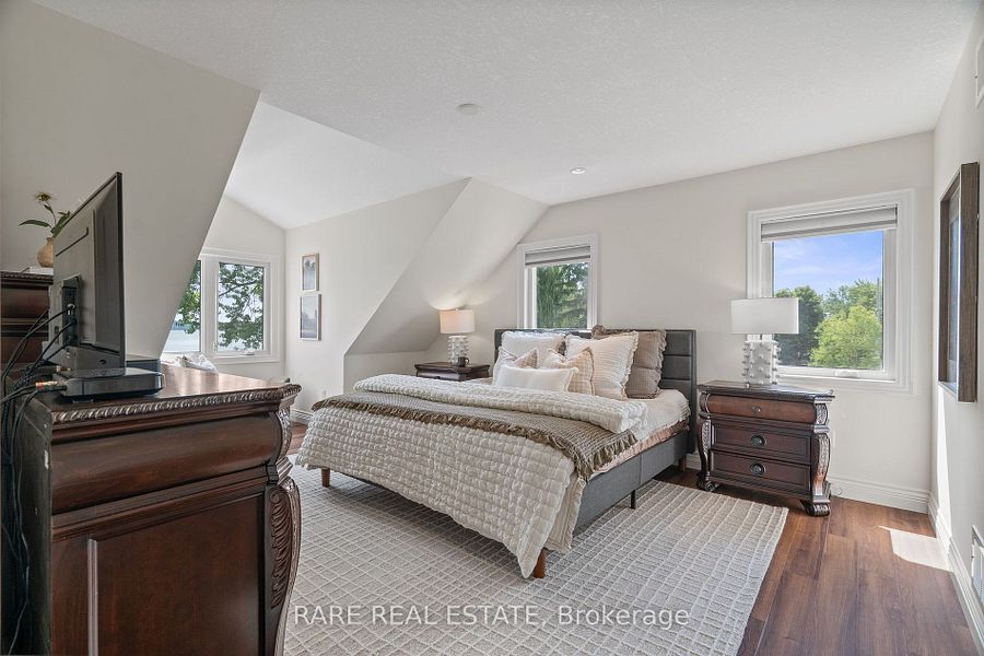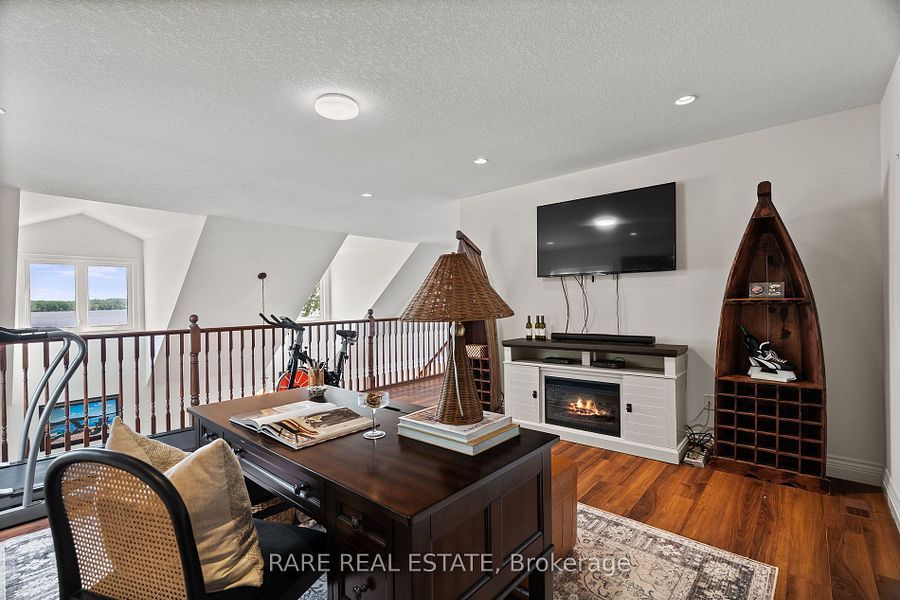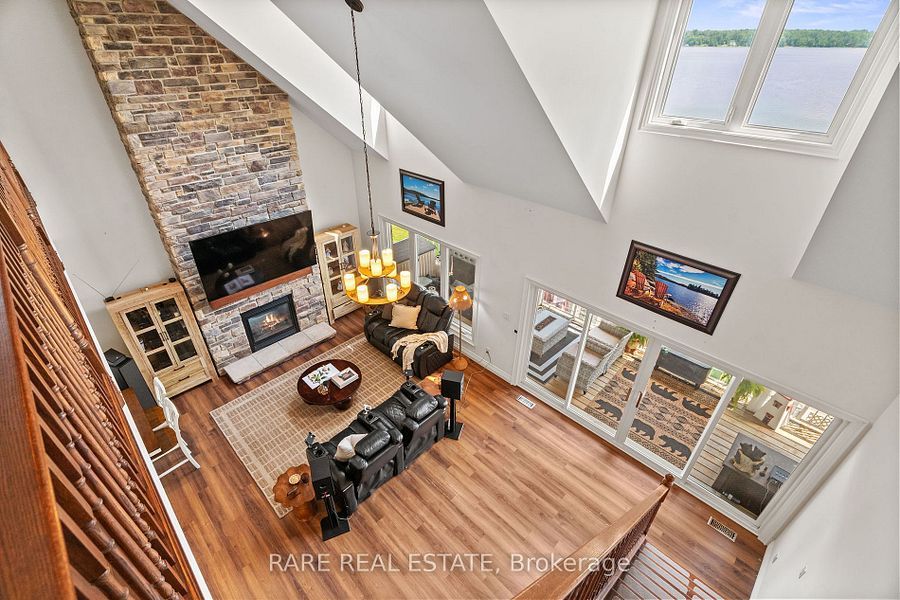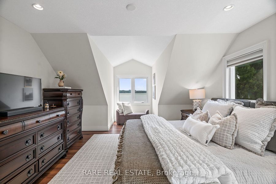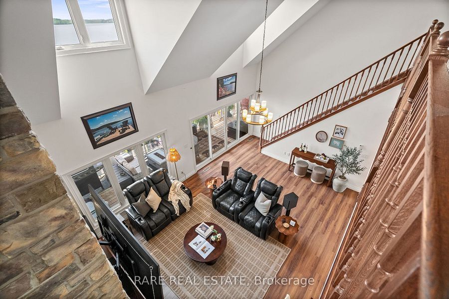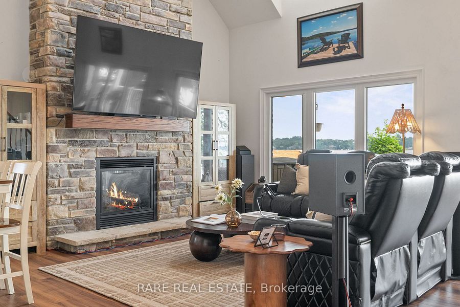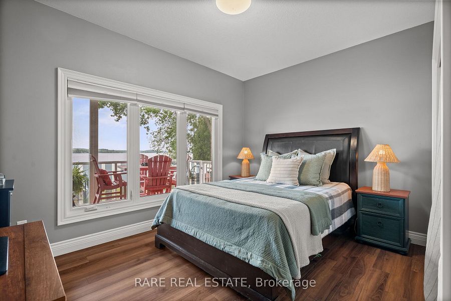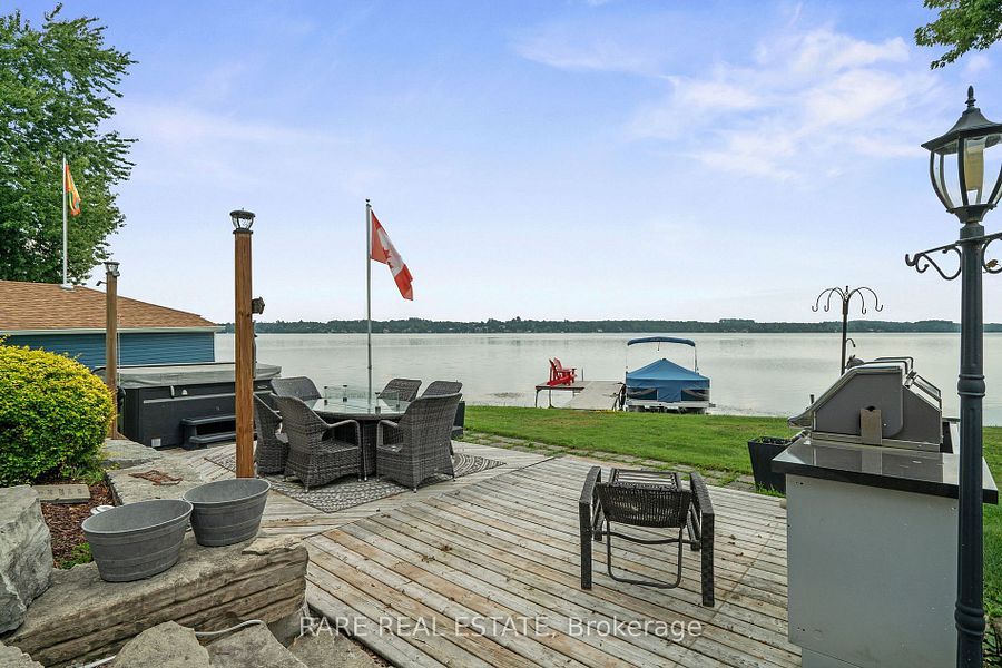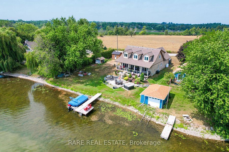 Discover the perfect blend of luxury and tranquility in this custom built home on the shores of lake scugog. Just under 3000 sq. Ft. And pot lights inside and out, this thoughtfully designed property welcomes you with soaring vaulted ceilings and an open concept layout where breathtaking lake views fill every window. The chefs kitchen is an entertainers dream with custom cabinetry, two built in ovens and warming drawer, a six burner gas range, wine fridge, and a spacious breakfast area. The kitchen flows seamlessly into the dining and living areas, with a beautiful chandelier which leads to the patio doors opening to a covered patio, landscaped yard, fire pit, and the sparkling waters of the lake. The main level offers two bedrooms; a versatile third bedroom featuring a built in murphy bed, making it ideal for guests or flexible use. The second bedroom includes custom cabinetry in the closet, adding both style and functionality. A full washroom, a large laundry room, and direct access to the two car garage complete this level. Upstairs, the primary retreat boasts two oversized walk in closets and a spa like five piece ensuite. An open office/flex space with incredible views leads to a bonus flex/games room, perfect for relaxation or family fun. The property also features a bunkie, a true blank canvas ready to be transformed into whatever you envision guest space, studio, or private hideaway. The grounds are beautifully manicured, offering endless ways to enjoy every season. This is a year round property with municipal road access and easy convenience. Summers invite boating, swimming, or jumping off your dock, while winters bring serene mornings on the deck with coffee or cozy evenings by the fire as the snow falls. Every inch of this home has been carefully designed for comfort and entertaining, making it a rare and remarkable find on lake scugog!